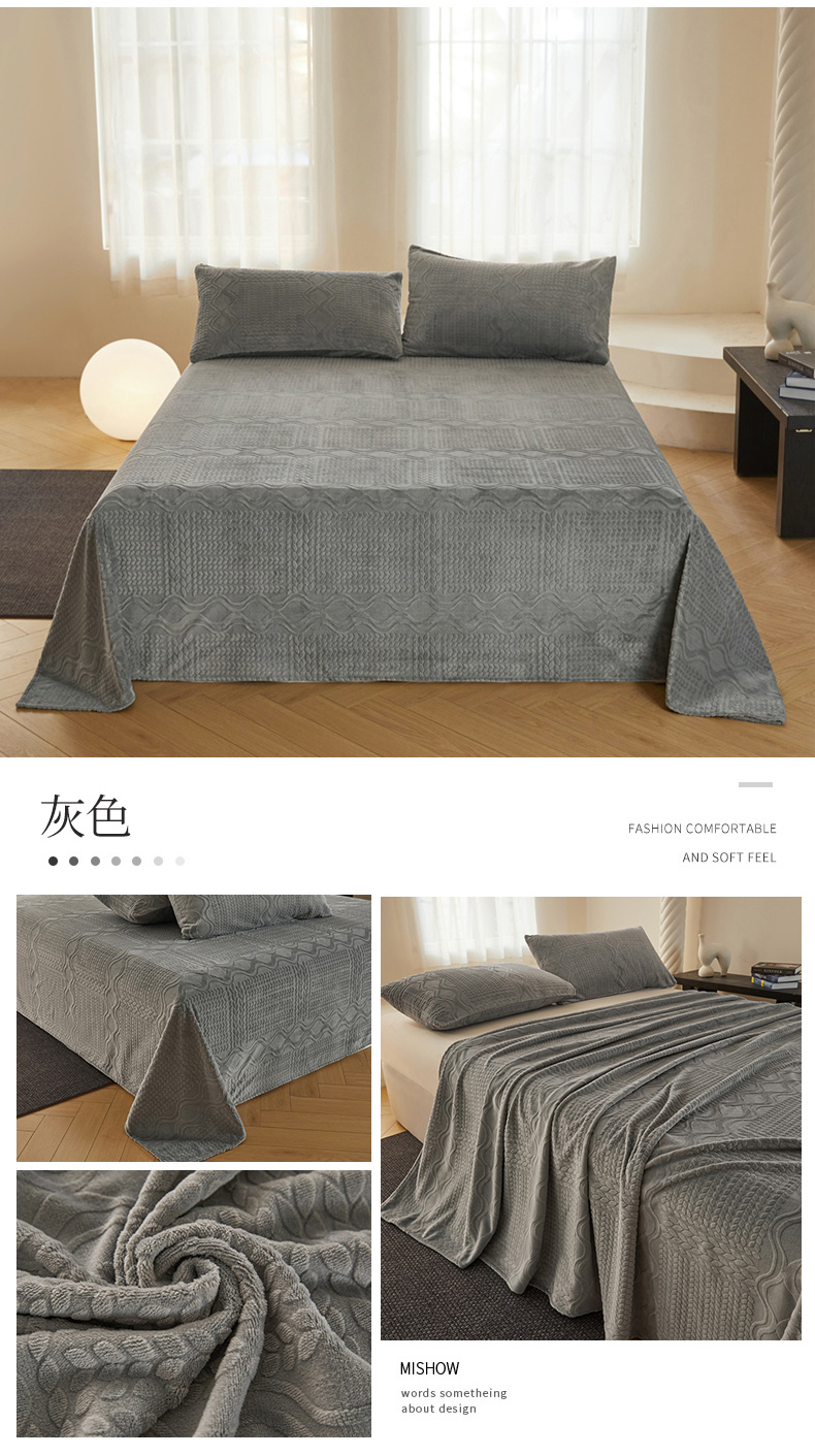 • 91家纺网 家纺一手货源 找家纺 雅萱家纺 2024新款雕花牛奶绒床单套件 雕花床单-灰色