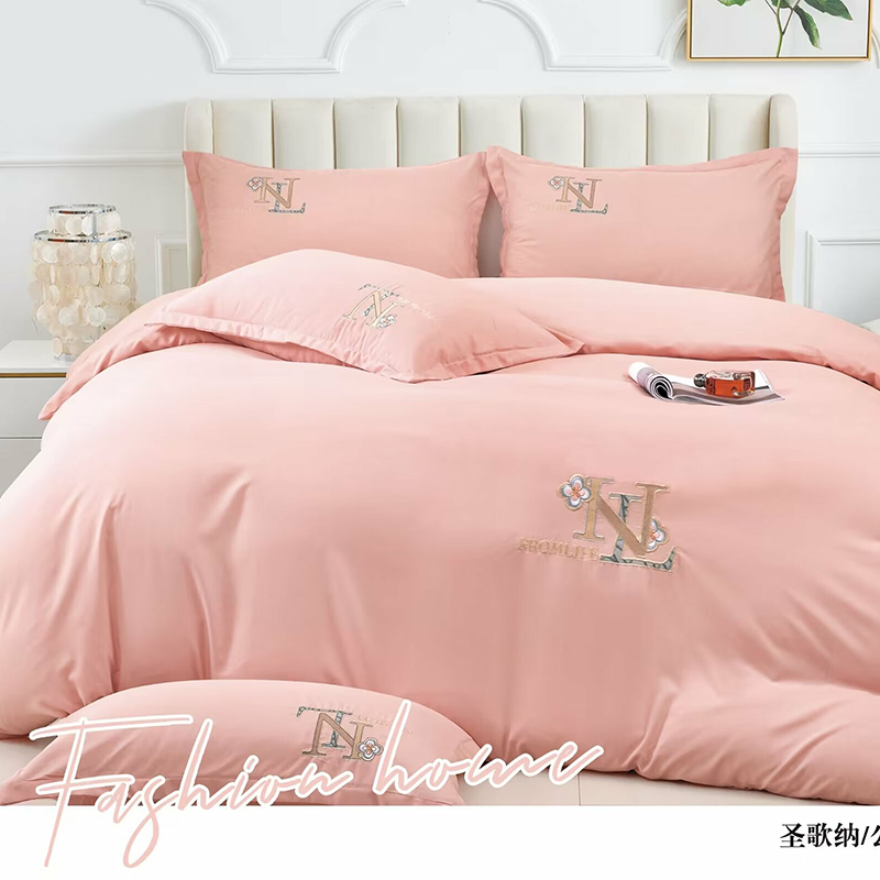 商品名称:优纤家纺 2024新款亲肤舒适绣花四件套-圣歌纳 圣歌纳-公主粉