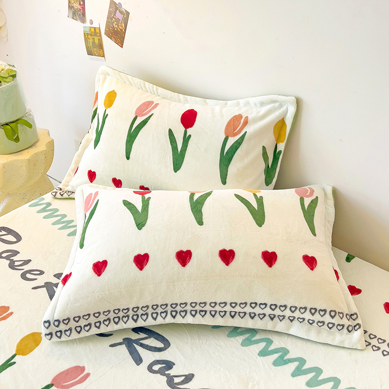 大柏树 2025新款A类高克重亲肤舒适牛奶绒印花四件套-单枕套可定制 若凡-蓝