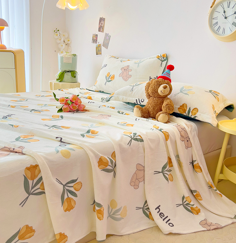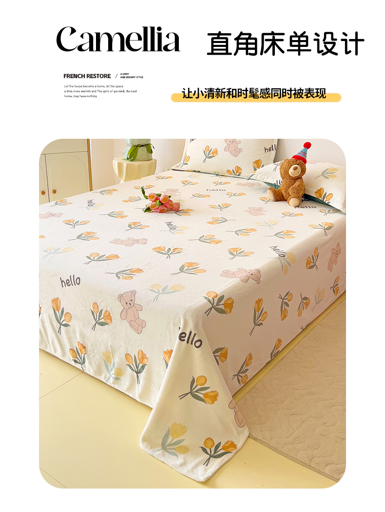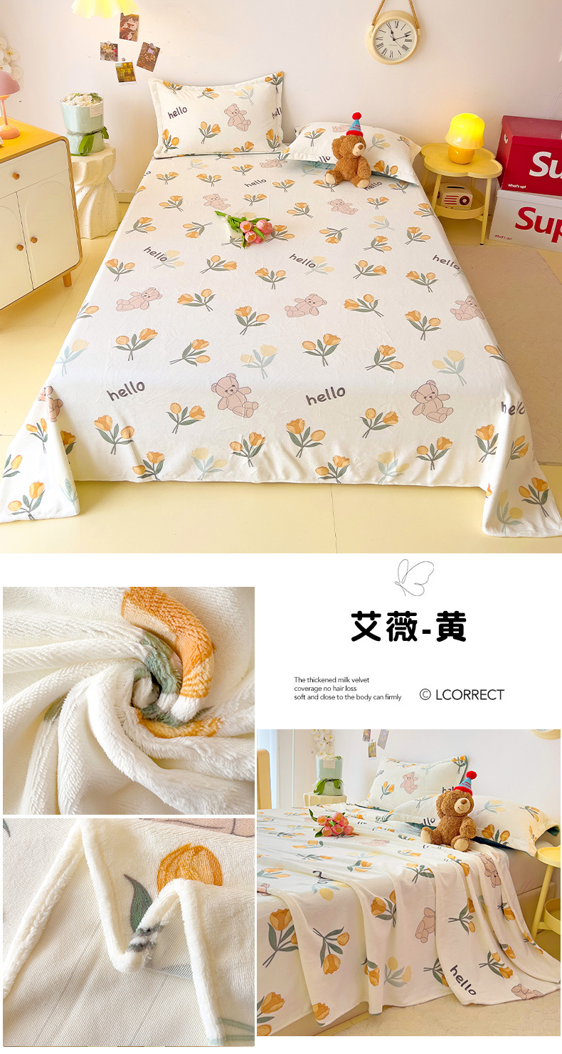 大柏树 2025新款A类高克重亲肤舒适牛奶绒印花四件套-单床单可定制 艾薇-黄