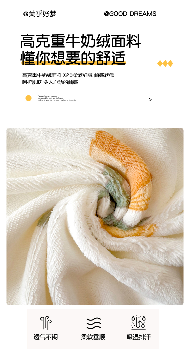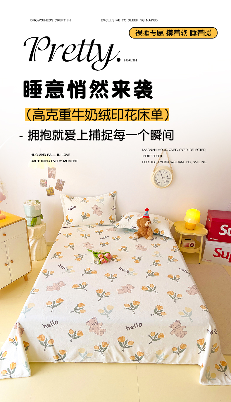 商品名称:大柏树 2025新款A类高克重亲肤舒适牛奶绒印花四件套-单床单可定制 艾薇-黄