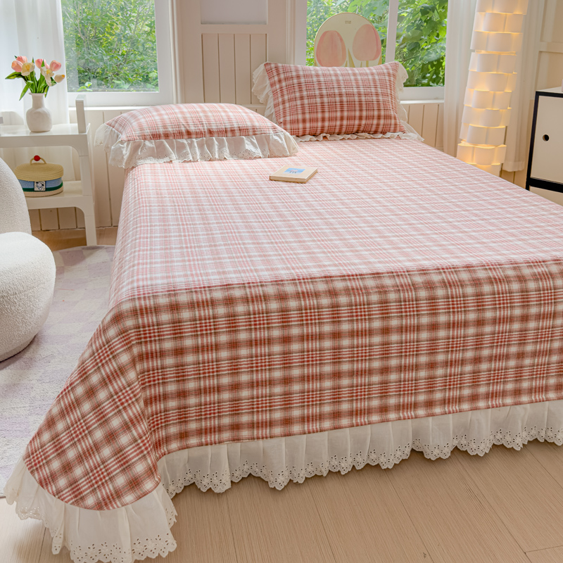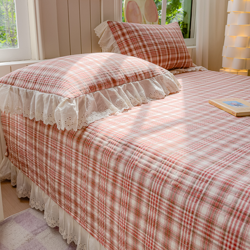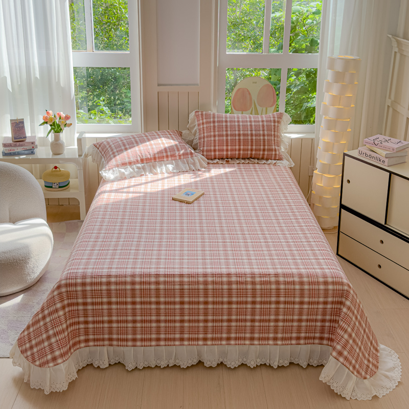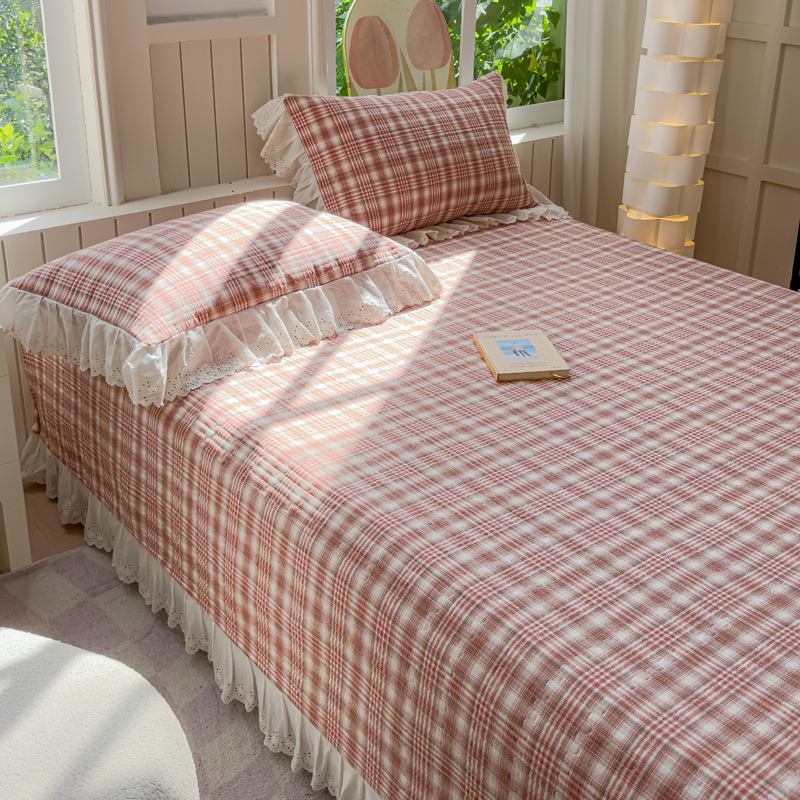 商品名称:久典家居 2024新款A类法式全棉色织水洗棉单床盖 可可粉