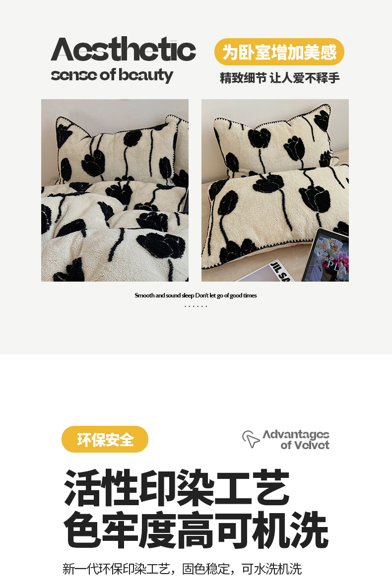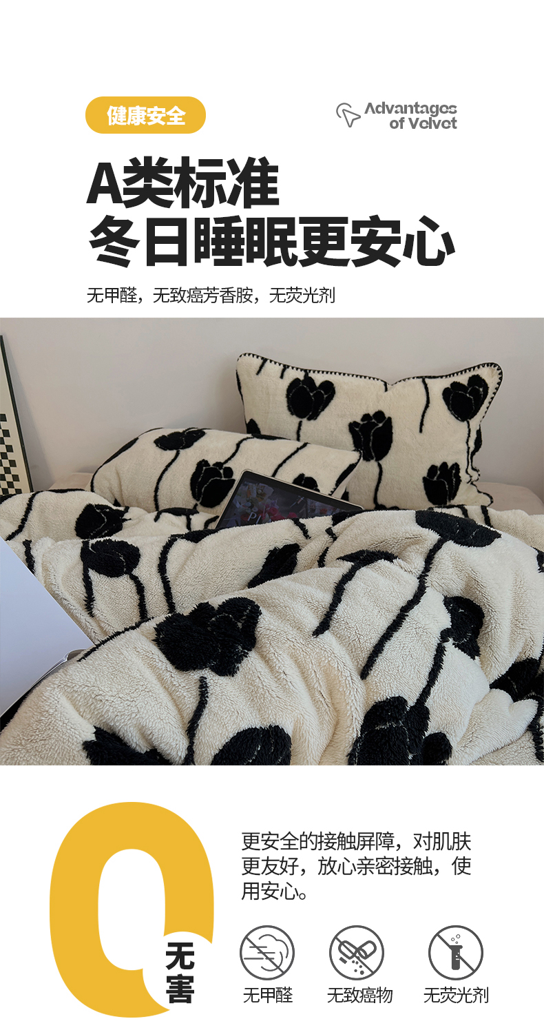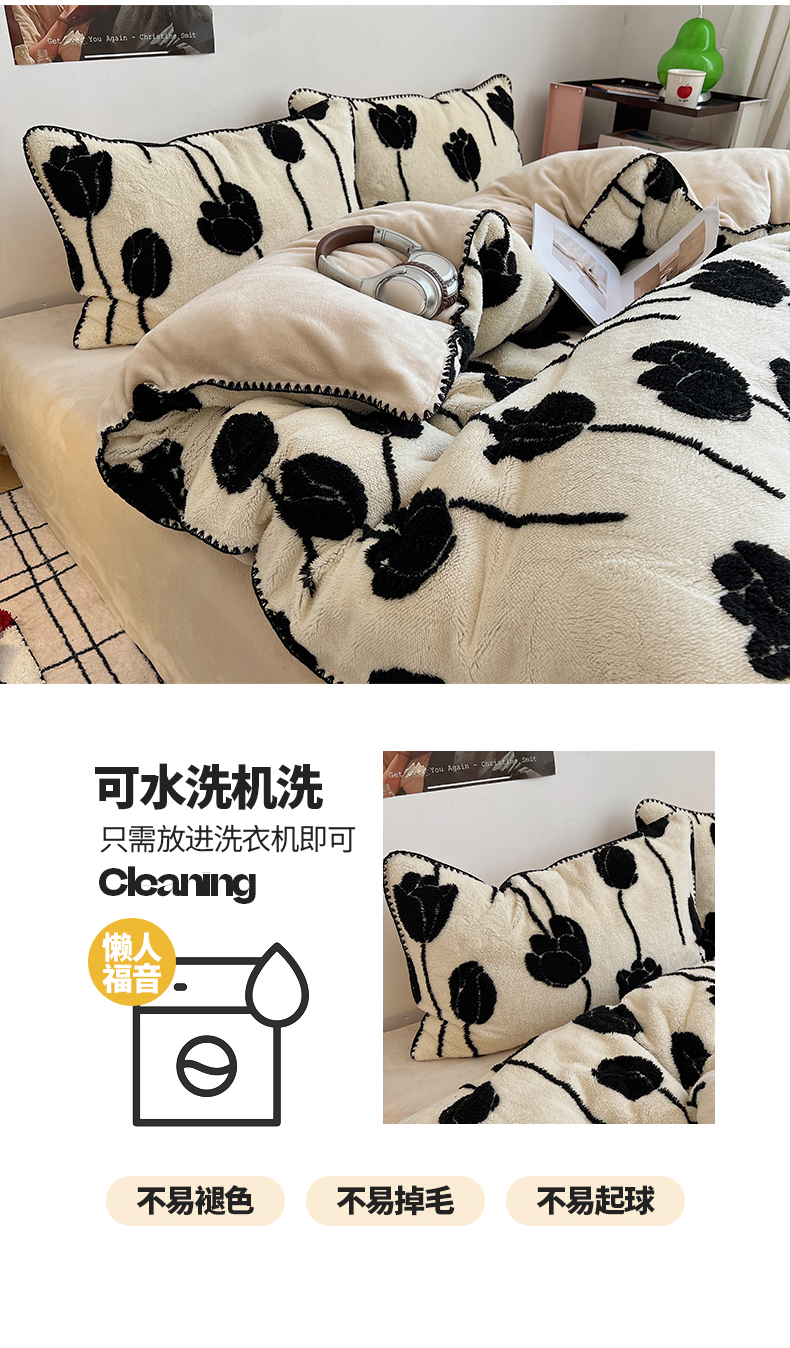 当前位置: 91家纺网 > 商品网购 > 床品套件 > 四件套 > 牛奶绒四件套 > 桃子家居 2024新款A类加厚美拉德温暖治愈风舒棉绒黑纱阳离子提花三角针贝壳边牛奶绒系列四件套 绒三角针-美拉德郁金香