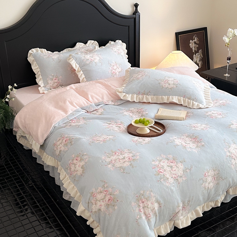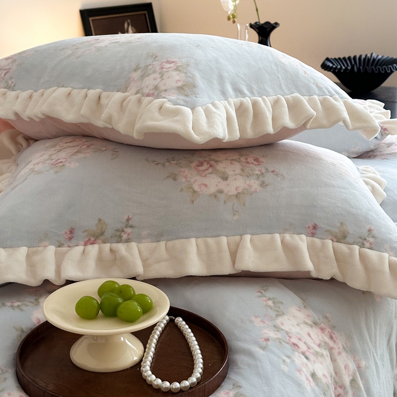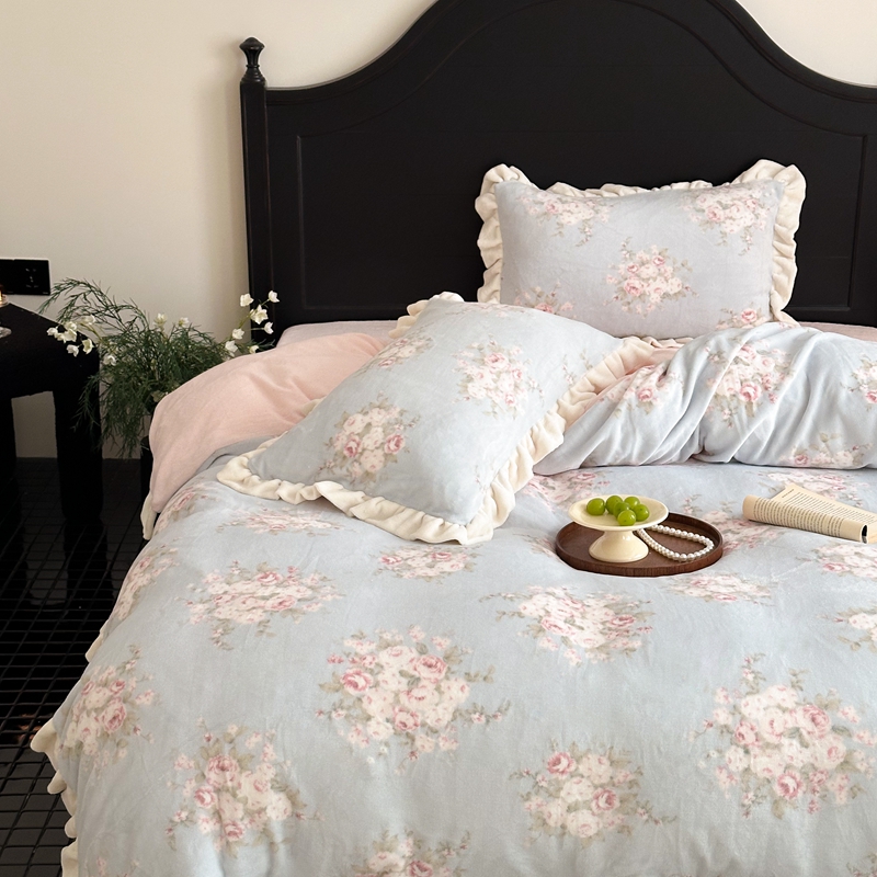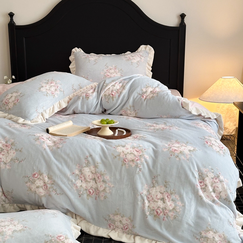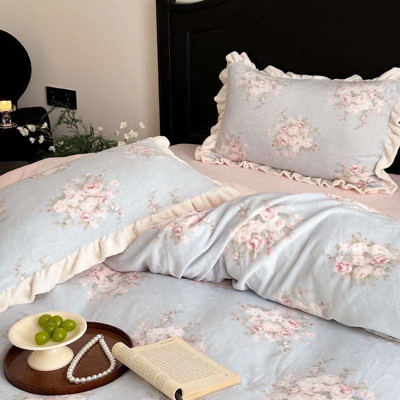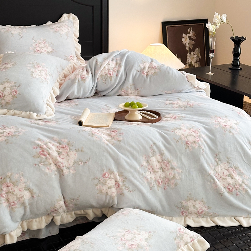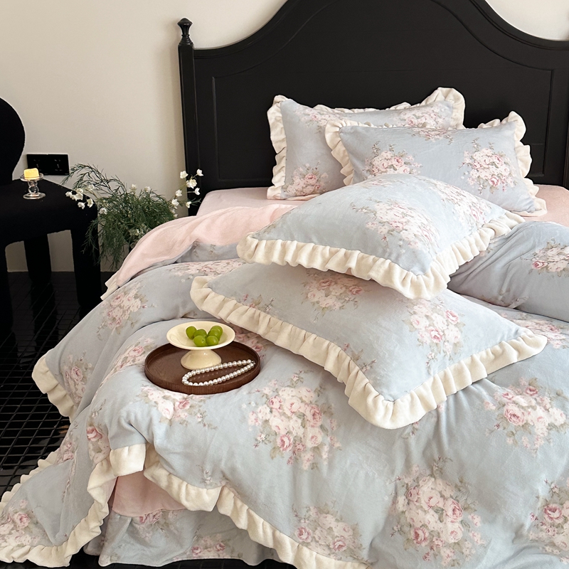 当前位置: 91家纺网 > 商品网购 > 床品套件 > 四件套 > 牛奶绒四件套 > 潘朵拉家纺 2024爆款绒法式双层牛奶绒花边四件套 浅夏