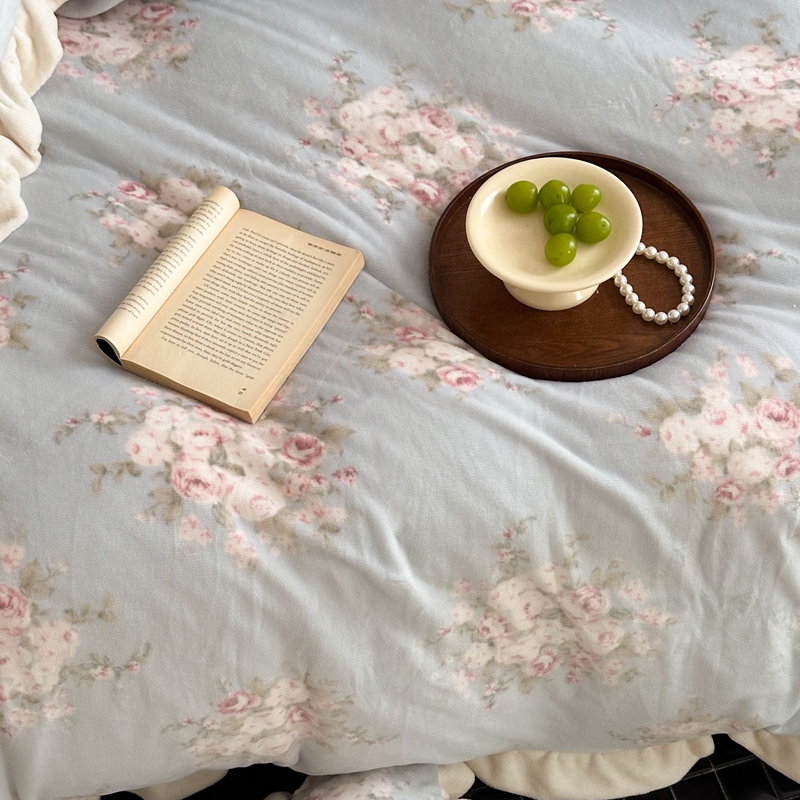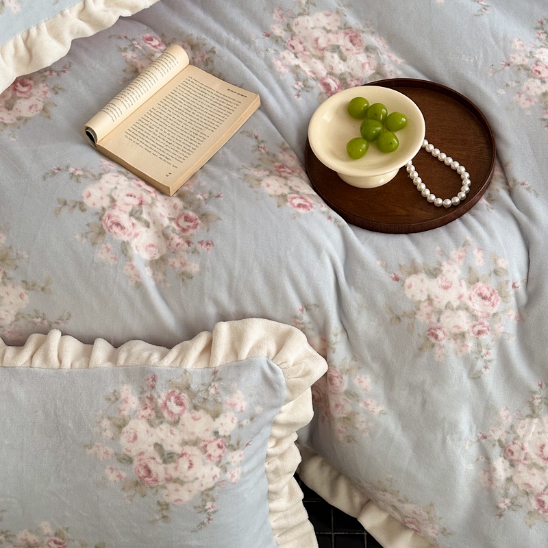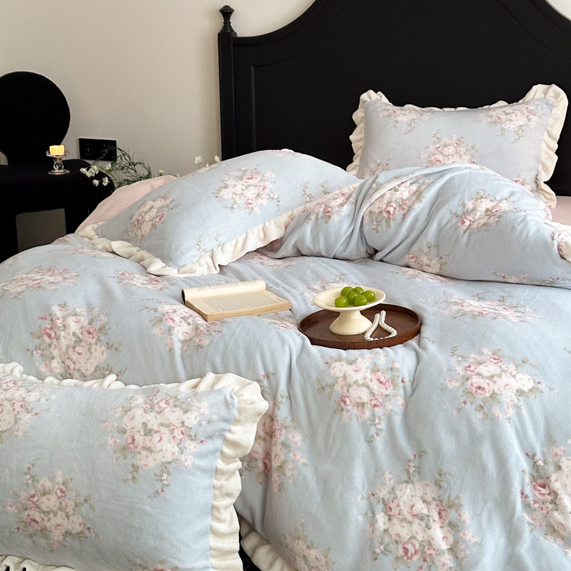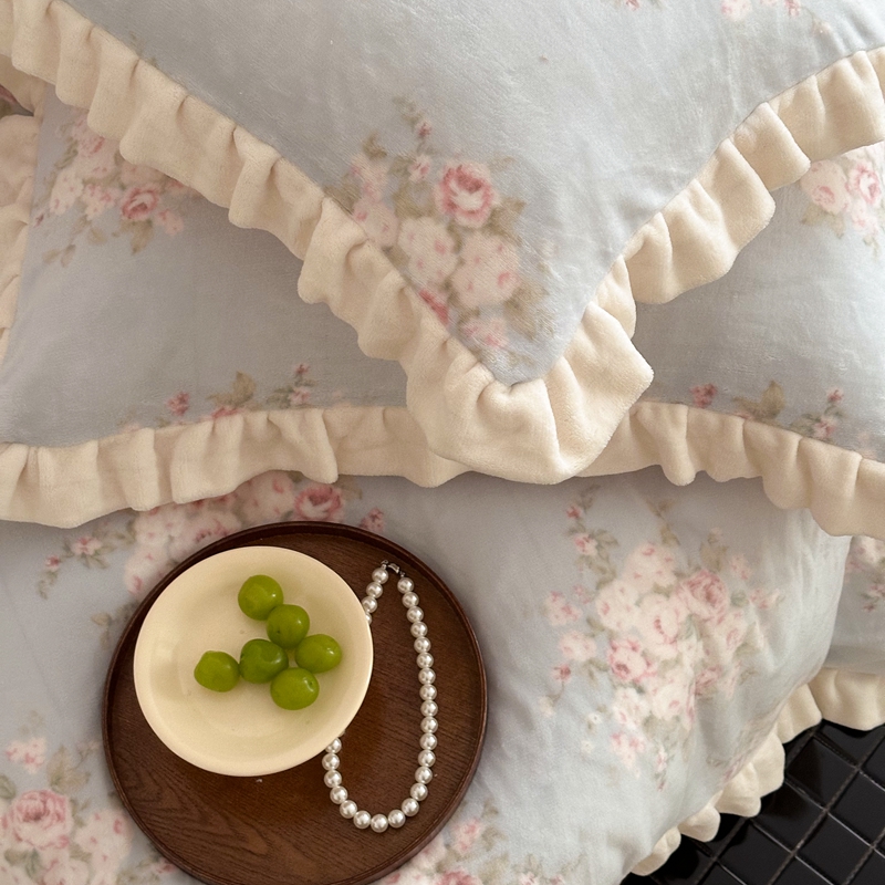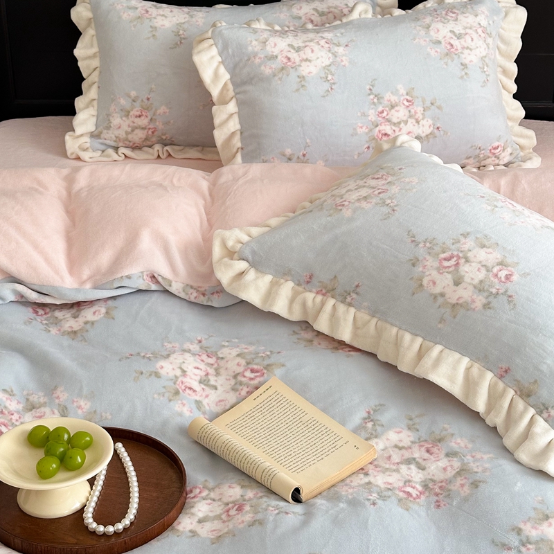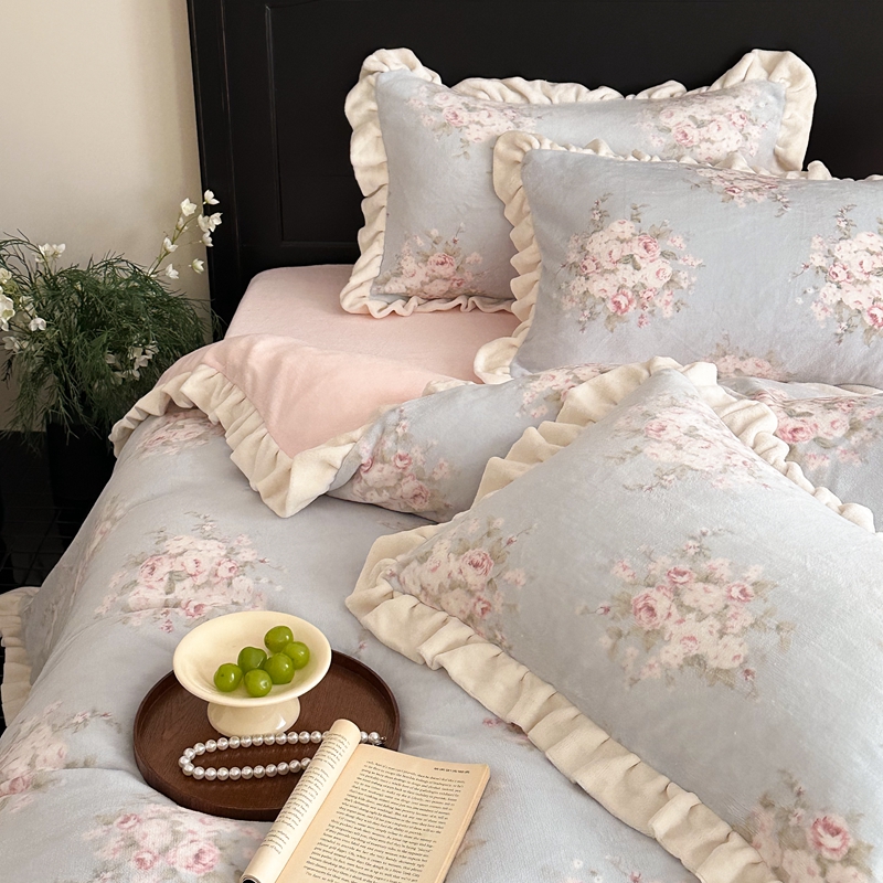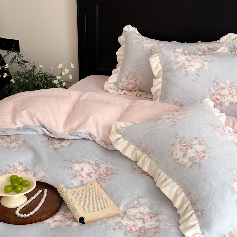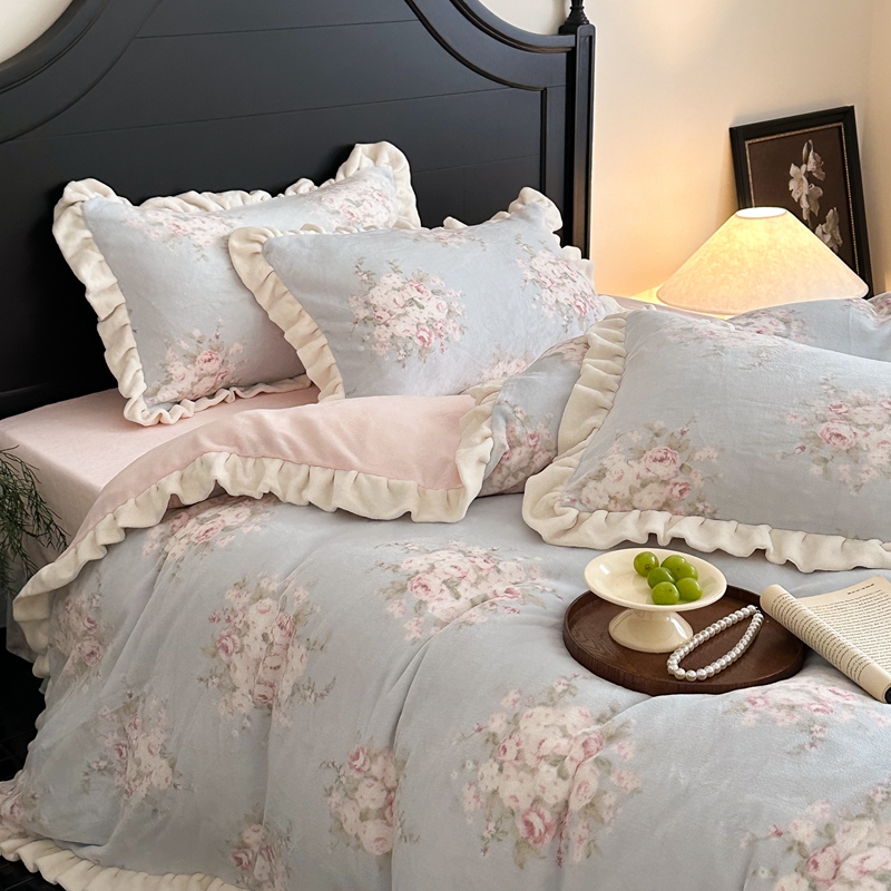 当前位置: 91家纺网 > 商品网购 > 床品套件 > 四件套 > 牛奶绒四件套 > 潘朵拉家纺 2024爆款绒法式双层牛奶绒花边四件套 浅夏