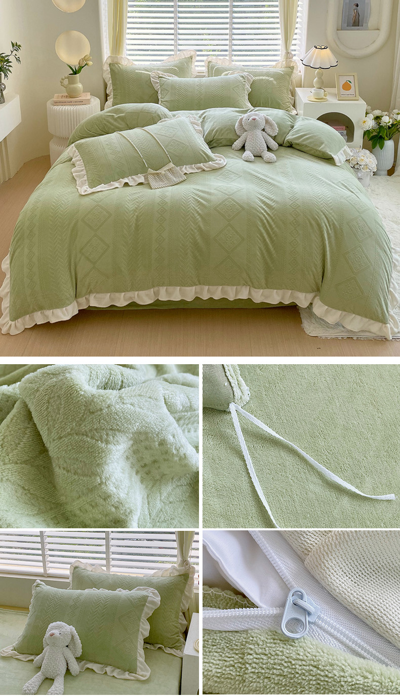 商品名称:佰亿莱 2024新款韩版雕花绒四件套 流年-水绿