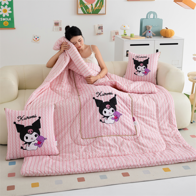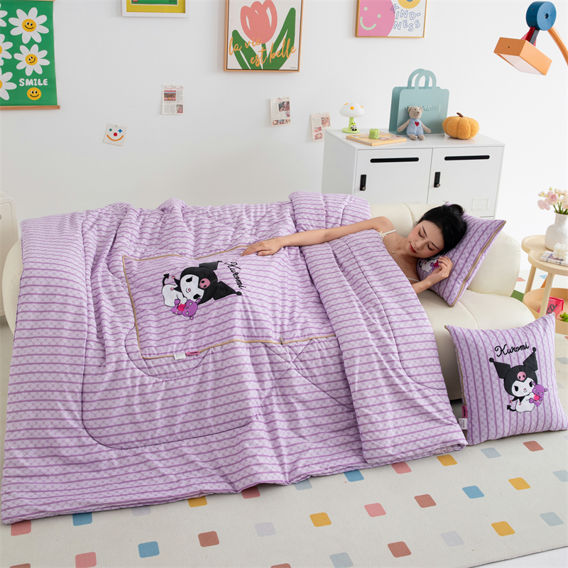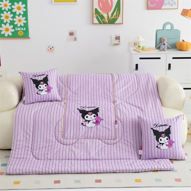 照世家纺 2024新款亲肤舒适三丽鸥可爱卡通抱枕被 库洛米-紫