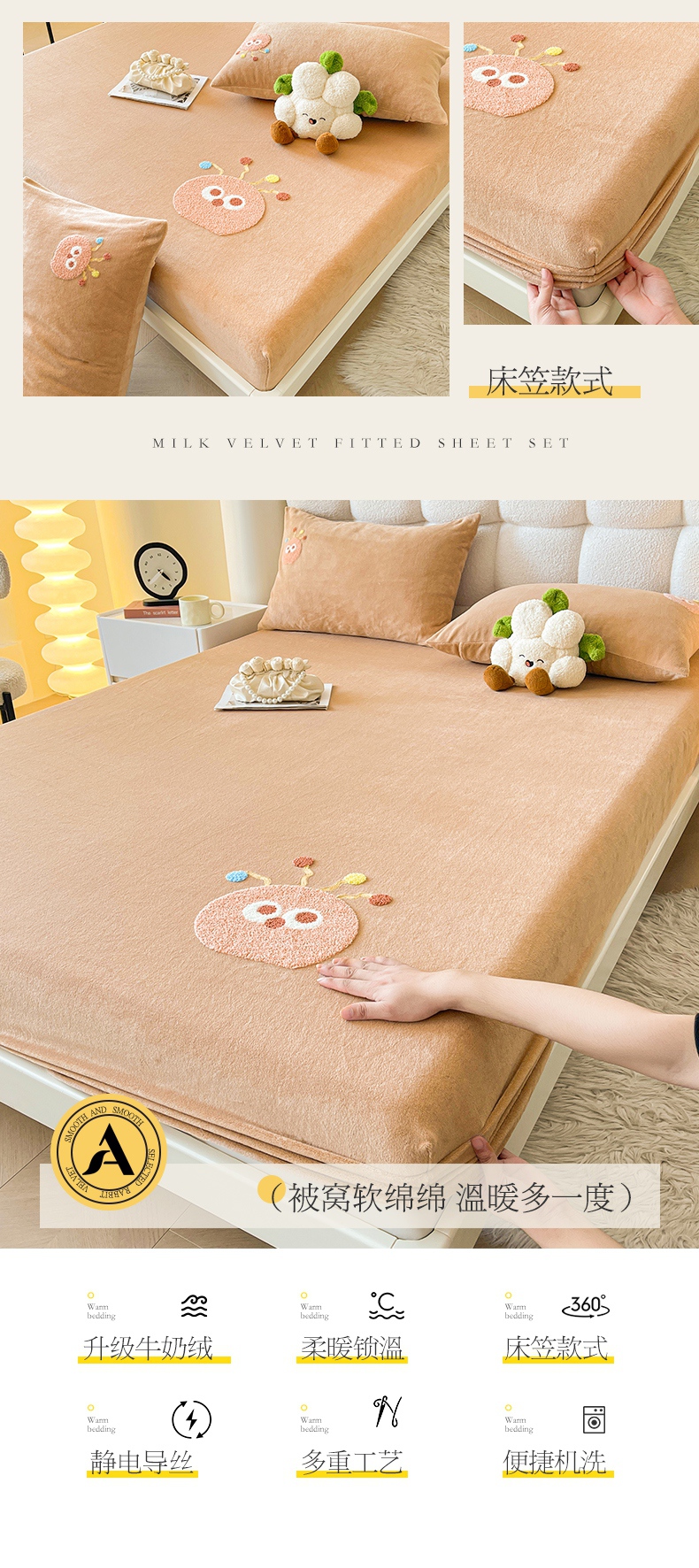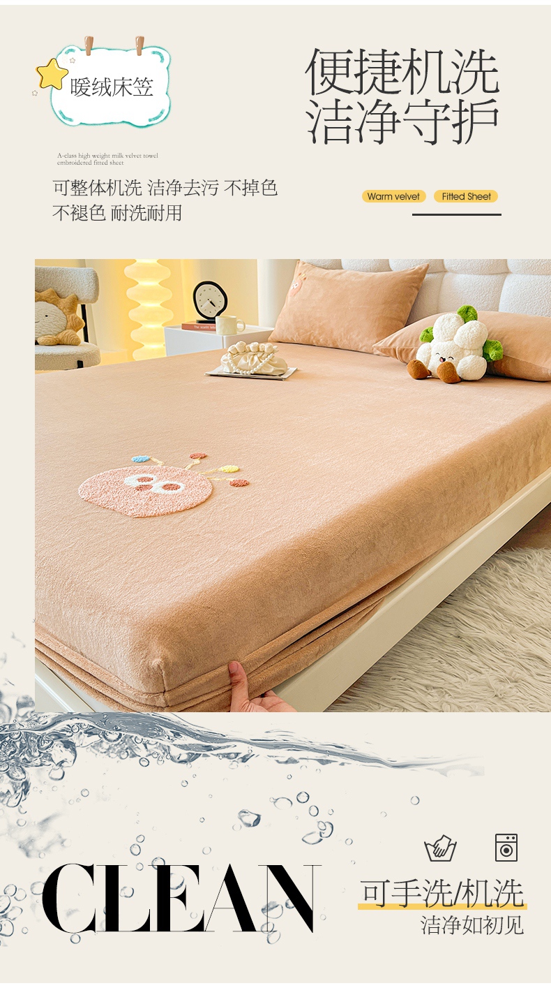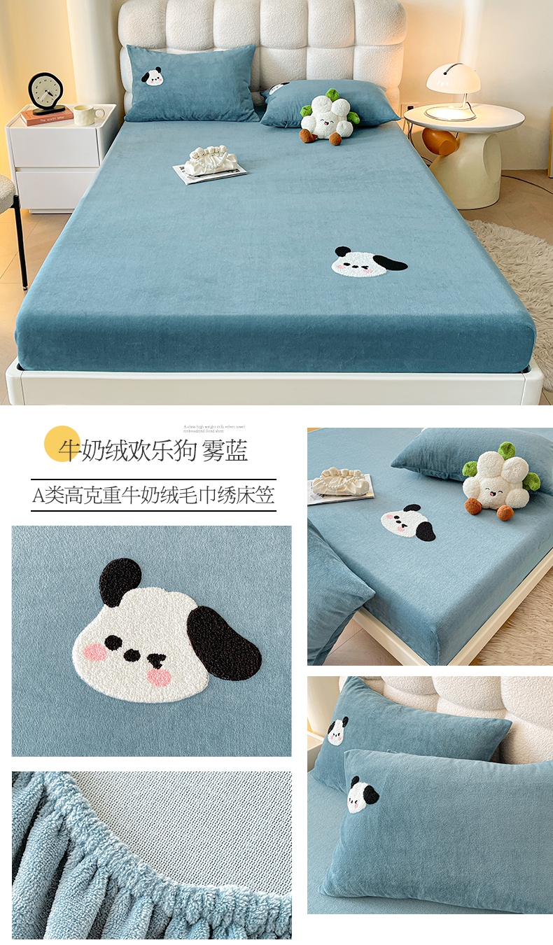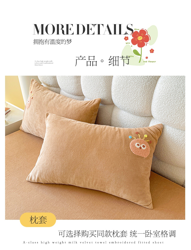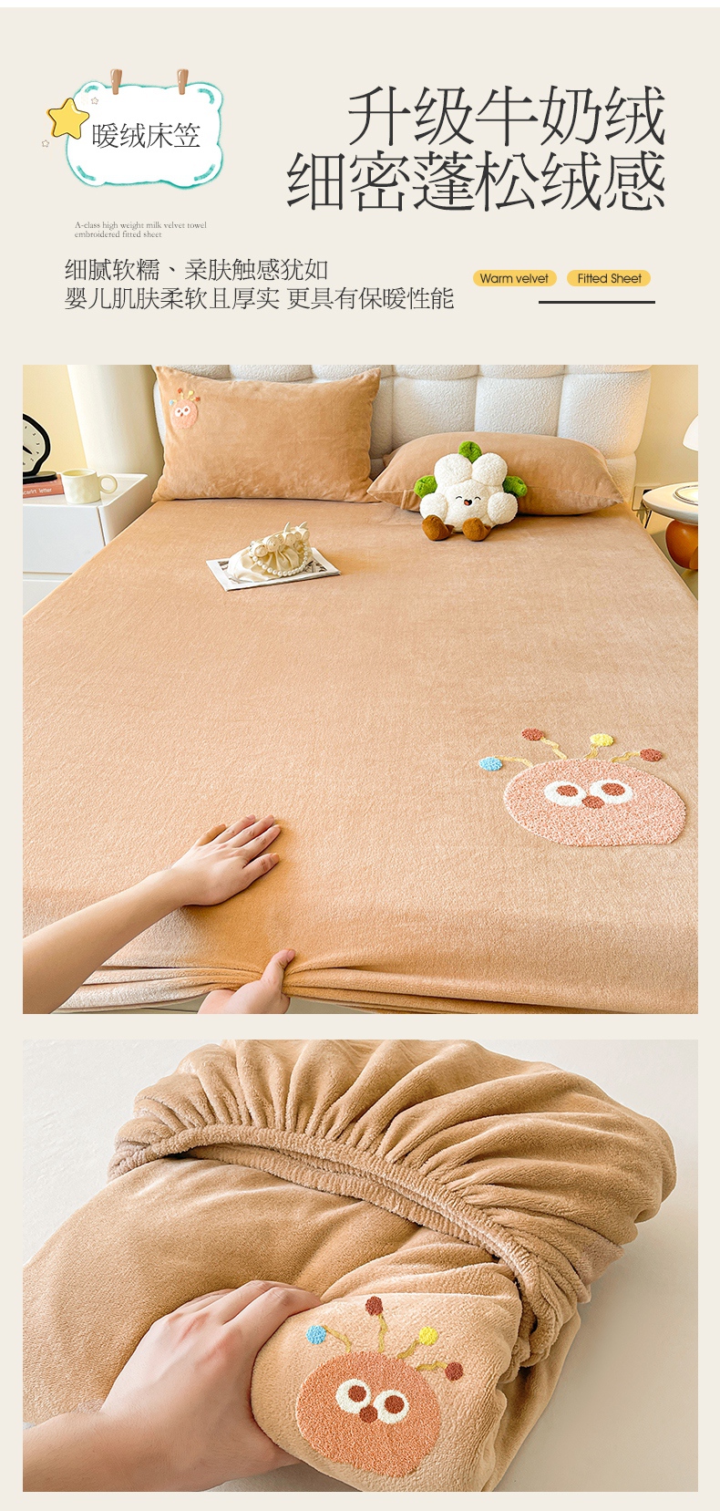 居眠 2024新款单层高克重牛奶绒毛巾绣床笠 牛奶绒萌宠 杏卡