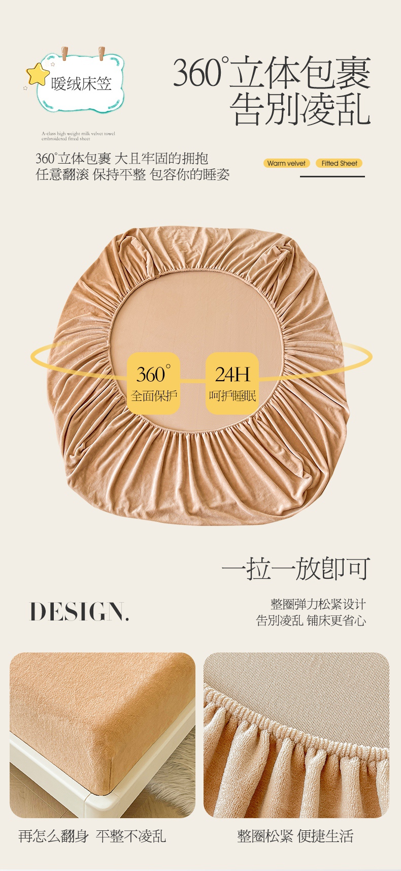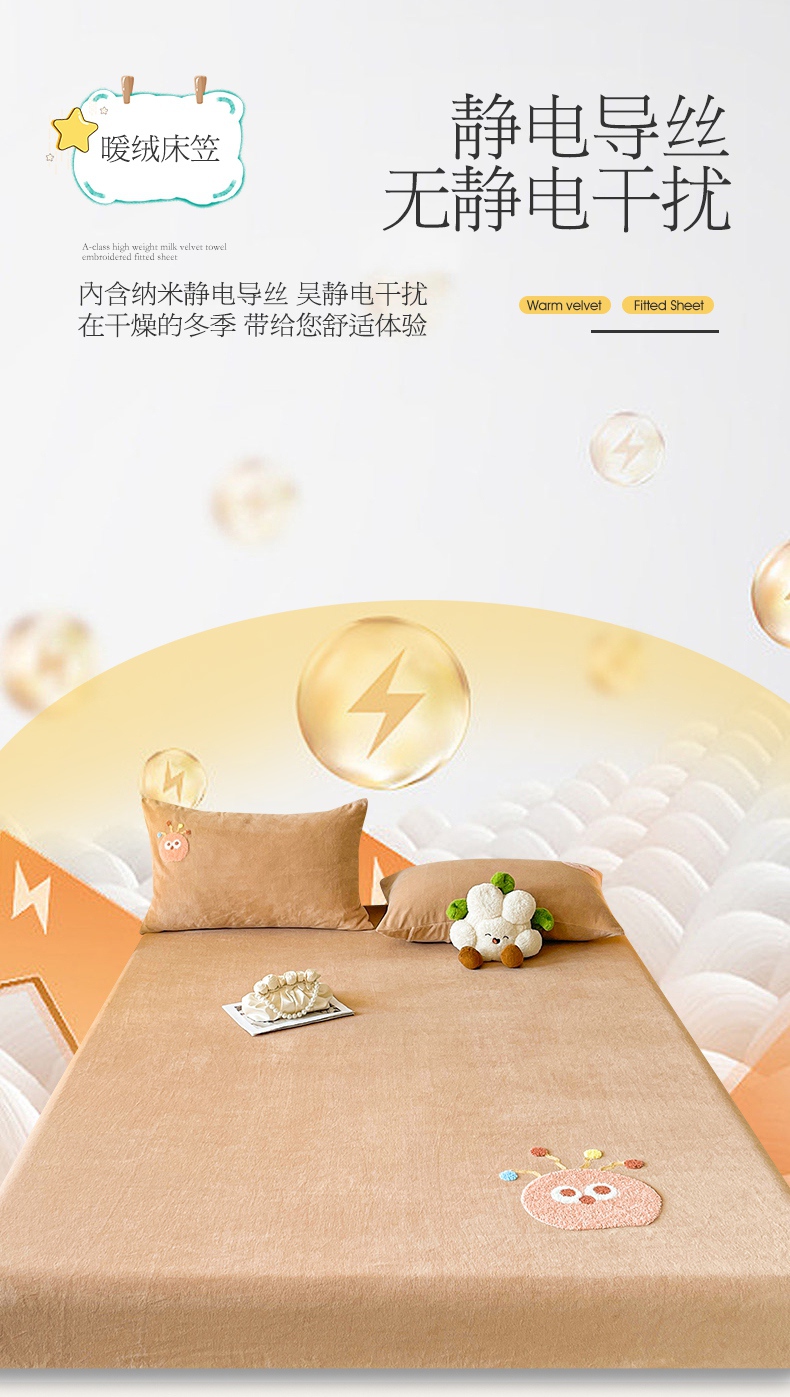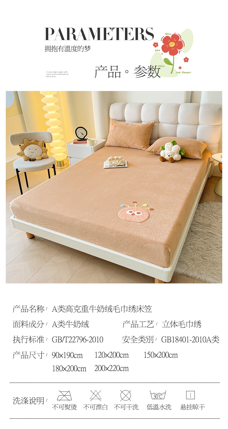 商品名称:居眠 2024新款单层高克重牛奶绒毛巾绣床笠 牛奶绒萌宠 杏卡