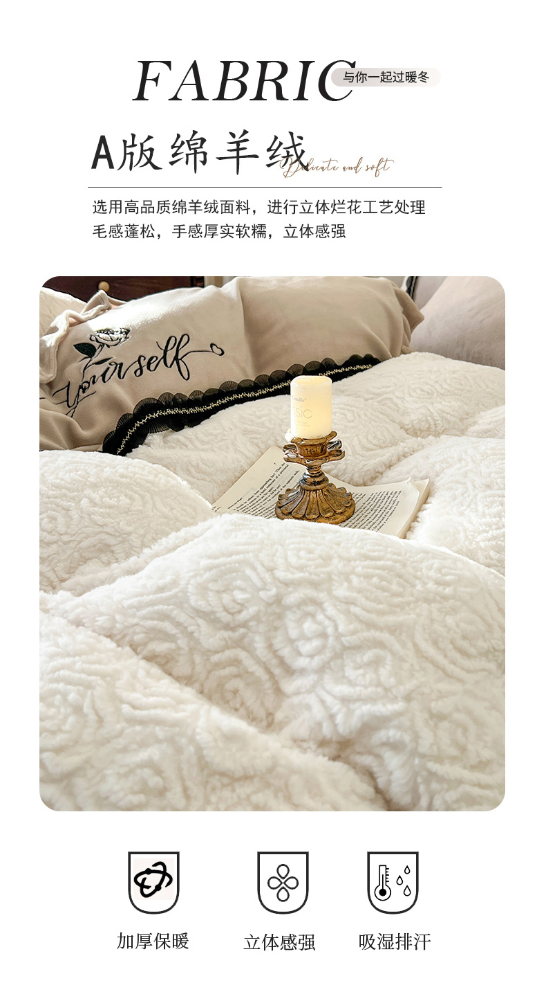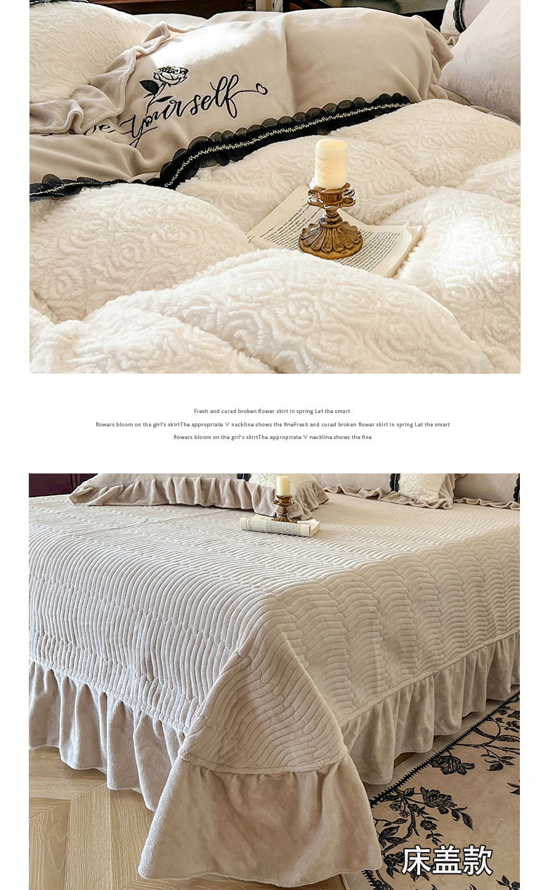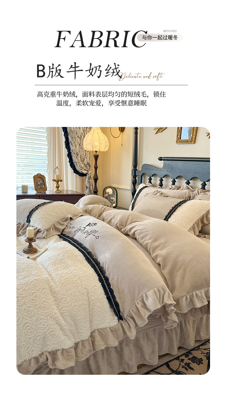 (总)乐朵家居 2025新款 克拉玫瑰 牛奶绒 床单款夹棉床盖四件套(控价床单268床盖298),浅杏色,丁香紫,奶白色,湖水蓝,浅豆沙,浅粉玉