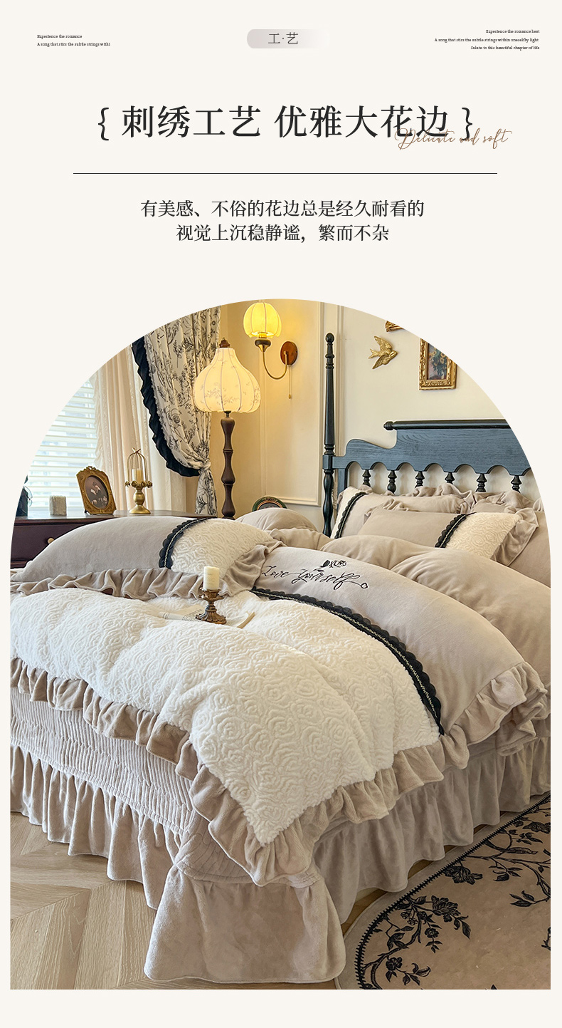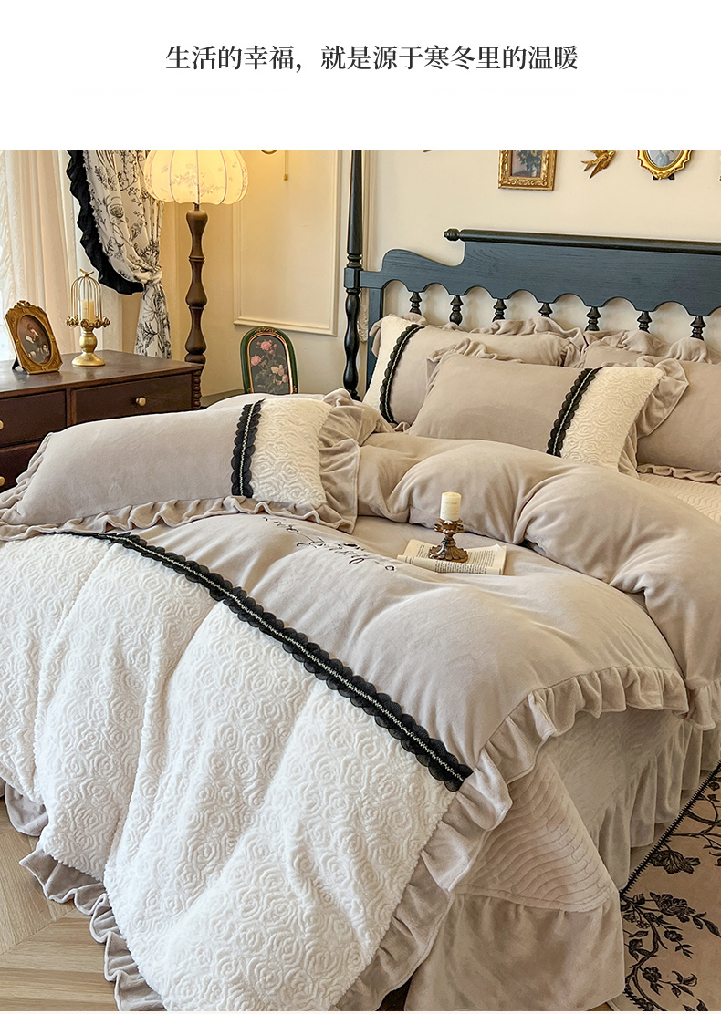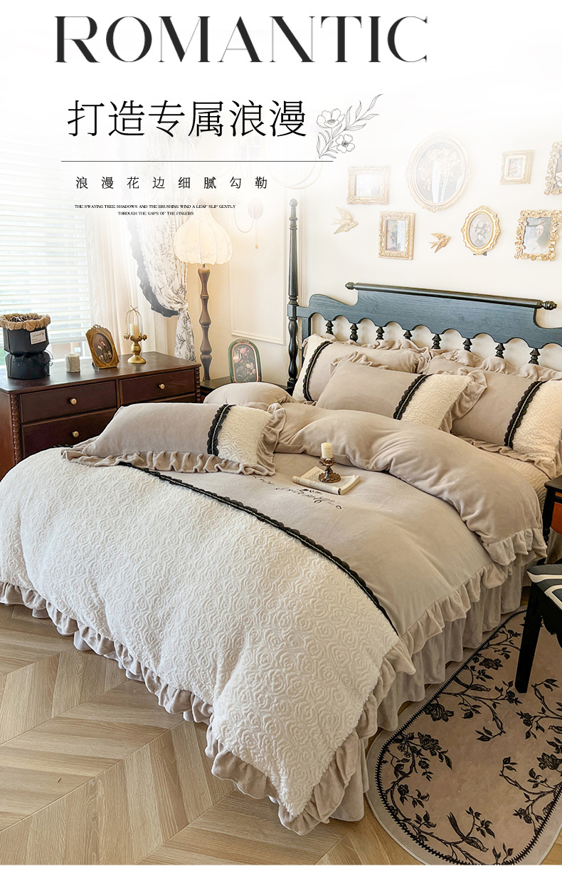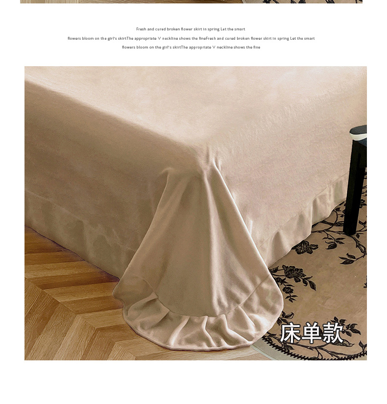 商品名称:乐朵家居 2024新款 欧若拉 牛奶绒床单款床盖款四件套(控价单278夹棉318)-卡其