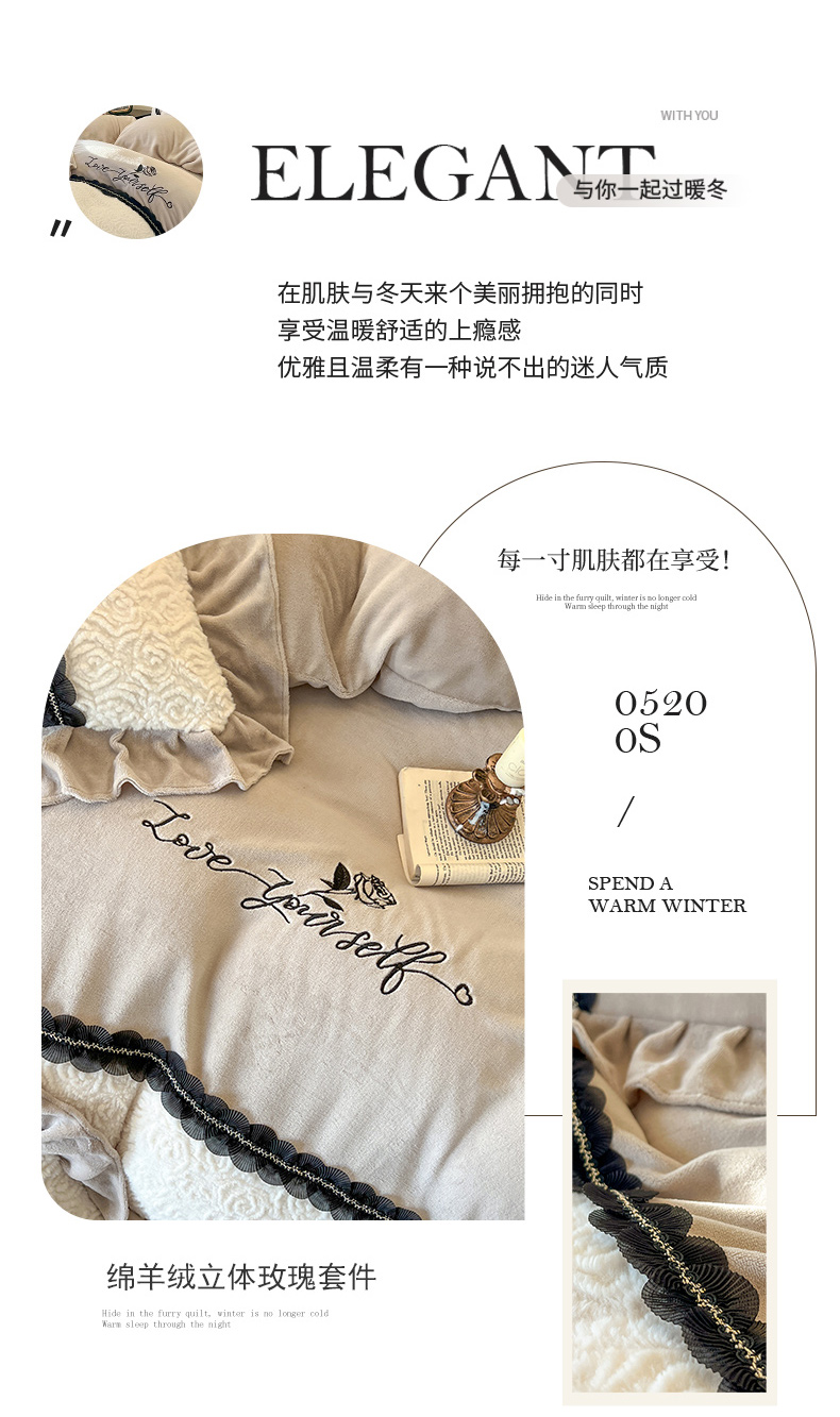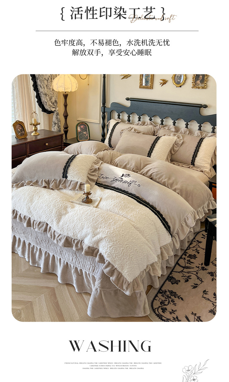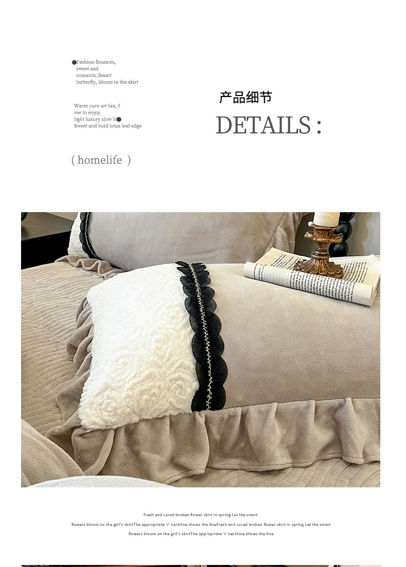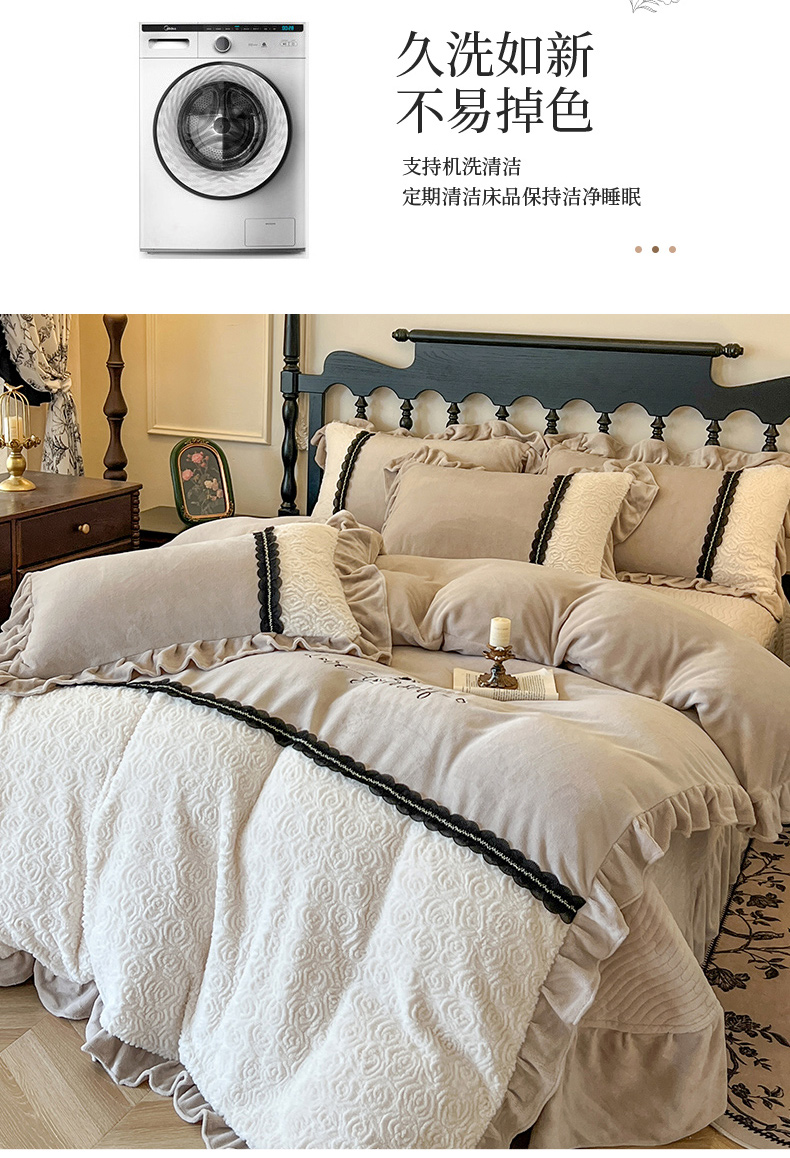 商品名称:乐朵家居 2024新款 欧若拉 牛奶绒床单款床盖款四件套(控价单278夹棉318)-卡其