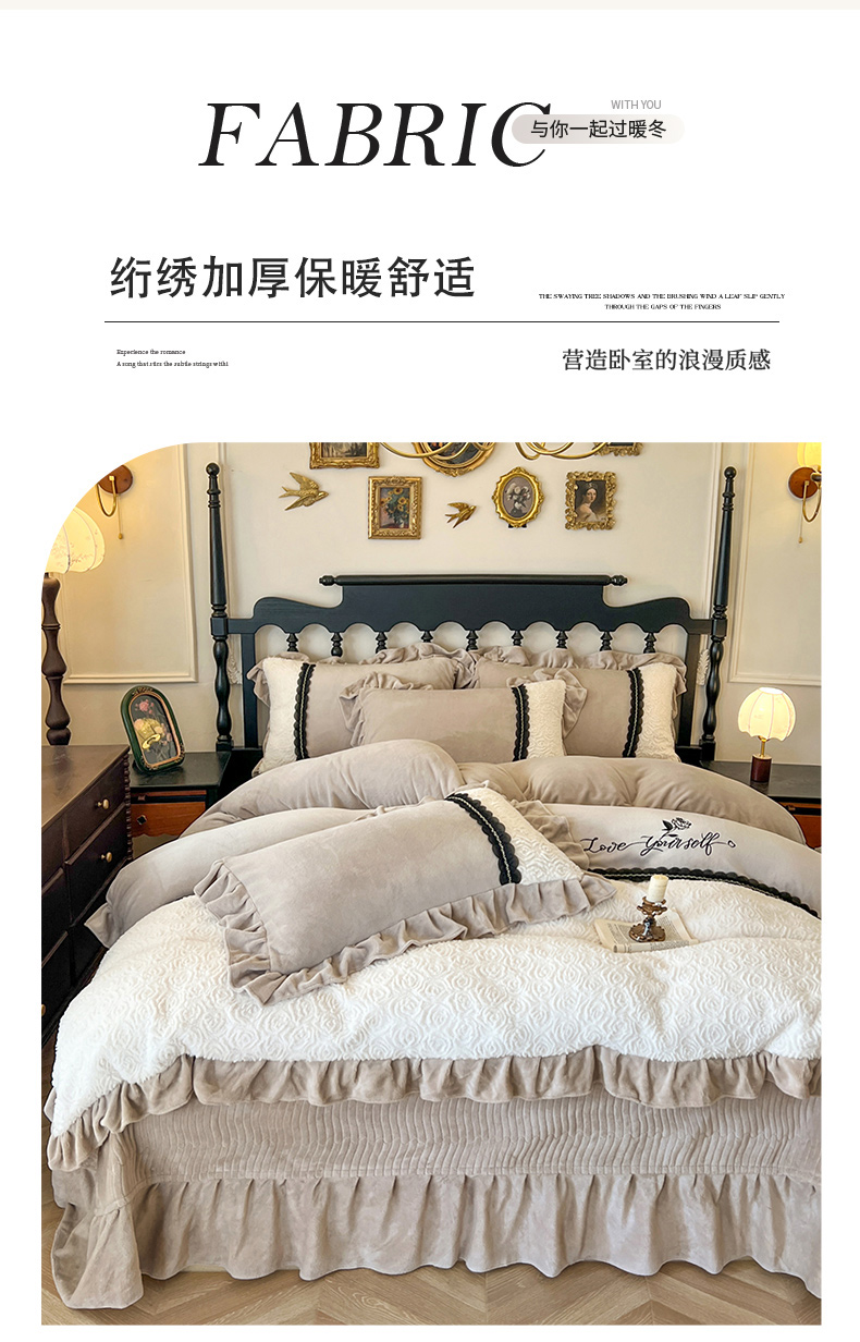 (总)乐朵家居 2025新款 左岸玫瑰 重工款 牛奶绒 夹棉床盖四件套(主推请询价),左岸玫瑰-粉玉,左岸玫瑰-米白