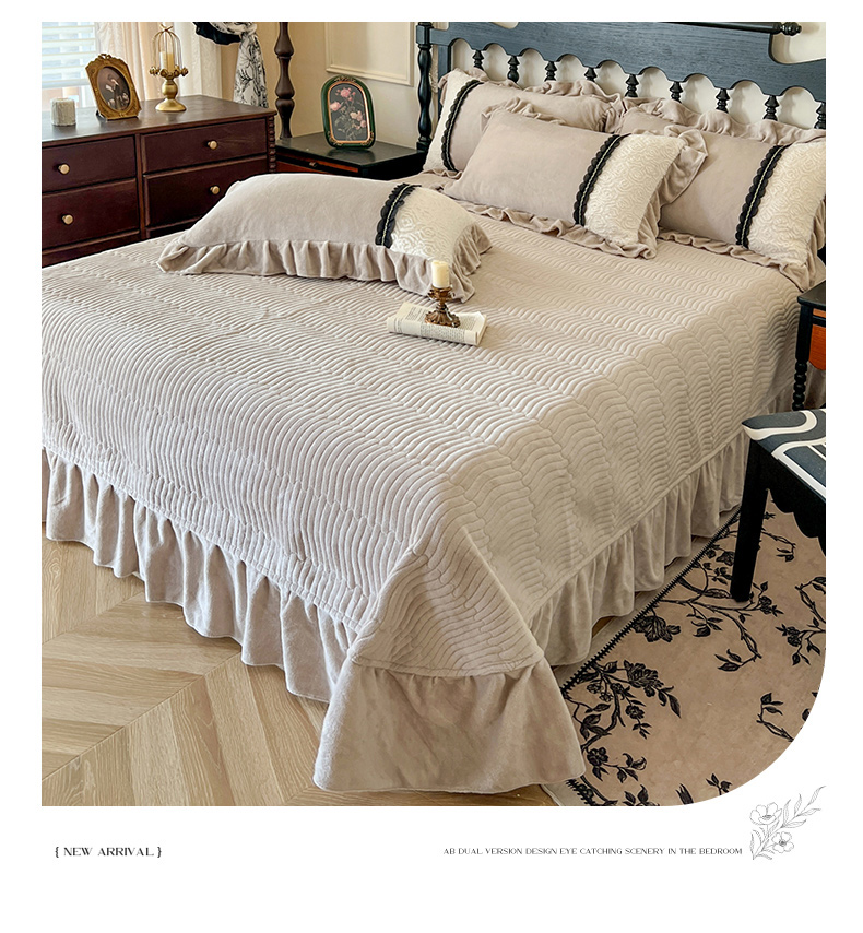(总)乐朵家居 2025新款 宝格 牛奶绒床单款夹棉床盖四件套【床单款控价268 床盖款298】,浅豆沙,琉离紫,抹茶绿,天空灰,浅卡其