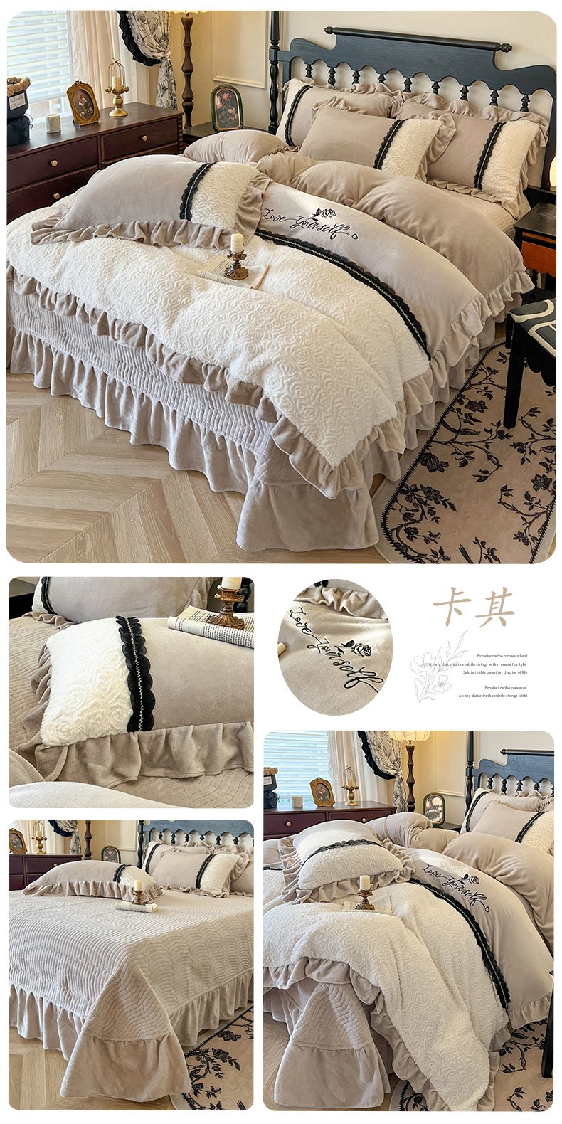 乐朵家居 2024新款 欧若拉 牛奶绒床单款床盖款四件套(控价单278夹棉318)-卡其