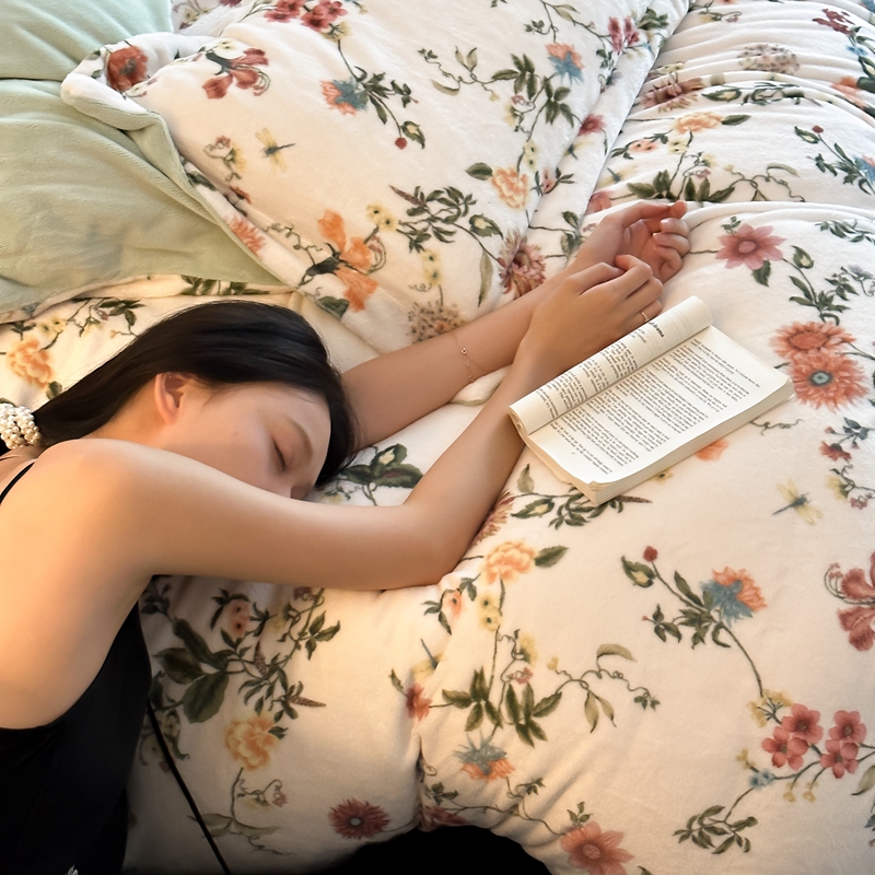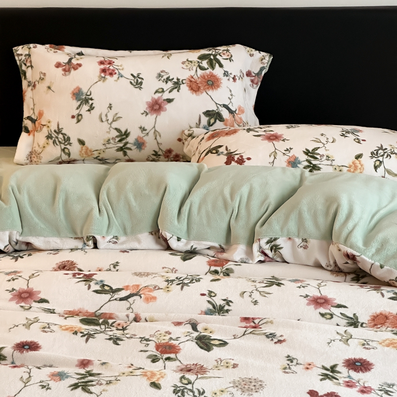 商品名称:三味舒屋 2025新款奢暖数码印花牛奶绒四件套 花漾