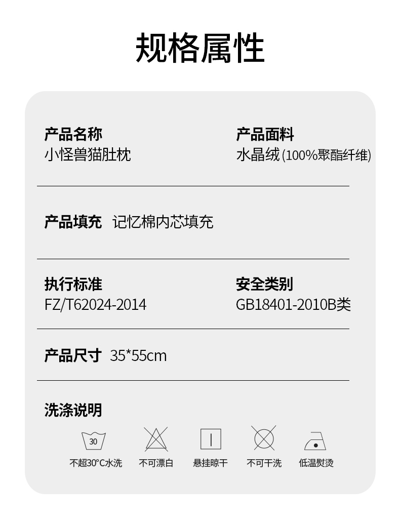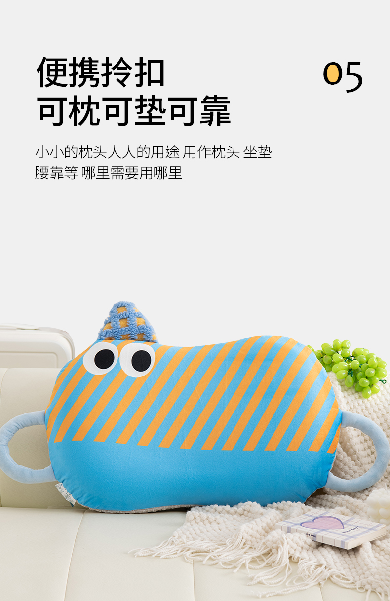 条纹小怪兽猫肚记忆枕-蓝色条纹