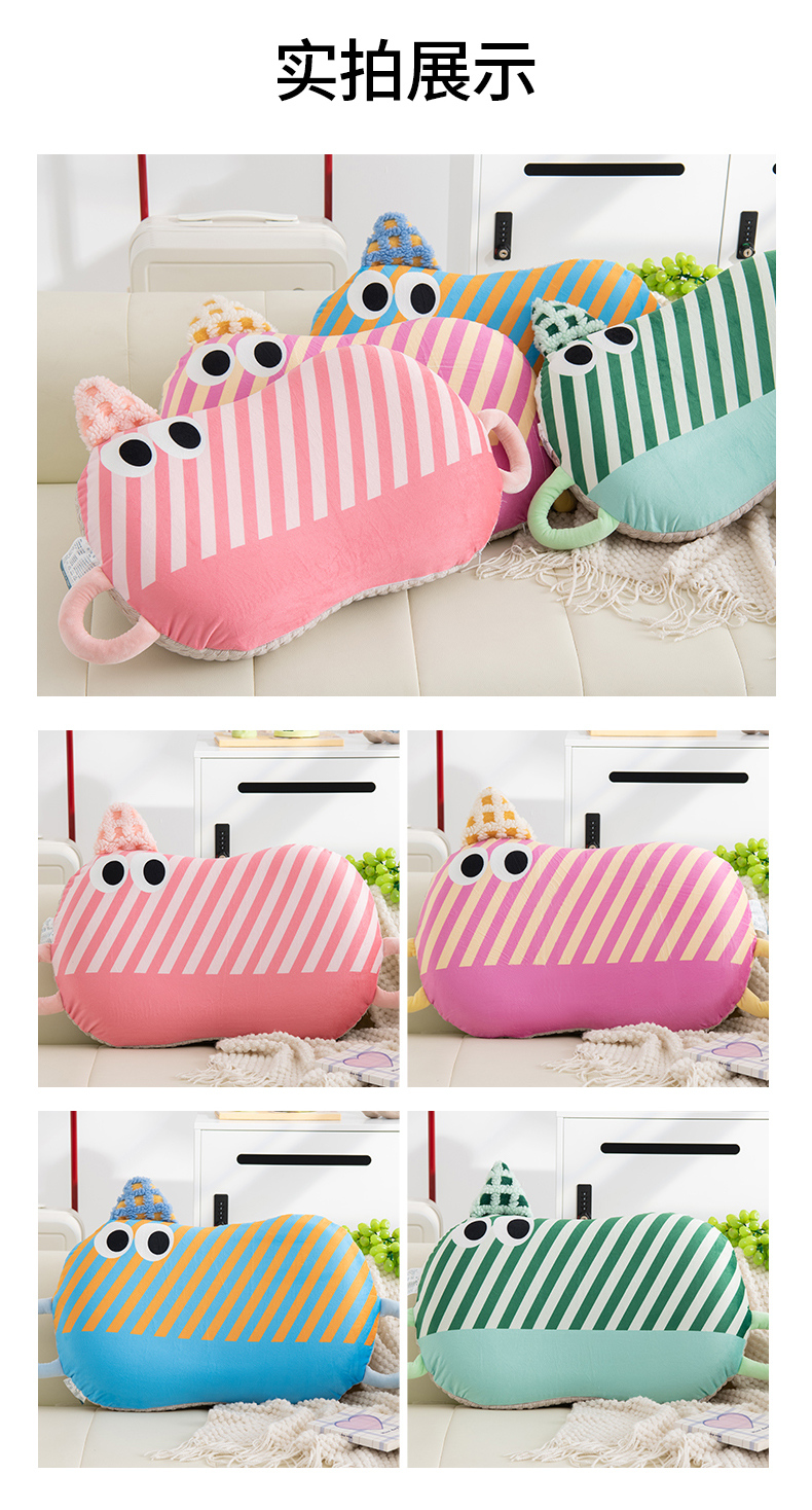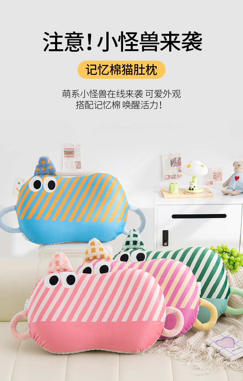 条纹小怪兽猫肚记忆枕-粉色条纹