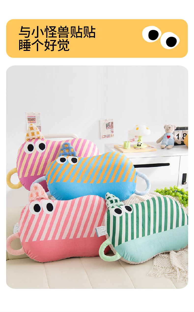 商品名称:(总)仁宇枕业 2024新款水晶绒卡通记忆枕头条纹大眼小怪兽儿童记忆枕芯