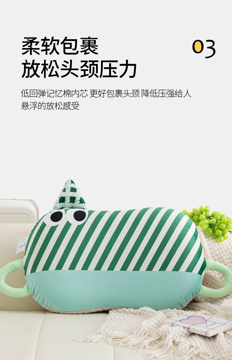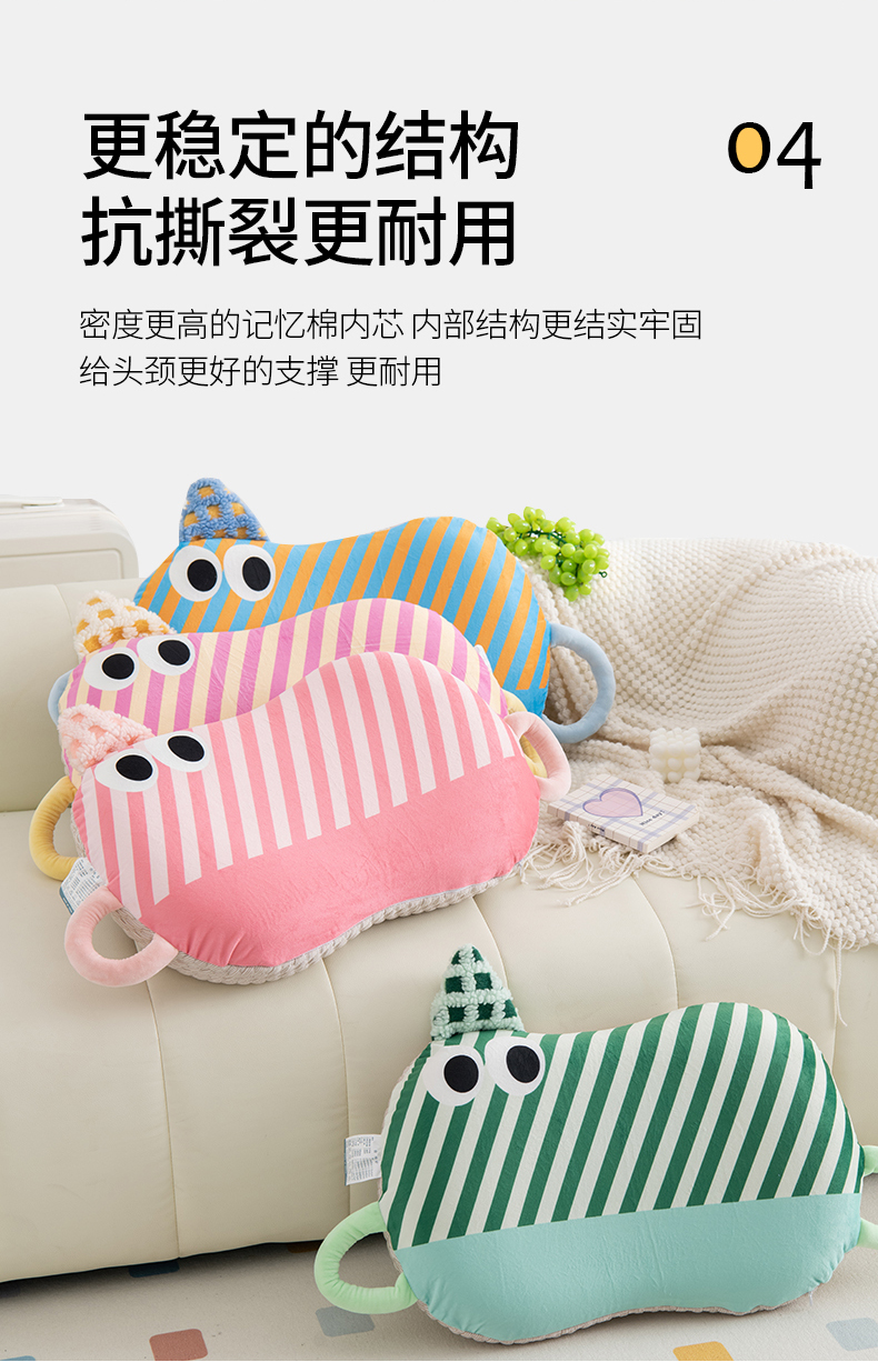 (总)仁宇枕业 2024新款水晶绒卡通记忆枕头条纹大眼小怪兽儿童记忆枕芯