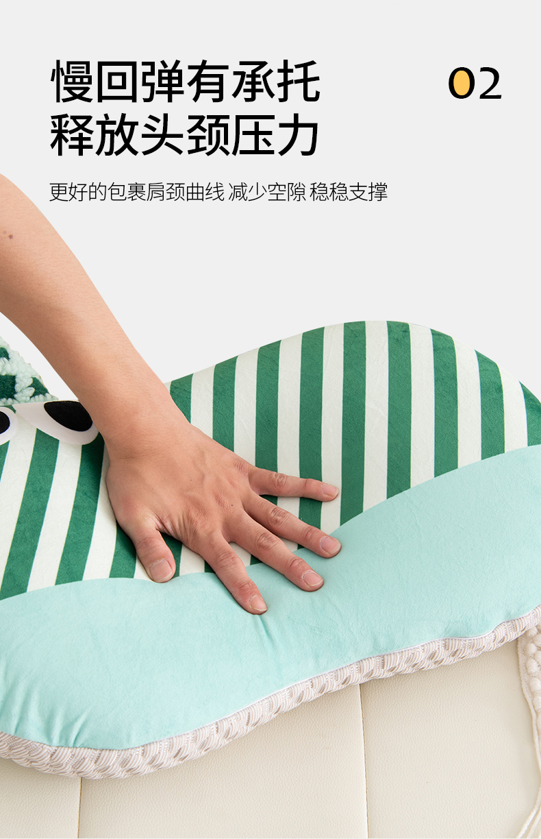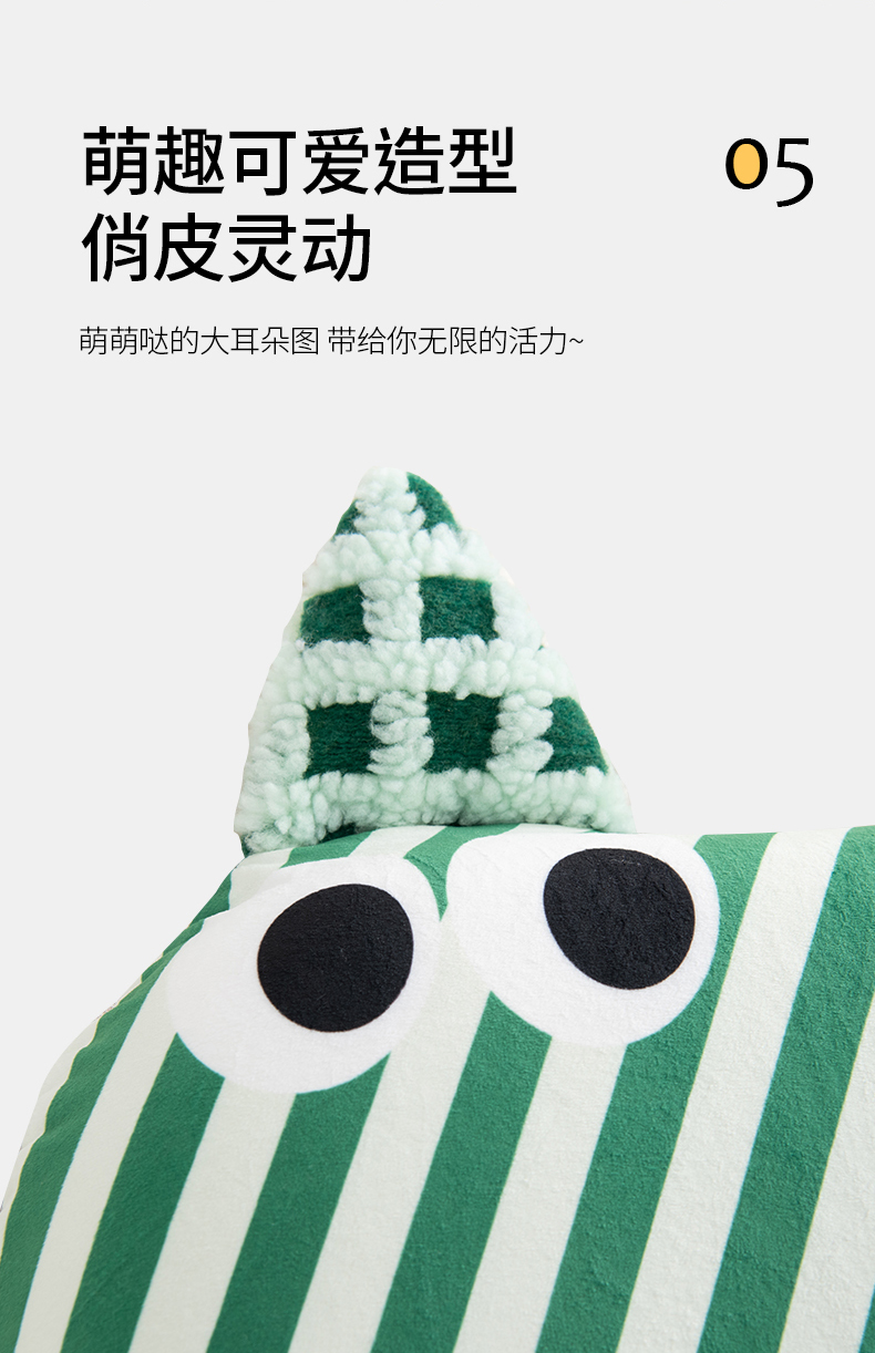 条纹小怪兽猫肚记忆枕-绿色条纹