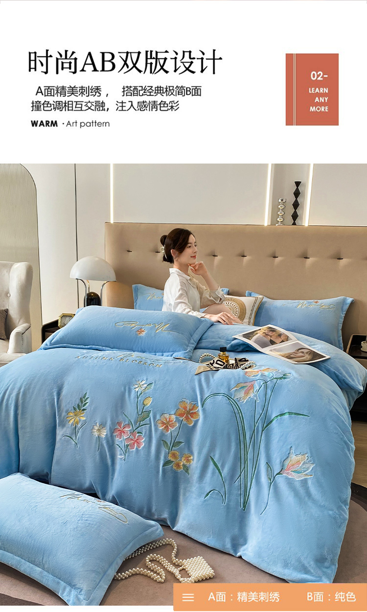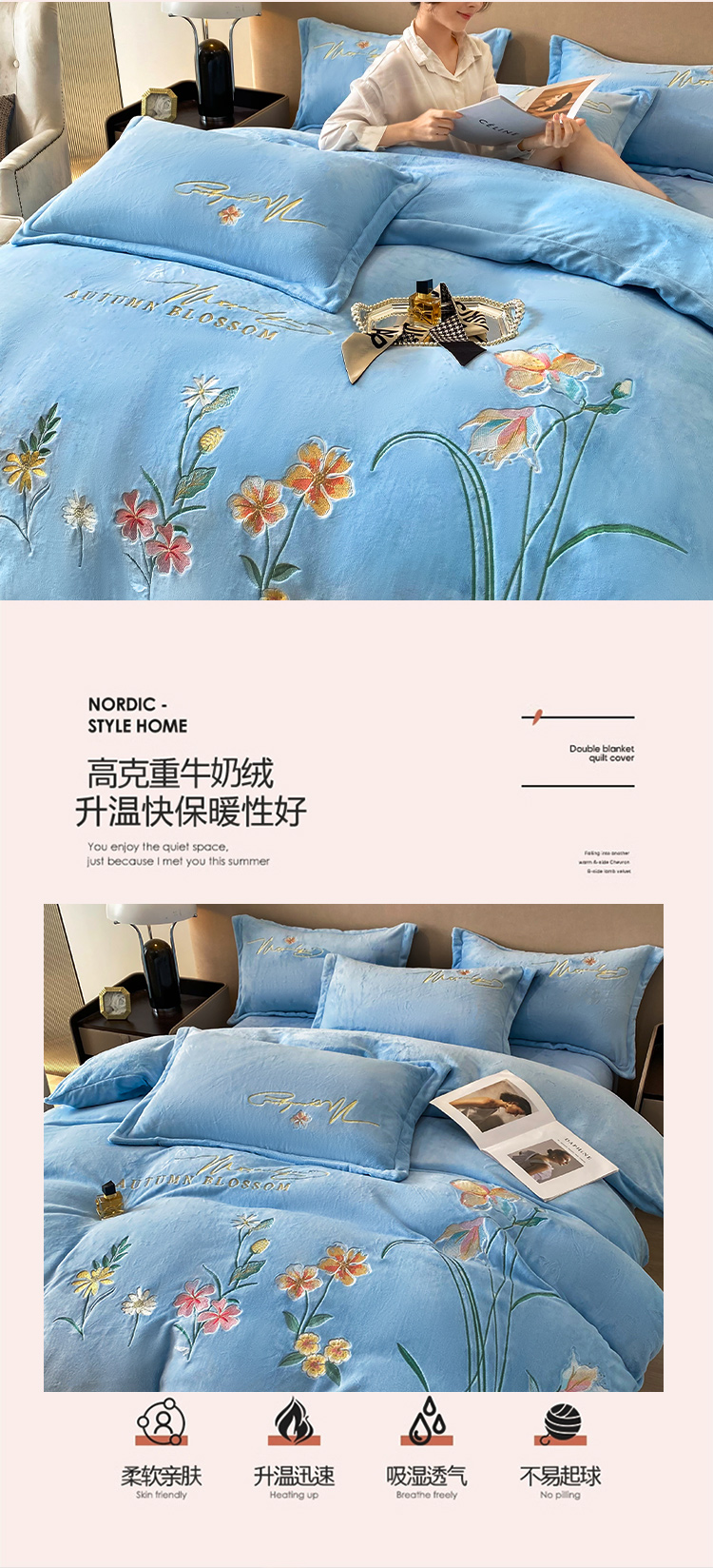 (总)漫布云2025秋冬新款全消光大版花卉平绣牛奶绒刺绣款四件套--绽放系列,绽放-艾玛橙, 绽放-豆沙红 ,绽放-樱花粉, 绽放-婴儿蓝 ,绽放-高级灰,绽放-梦幻紫