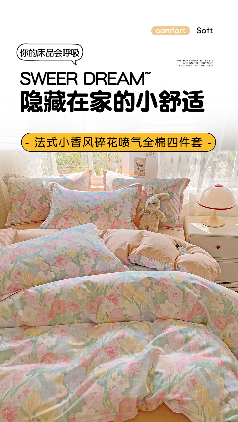 当前位置: 91家纺网 > 商品网购 > 床品套件 > 四件套 > 全棉普通四件套 > 卡普纯棉全棉四件套13070喷气床单款床笠款三件套 蒂芙娜-粉