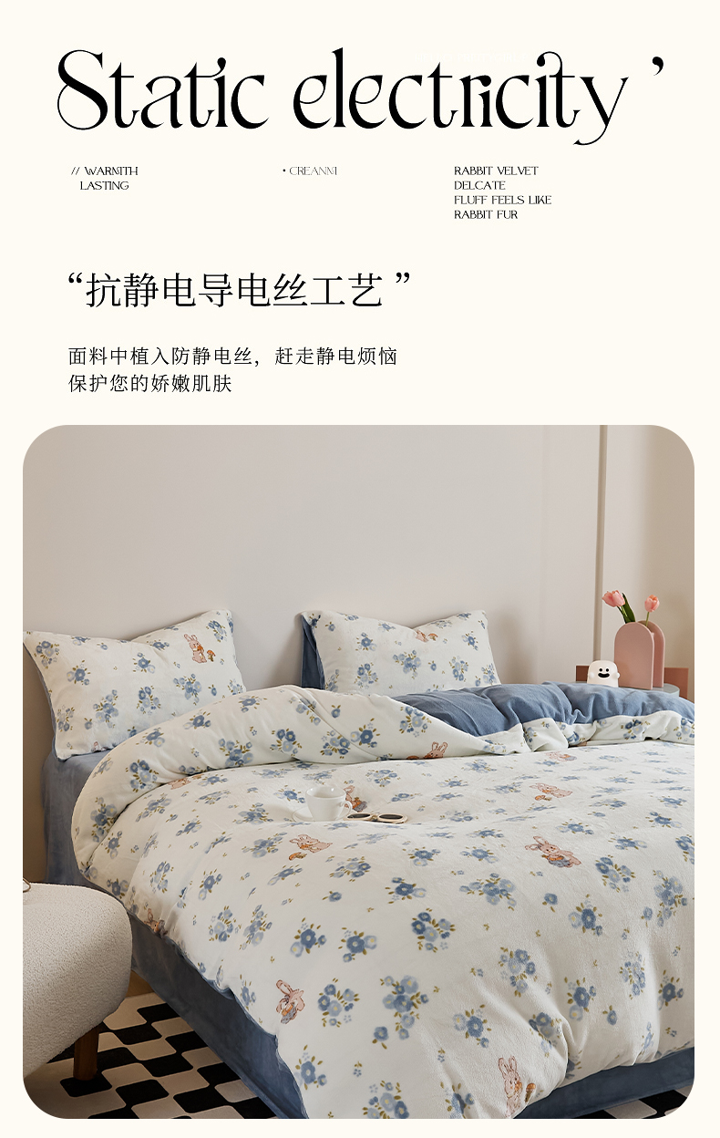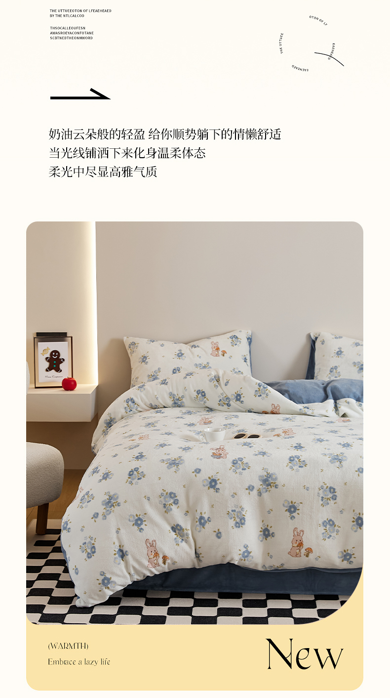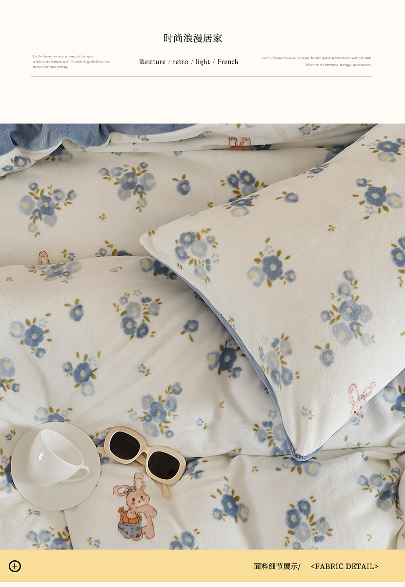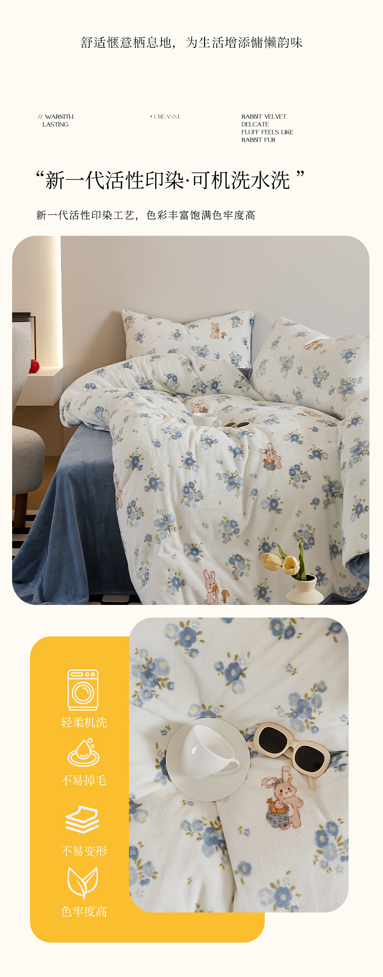 当前位置: 91家纺网 > 商品网购 > 床品套件 > 四件套 > 牛奶绒四件套 > 时光里 2024新款230克牛奶绒印花四件套 花小兔