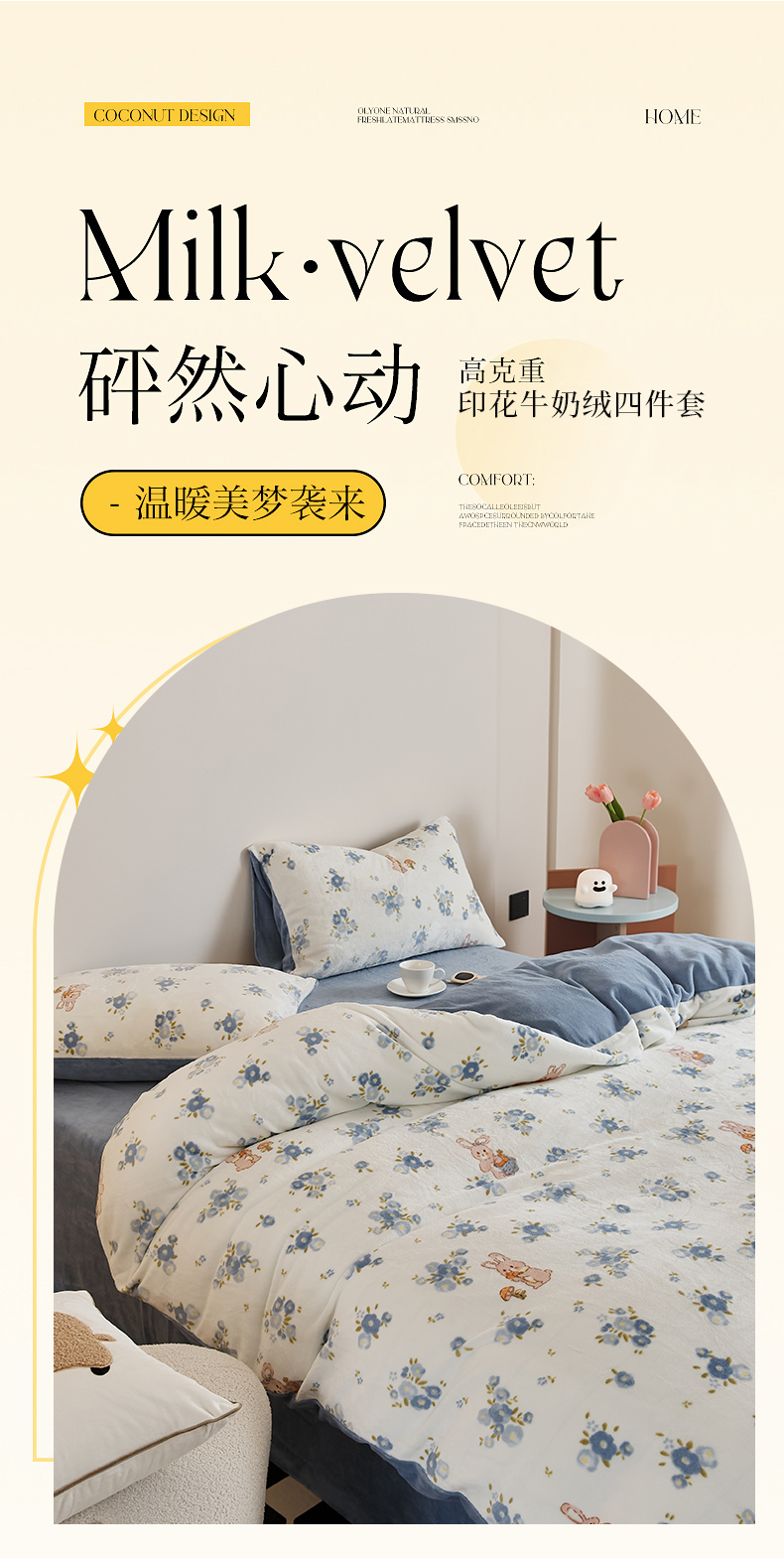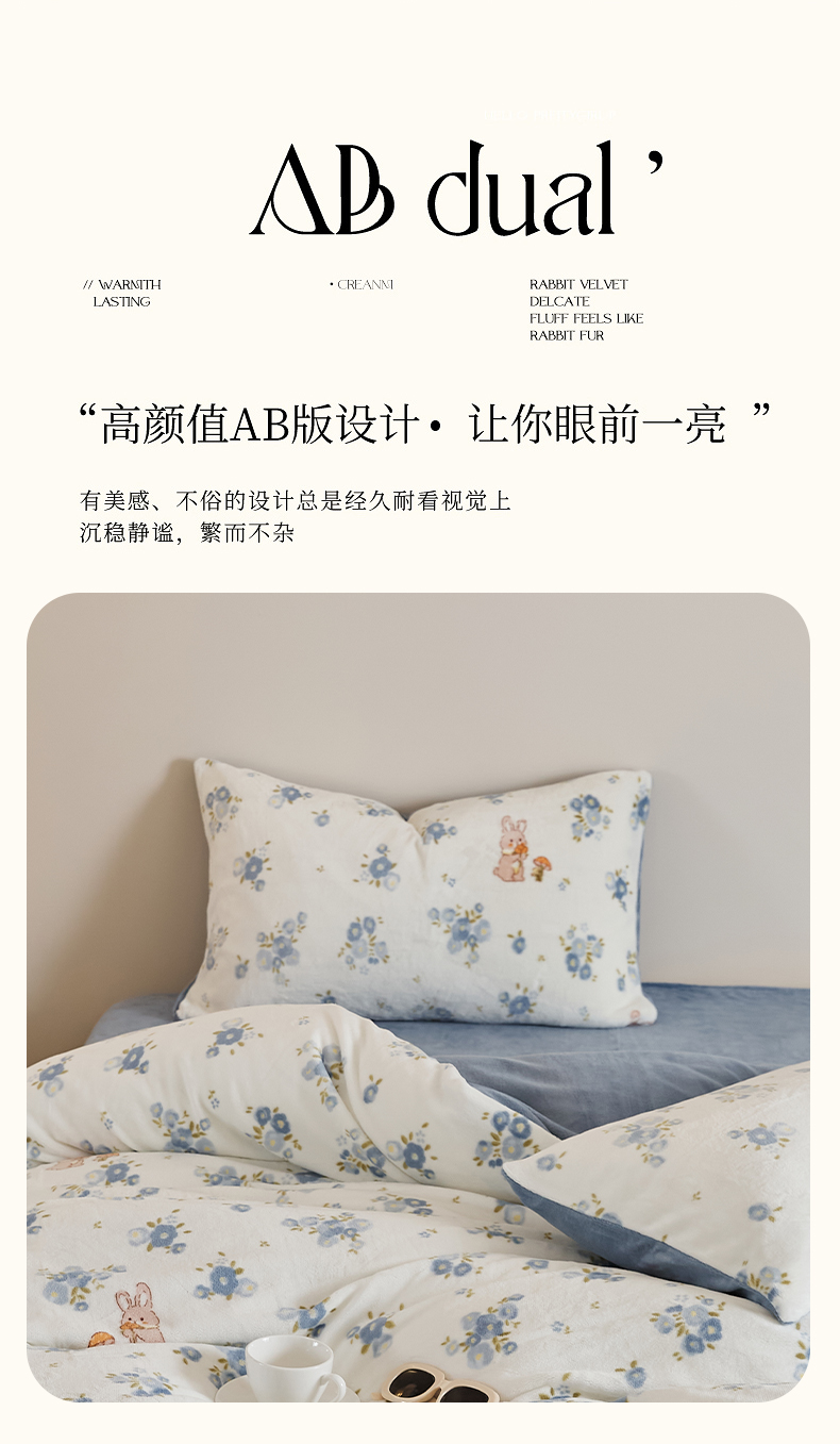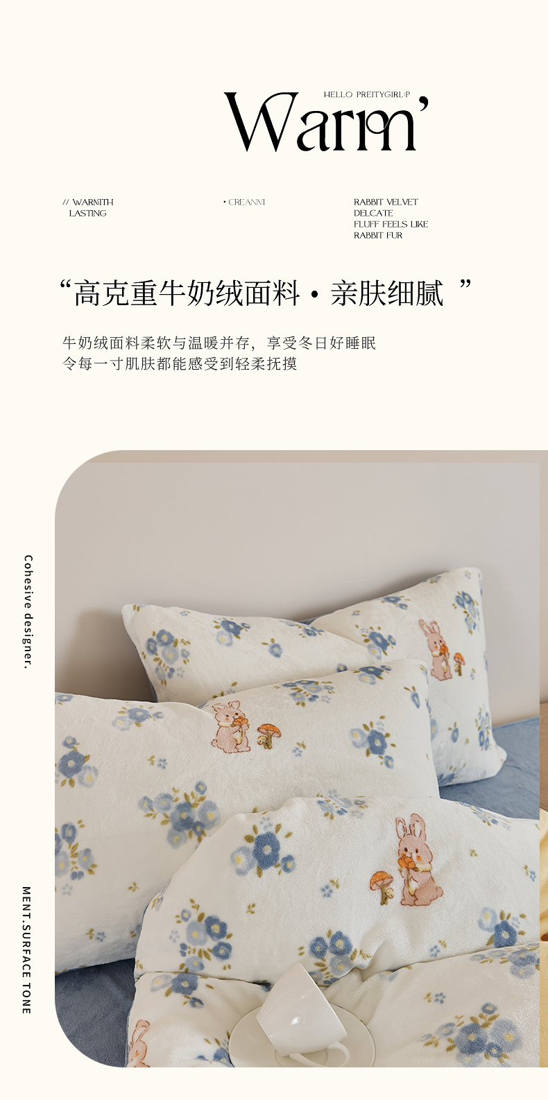 当前位置: 91家纺网 > 商品网购 > 床品套件 > 四件套 > 牛奶绒四件套 > 时光里 2024新款230克牛奶绒印花四件套 花小兔