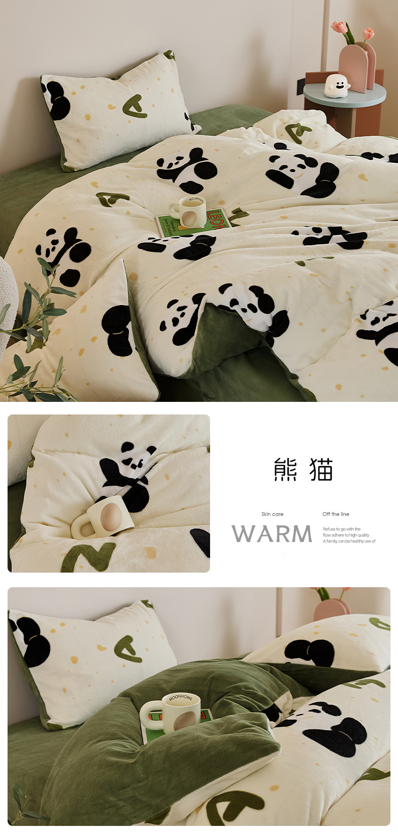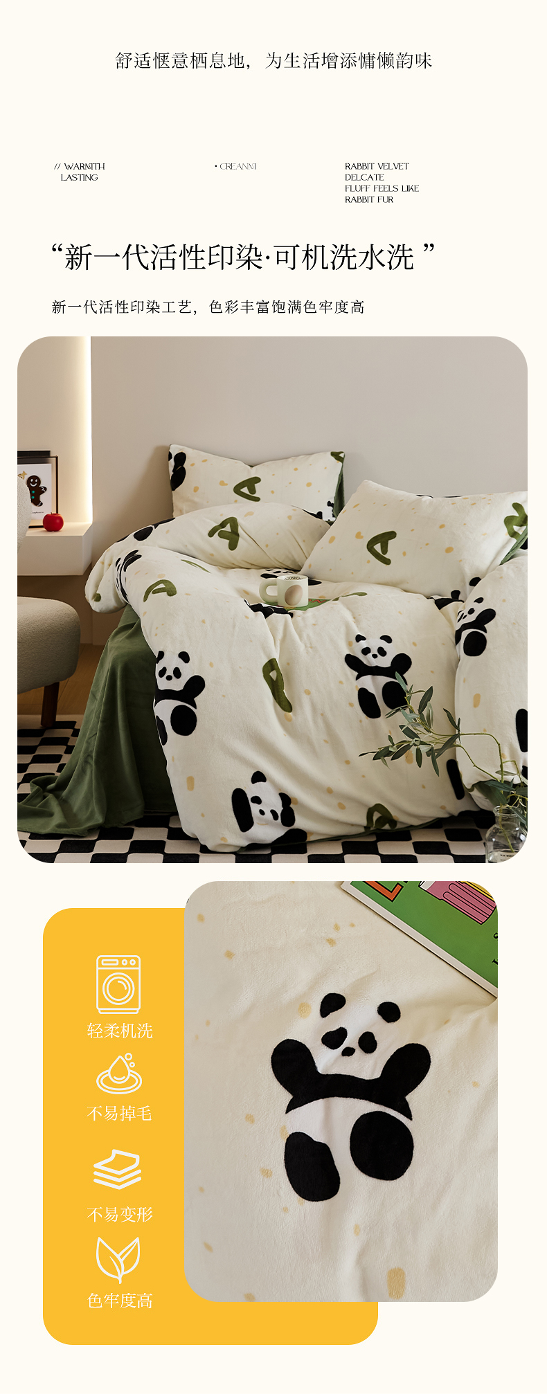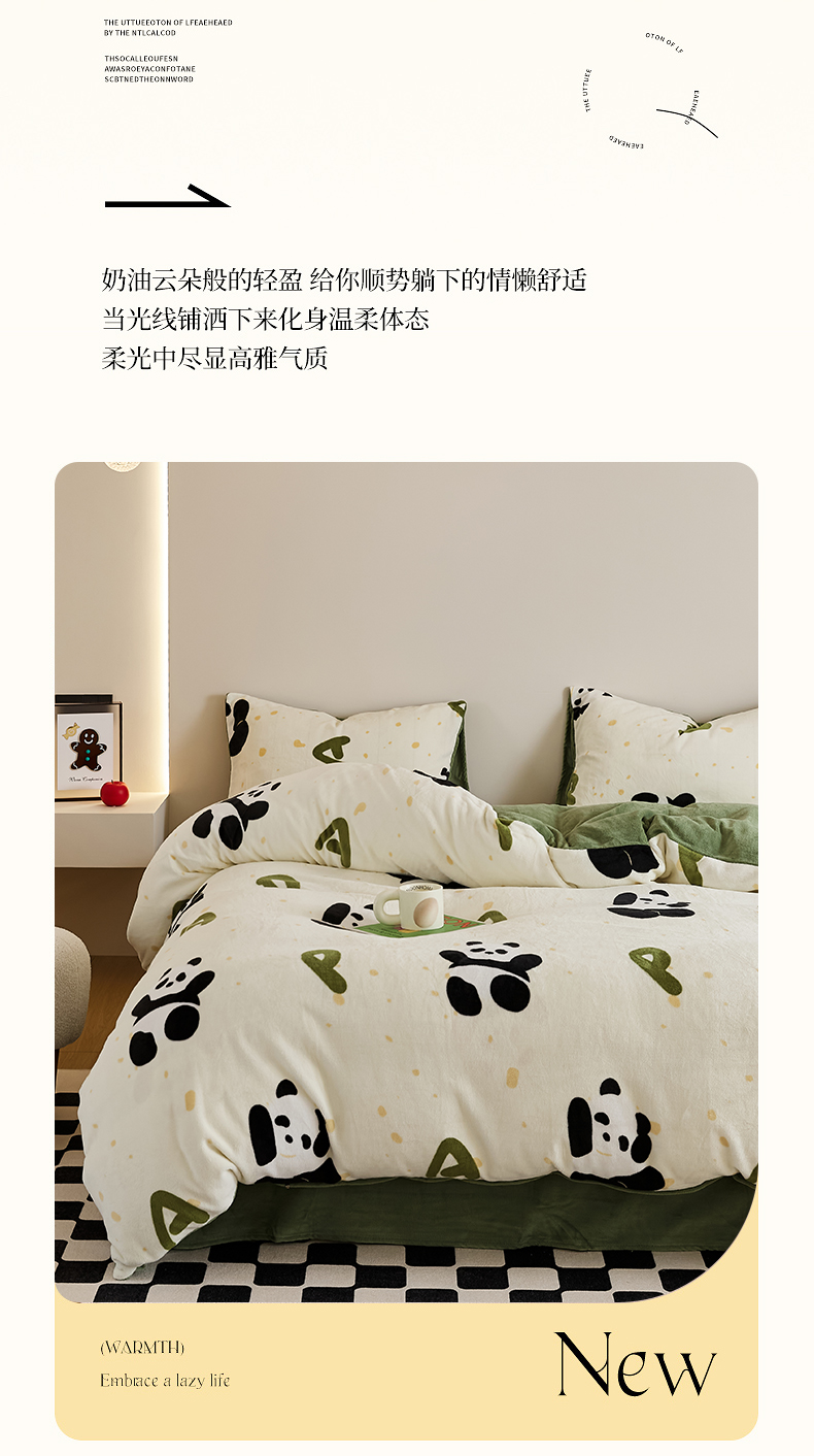当前位置: 91家纺网 > 商品网购 > 床品套件 > 四件套 > 牛奶绒四件套 > 时光里 2024新款230克牛奶绒印花四件套 熊猫