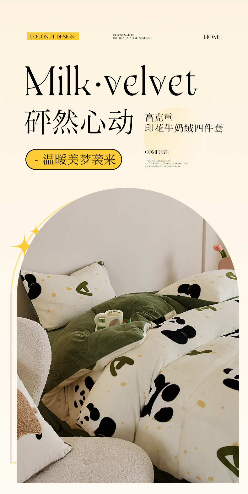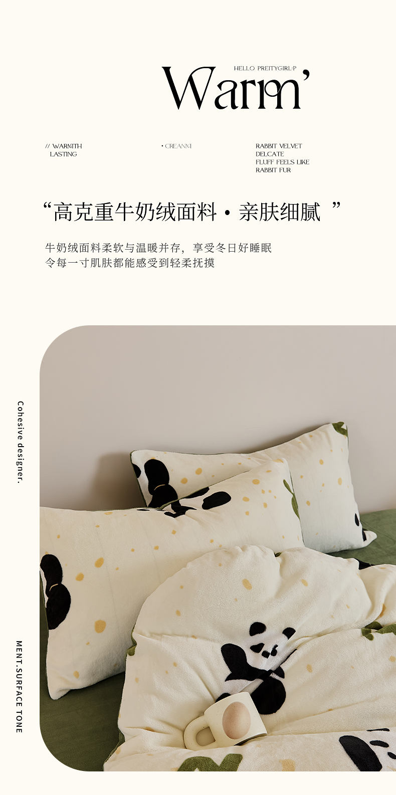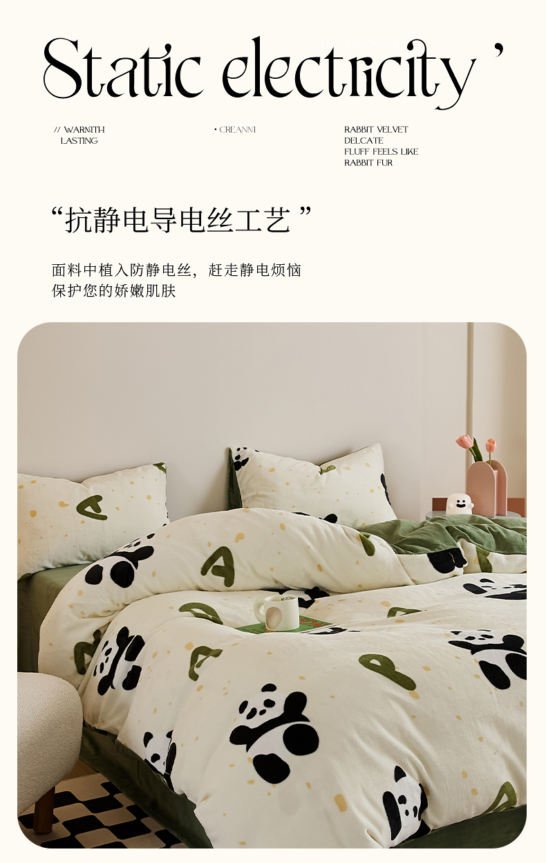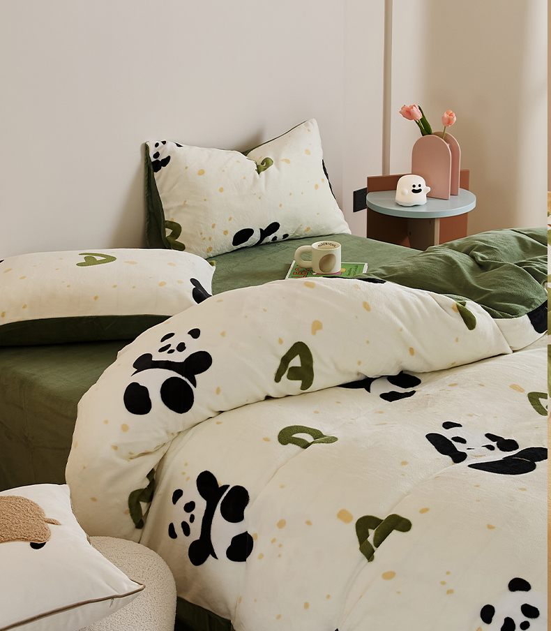 当前位置: 91家纺网 > 商品网购 > 床品套件 > 四件套 > 牛奶绒四件套 > 时光里 2024新款230克牛奶绒印花四件套 熊猫