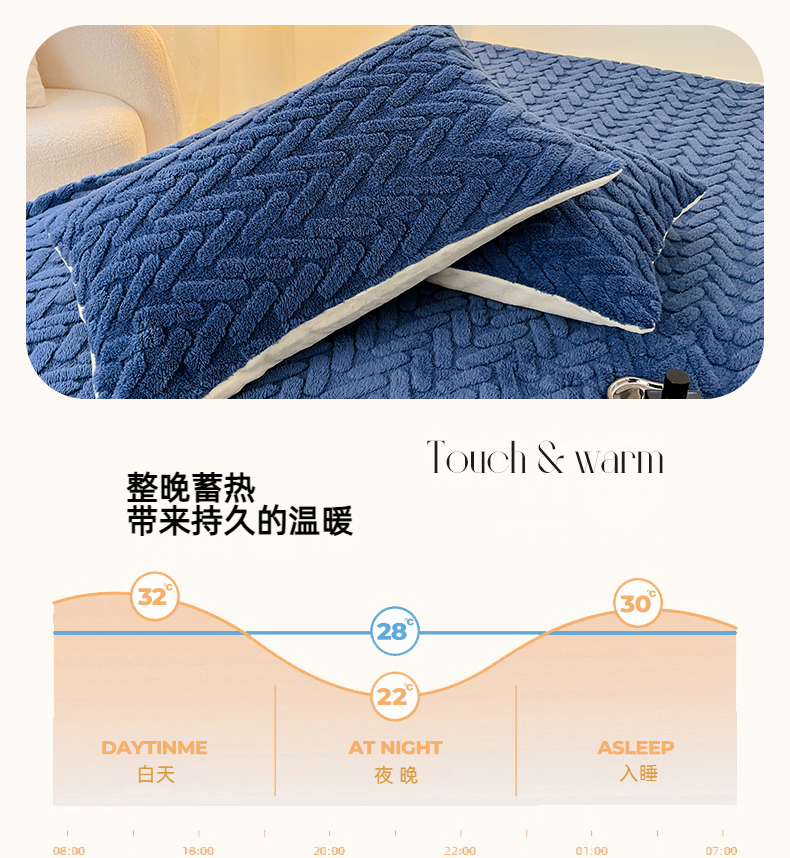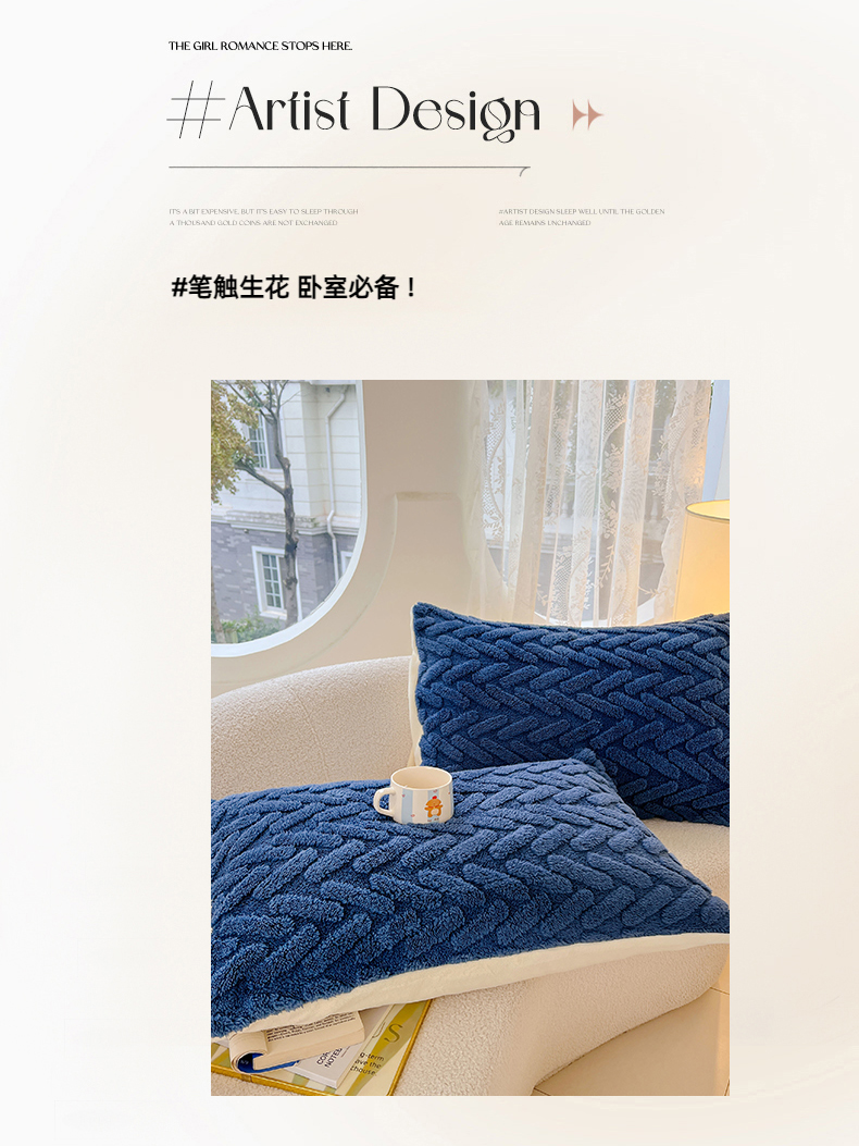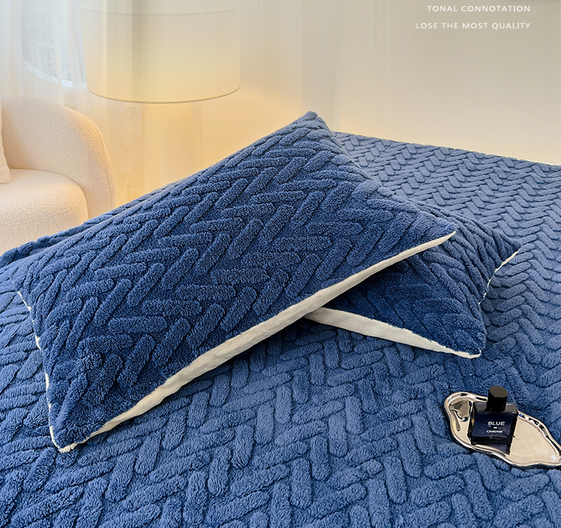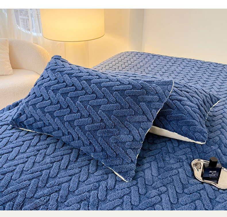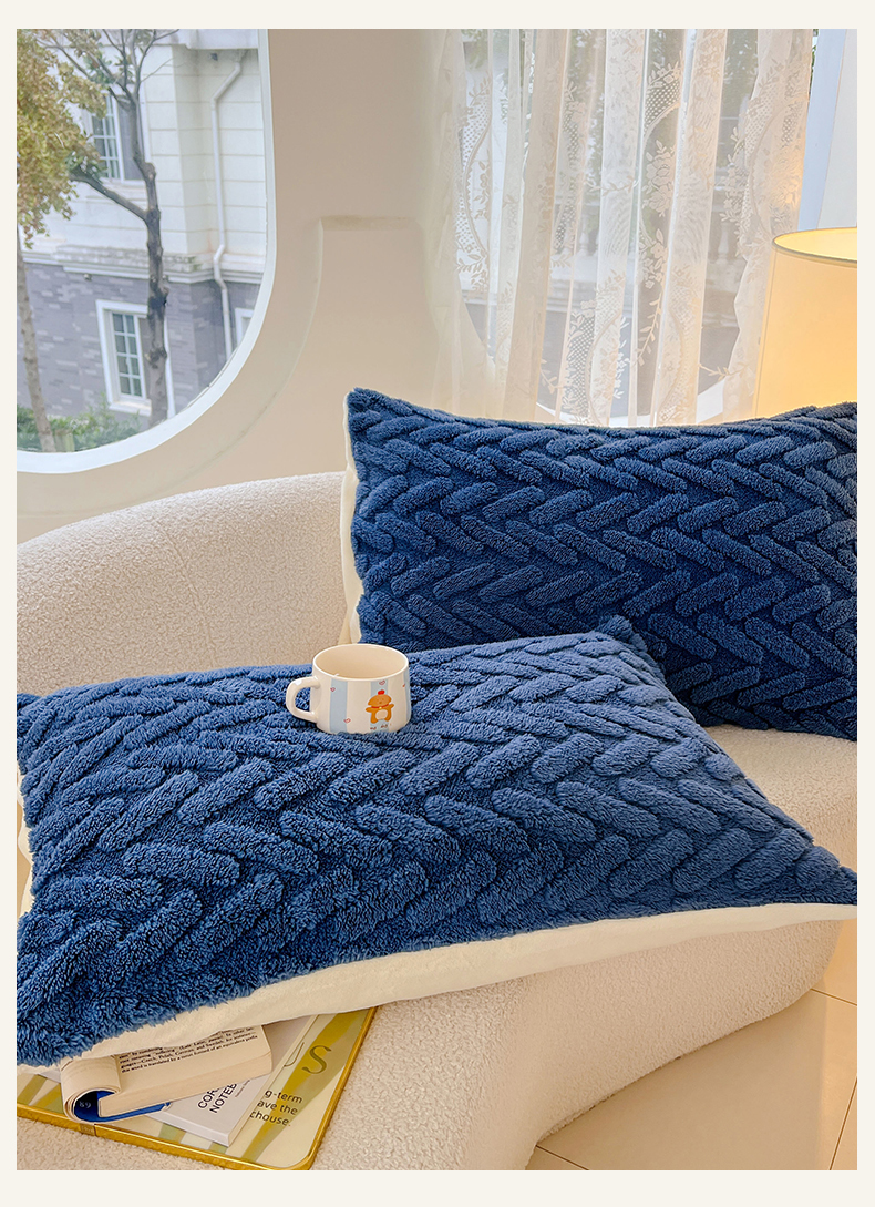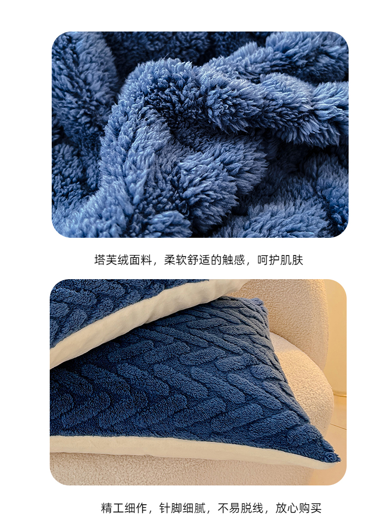 锦润家纺 2024新款双面塔芙绒枕套一对 塔芙绒-深蓝