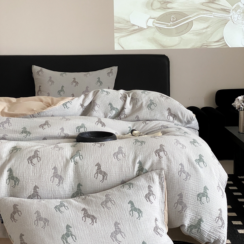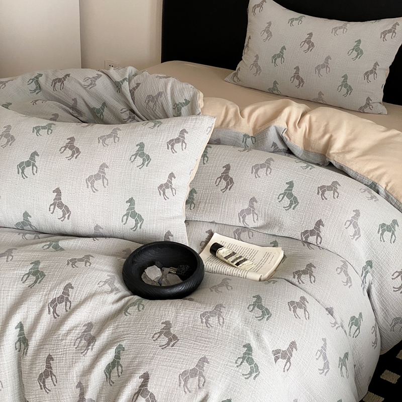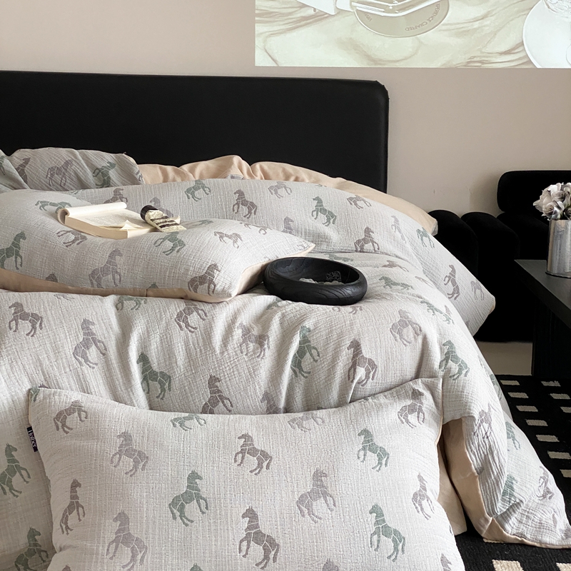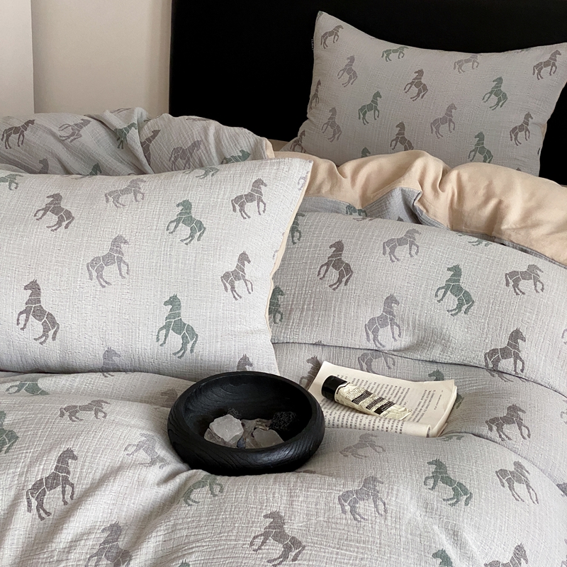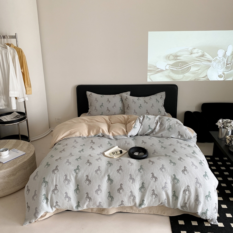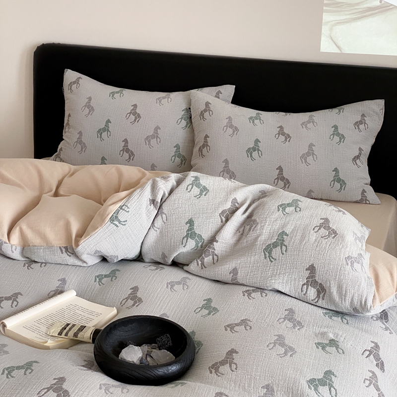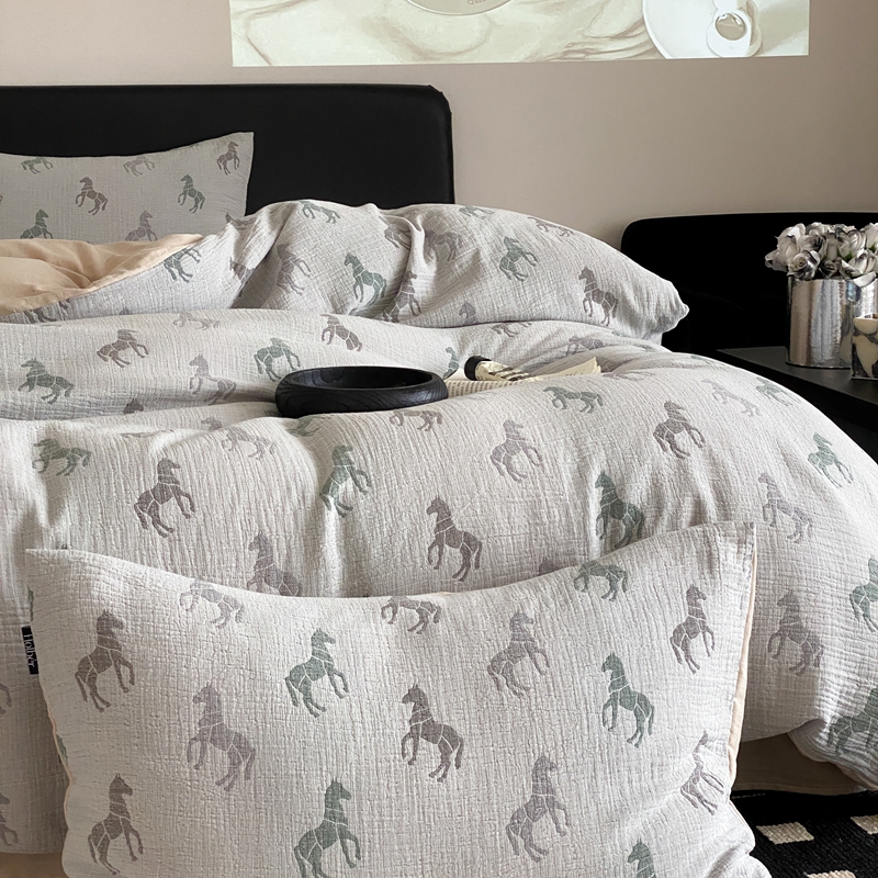 赫帛 2024新款A类全棉色织三层纱水洗棉四件套-渐变马 渐变马-绿灰