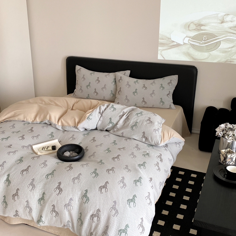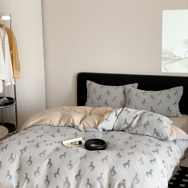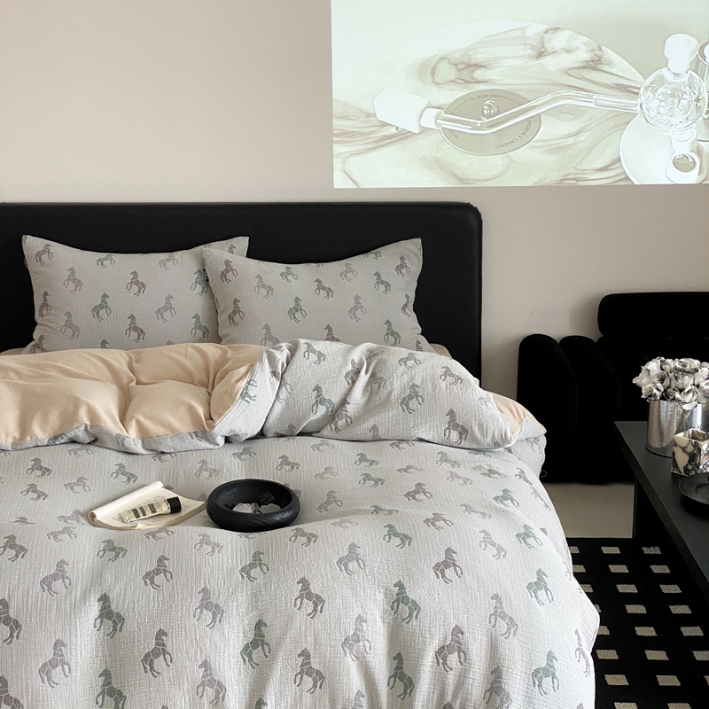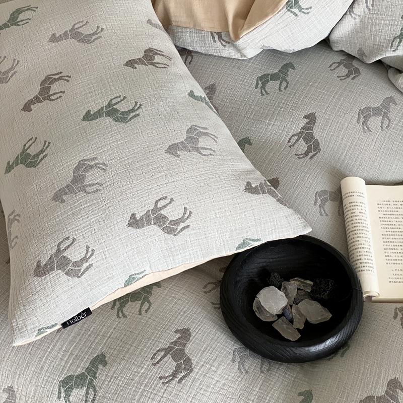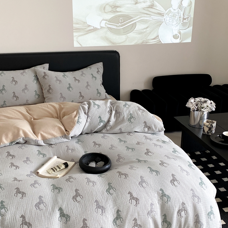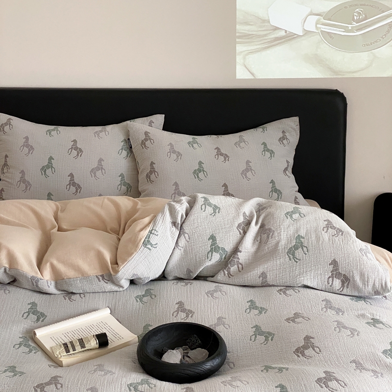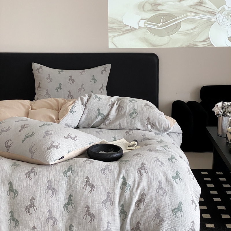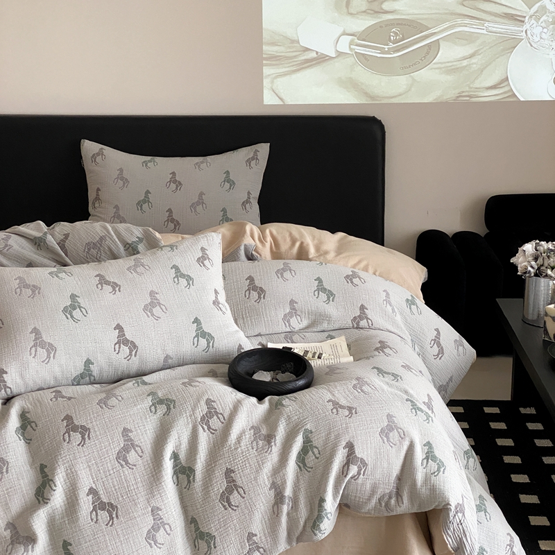 赫帛 2024新款A类全棉色织三层纱水洗棉四件套-渐变马 渐变马-绿灰
