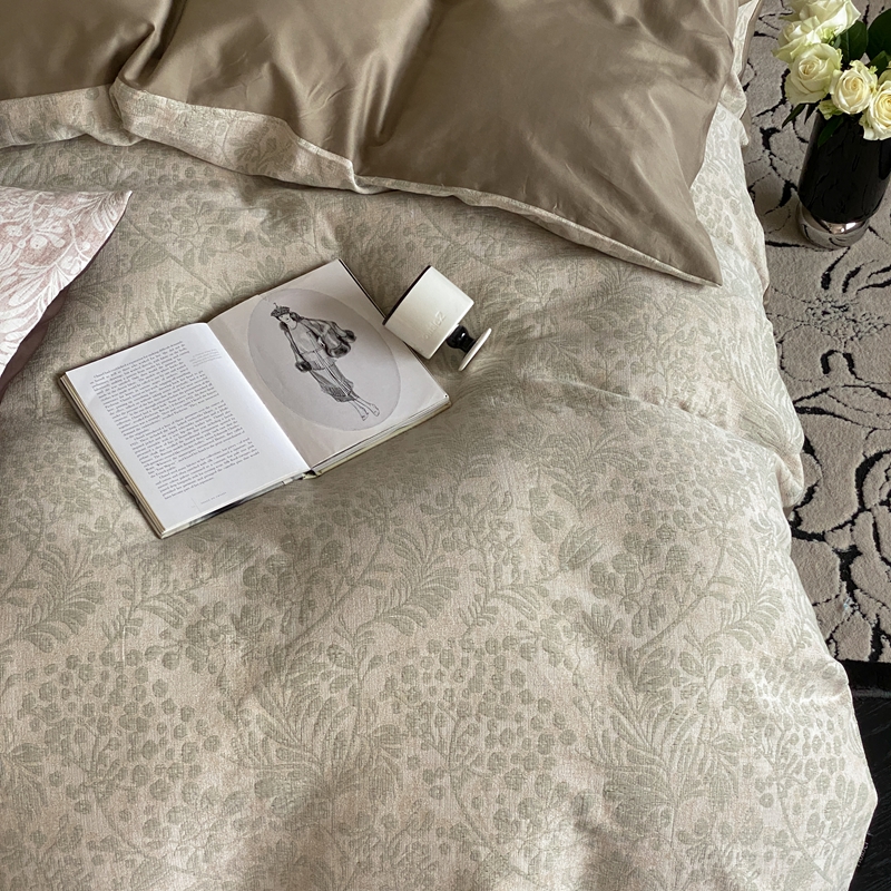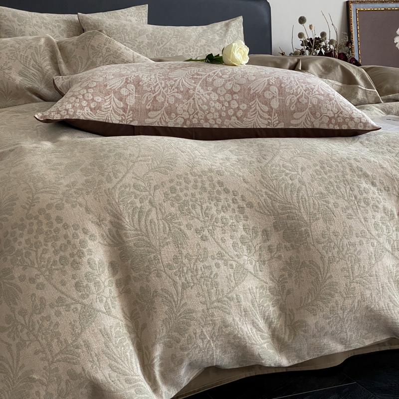 (总)赫帛 2025新款A类全棉棉麻色织提花四件套-欧若拉,欧若拉-灰色,欧若拉-绿色