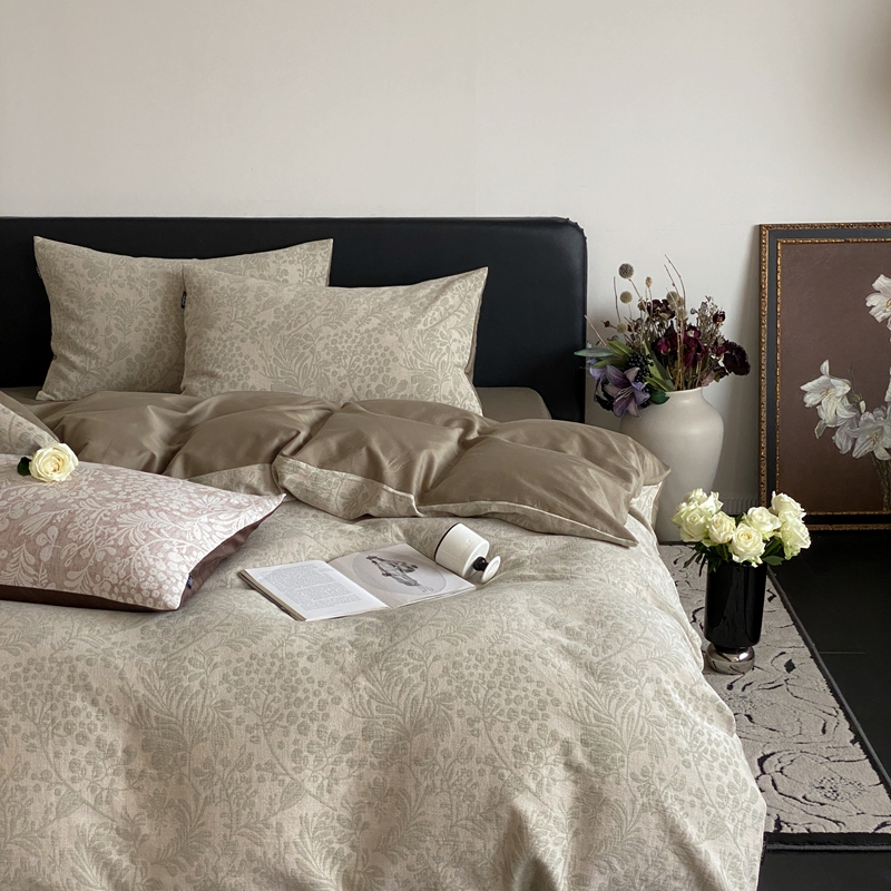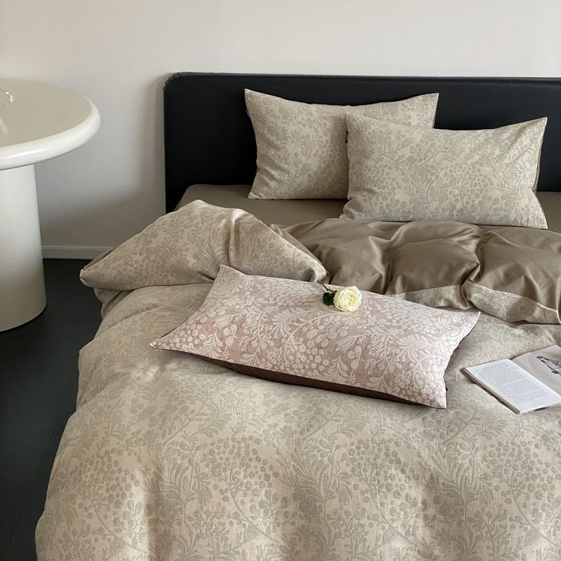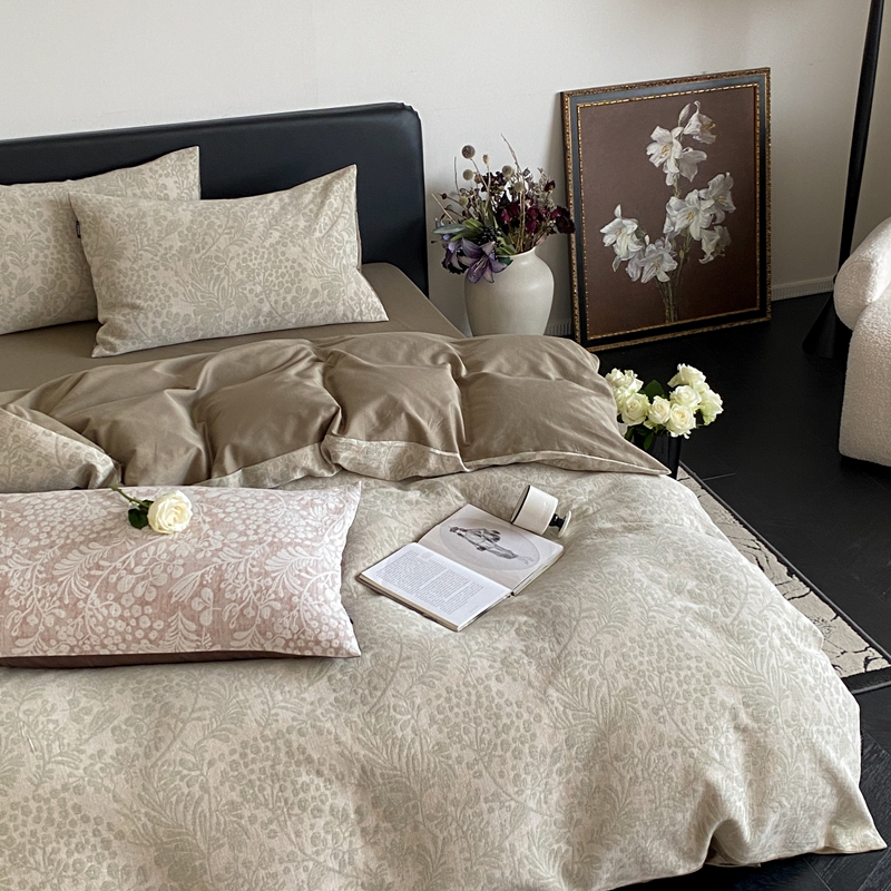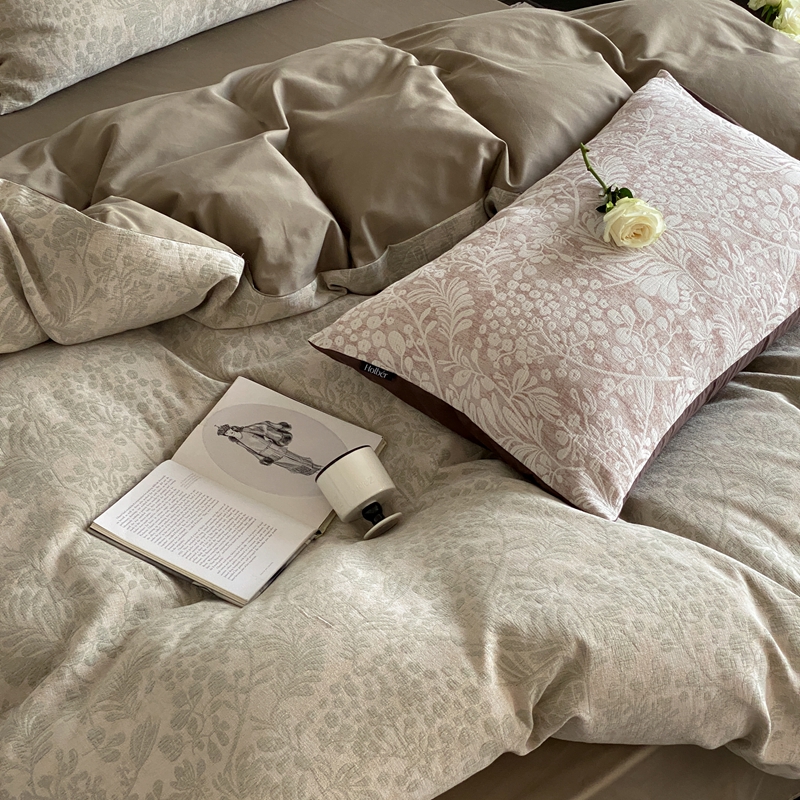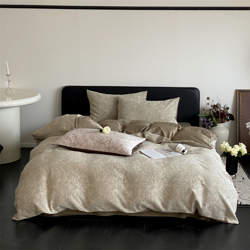 (总)赫帛 2025新款60支全棉色织提花磨毛四件套-腰果花,腰果花-灰咖色,腰果花-绿米色,腰果花-奶咖色