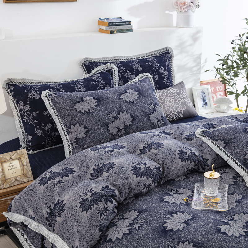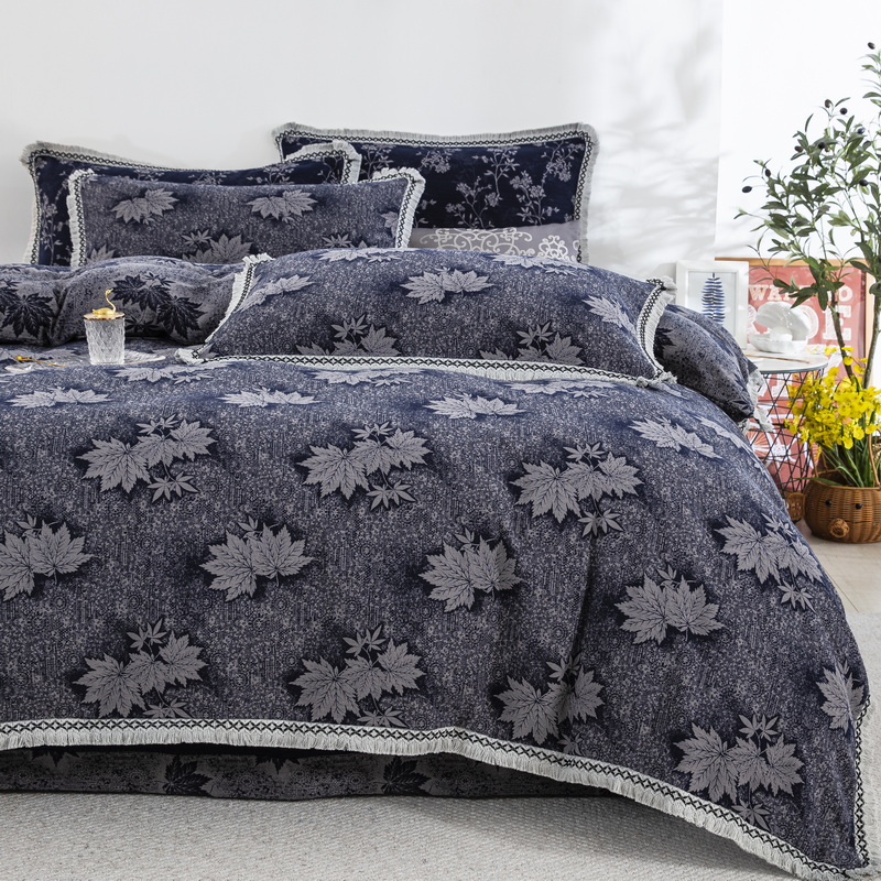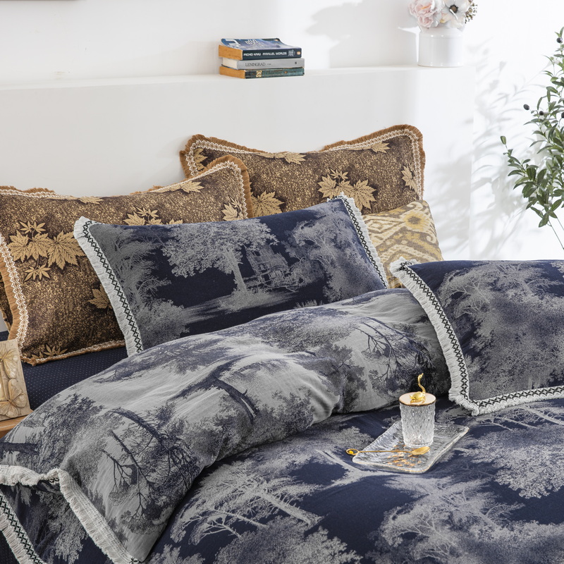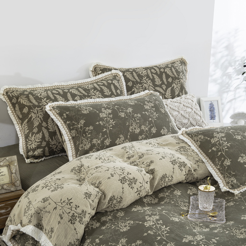 (总)鲁爱 2025新款全棉色织双层纱布流苏款四件套