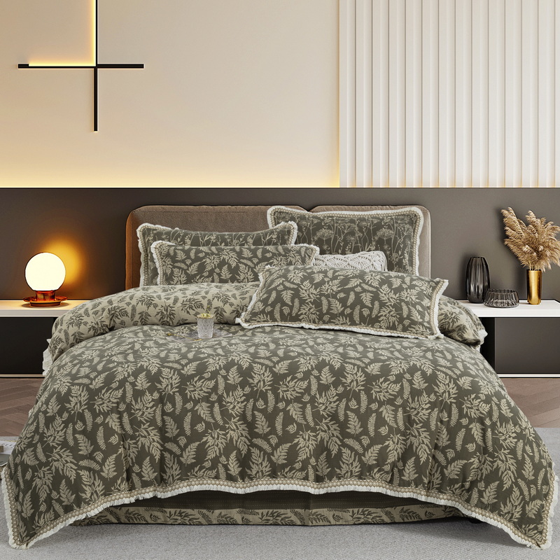 (总)鲁爱家纺供货 2025新款韩版色织提花四件套,花都-灰,花都-咖,兰亭序-豆沙,梅醉春秋-粉,梦蝶-浅咖,鸟语花香-浅咖,醉云间-绿