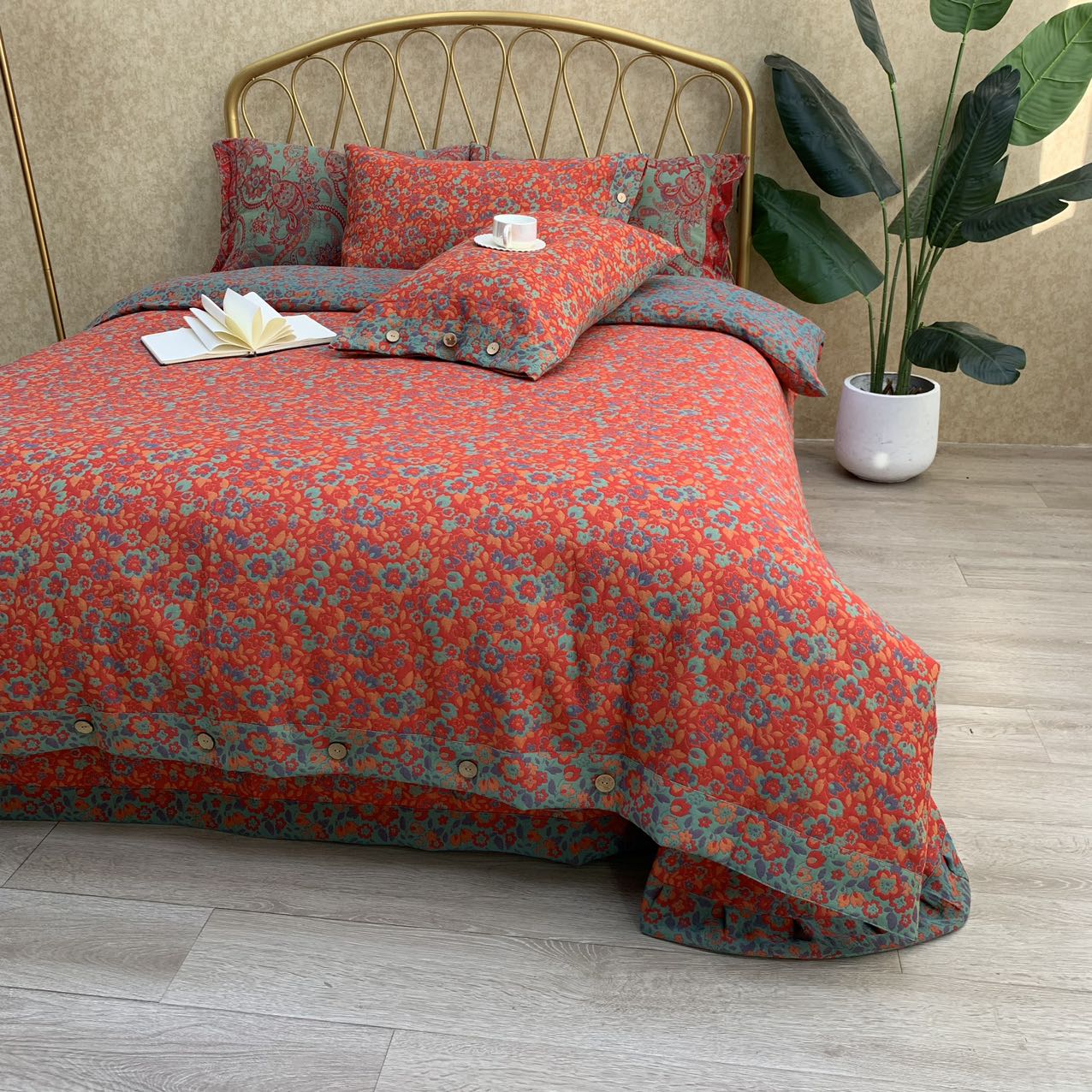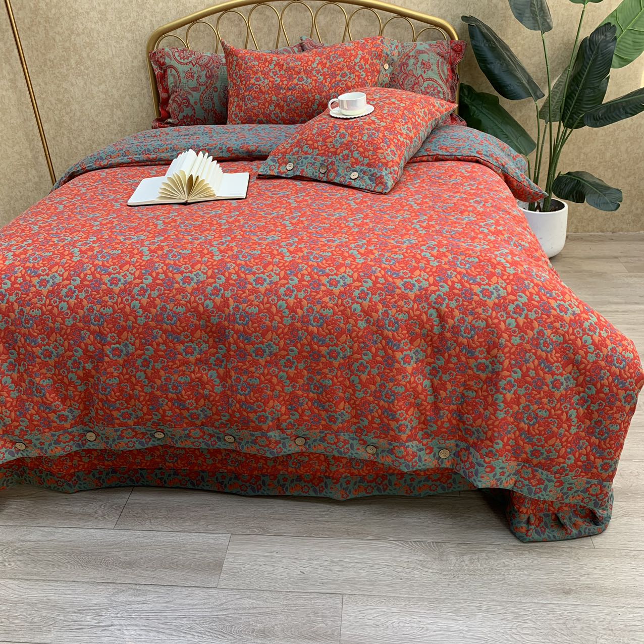 商品名称:鲁爱 2025新款三层纱床盖款四件套 红小花