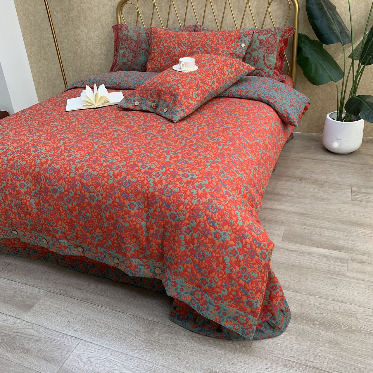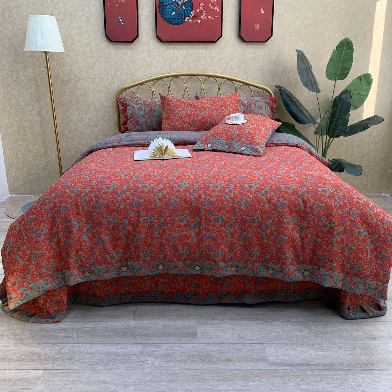鲁爱 2025新款三层纱床盖款四件套 红小花