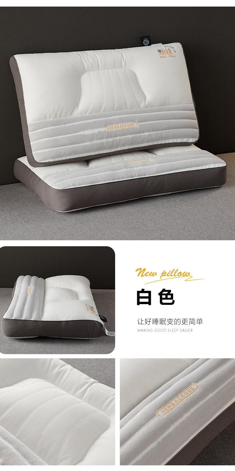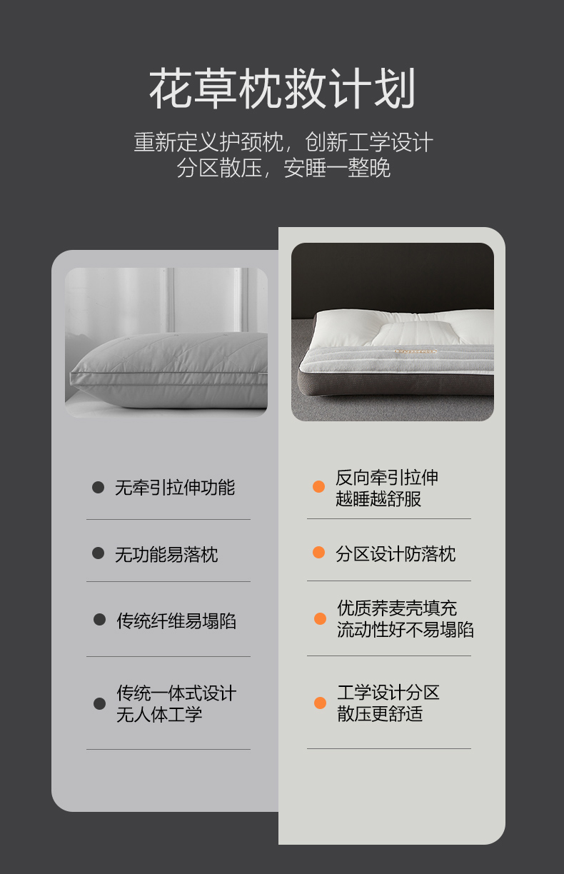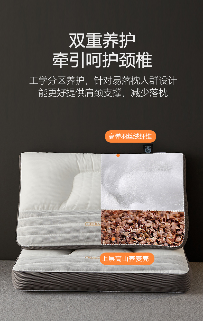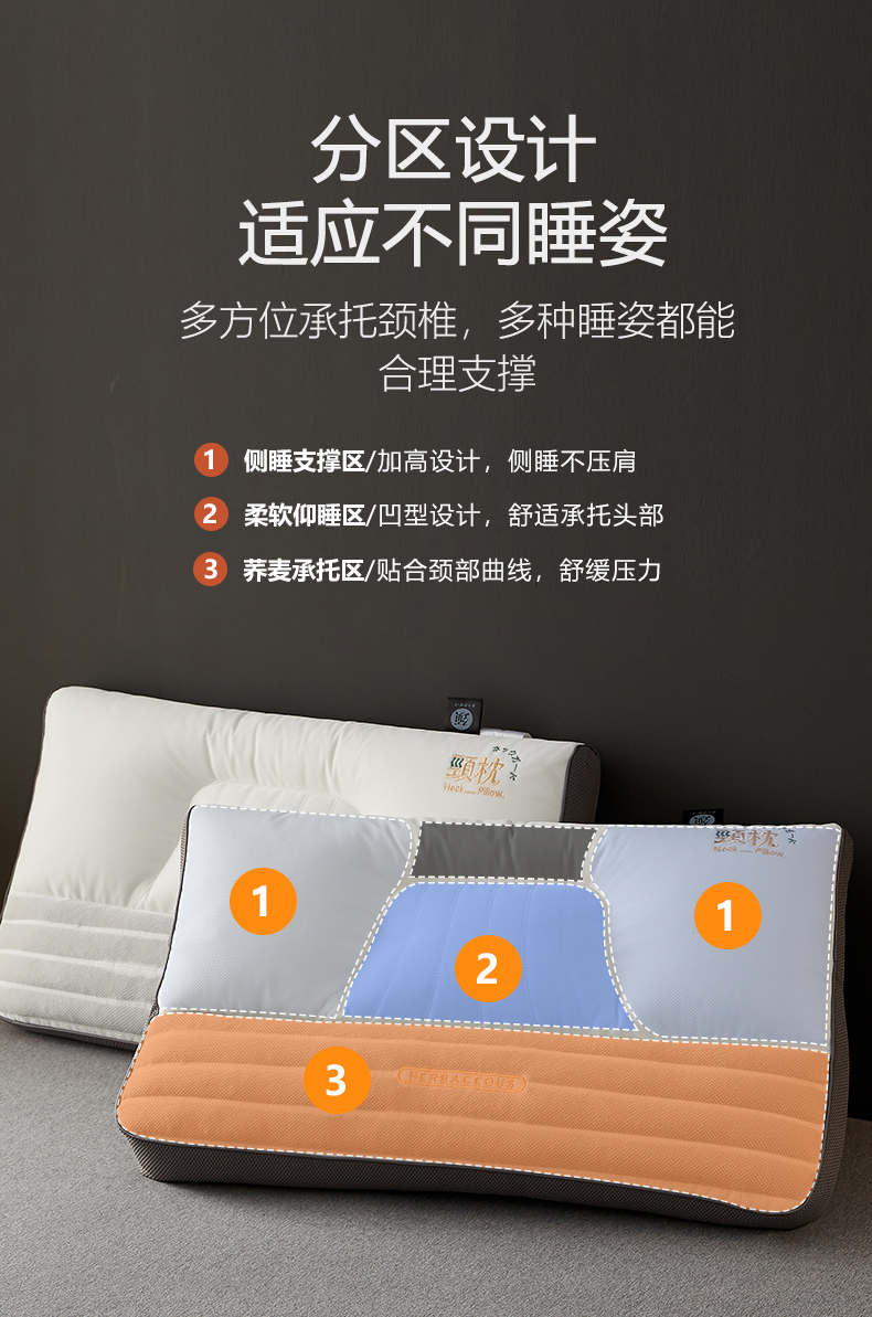 (总)乐可 2025新款分区两用牵引枕全棉双向枕 枕头枕芯,分区两用牵引枕