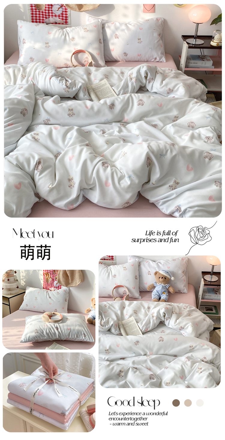 (总)漫仙阁家纺 2025新品云朵棉可爱风卡通烫画单床笠枕套三件套,小浣熊,邻家女孩,小青蛙,兔小姐,花仙子,狗狗家族