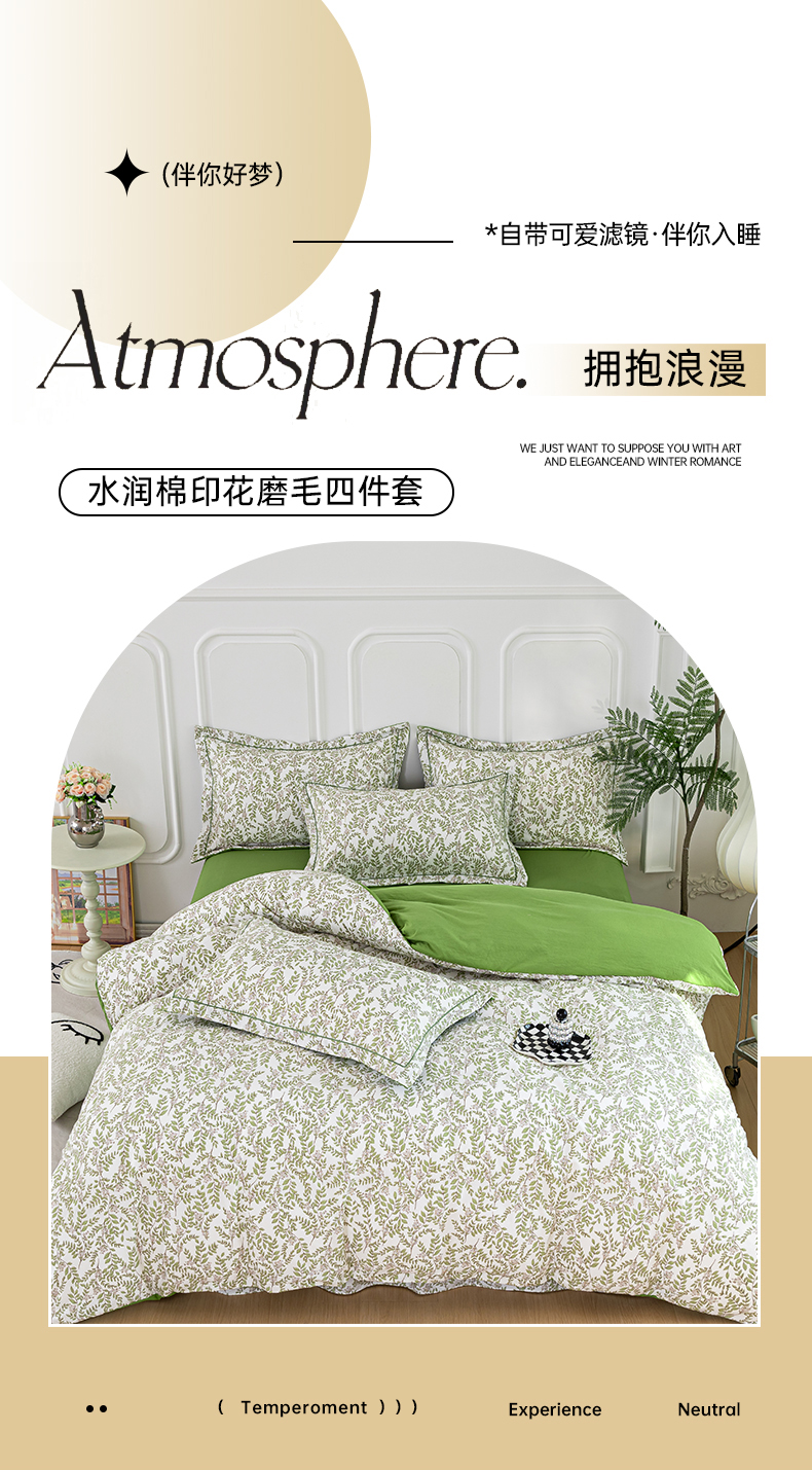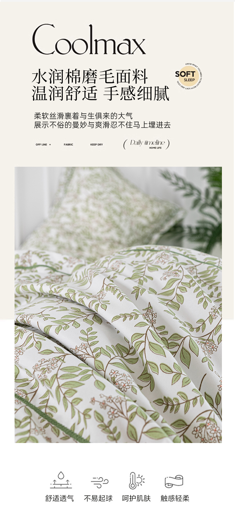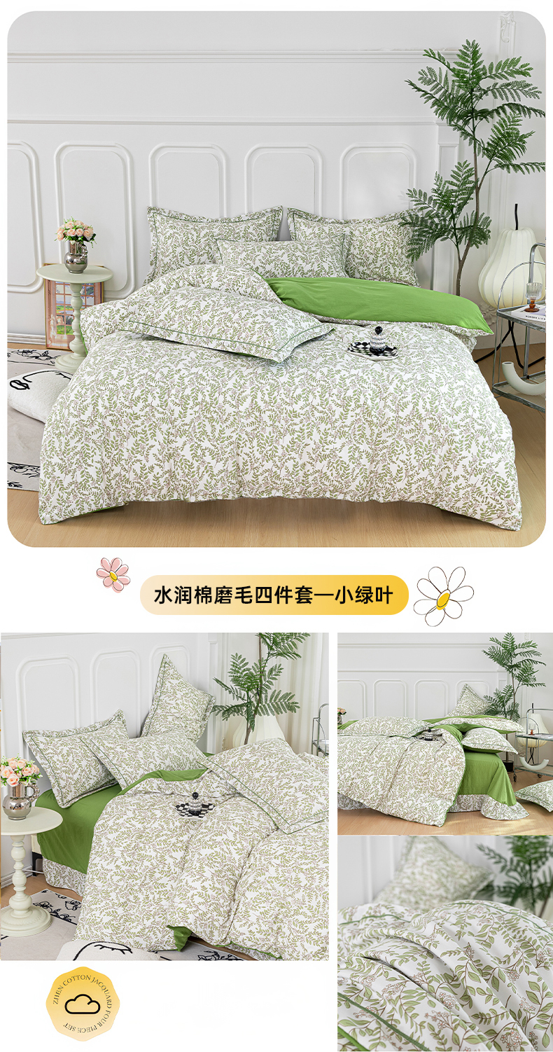 雅慕家居 2025新款A类碎花水润棉磨毛四件套 绿野