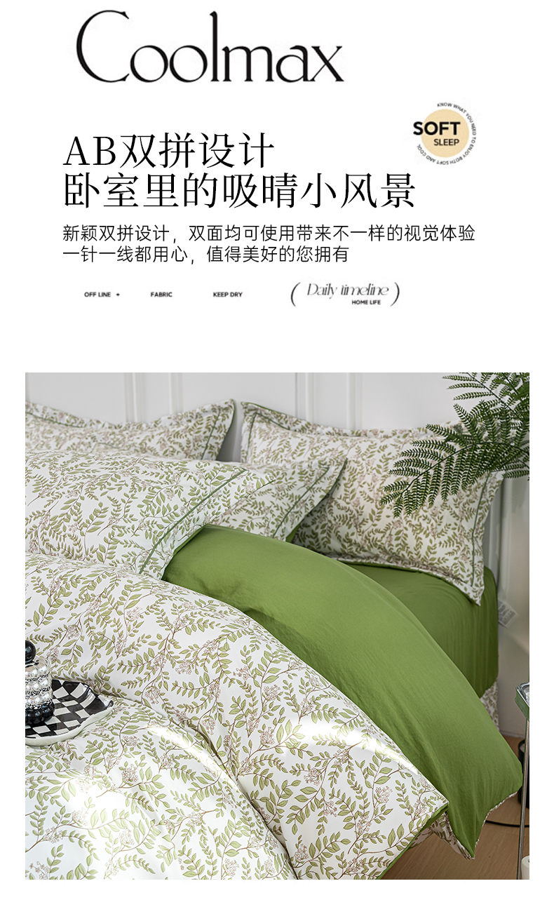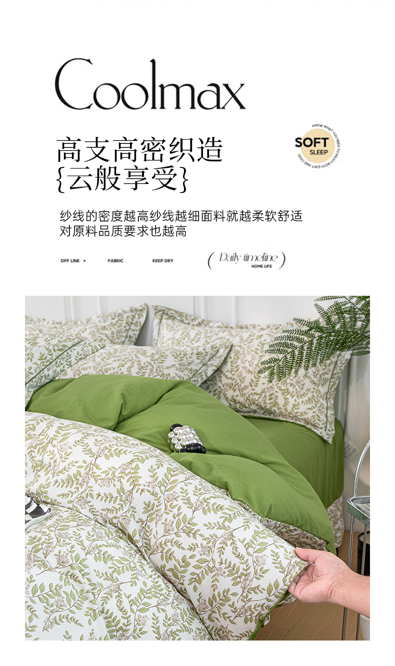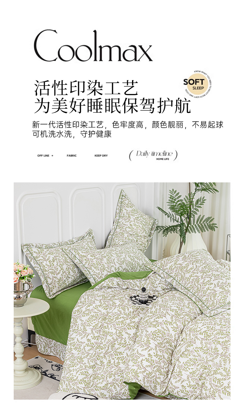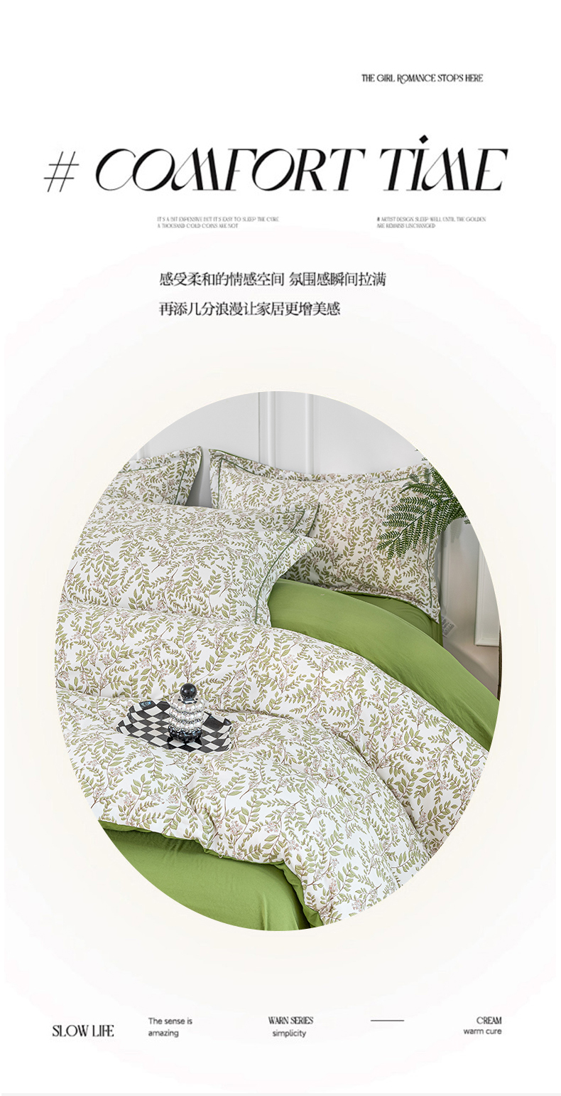 雅慕家居 2025新款A类碎花水润棉磨毛四件套 绿野