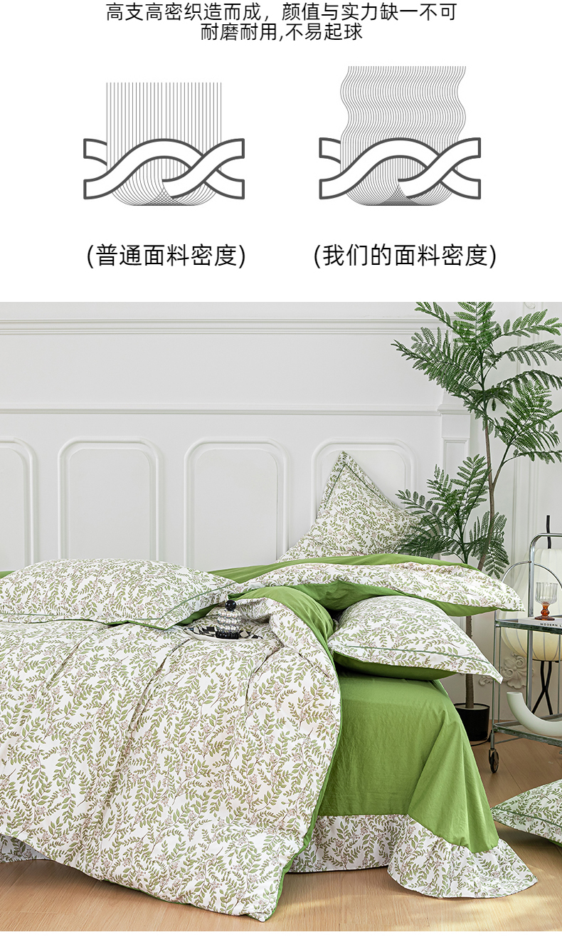 商品名称:雅慕家居 2025新款A类碎花水润棉磨毛四件套 绿野