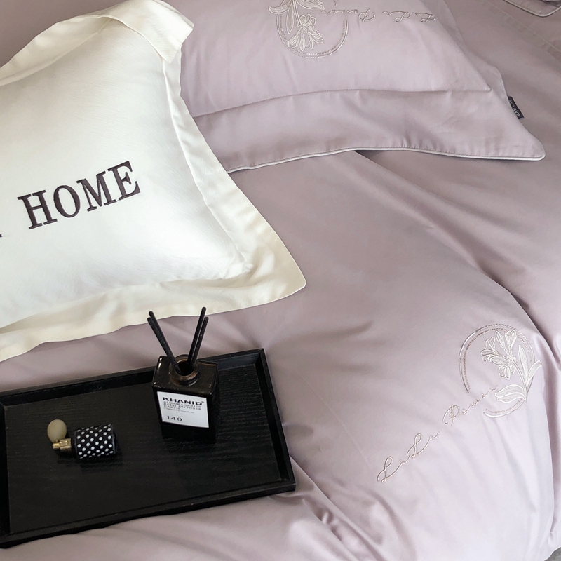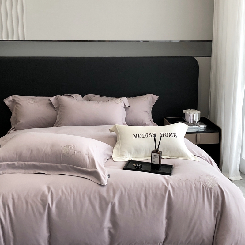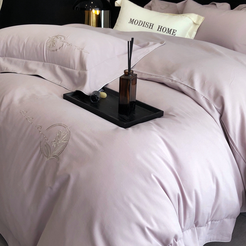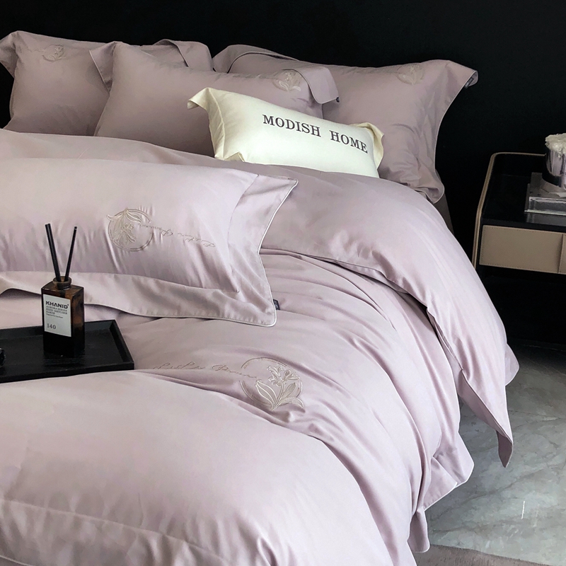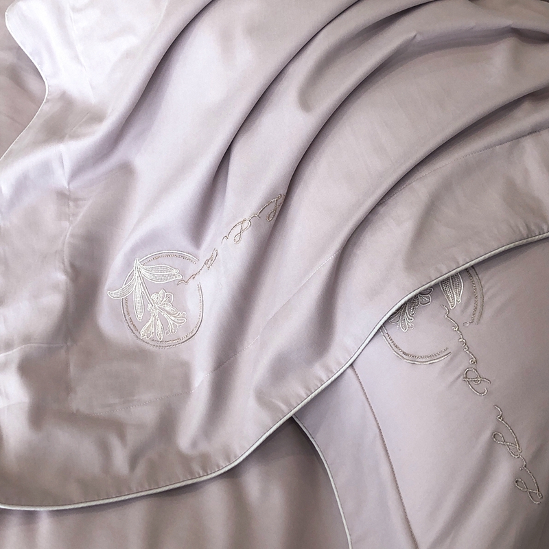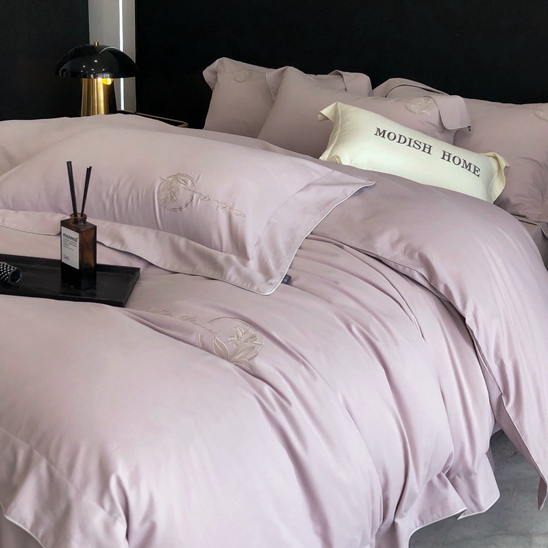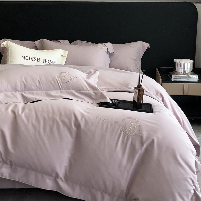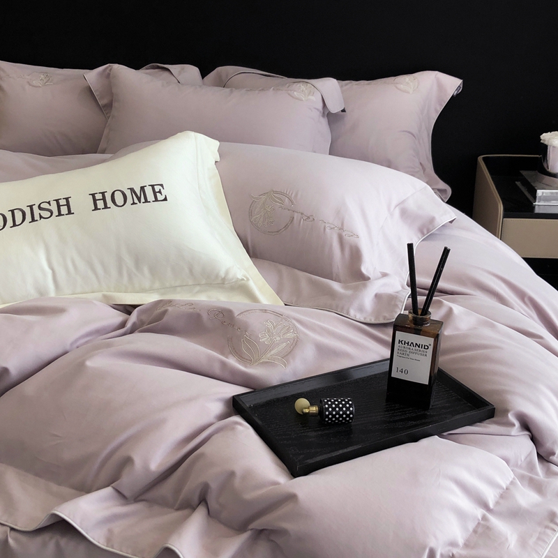 高支高密长绒棉贡缎磨毛花颜系列四件套 花颜浅紫
