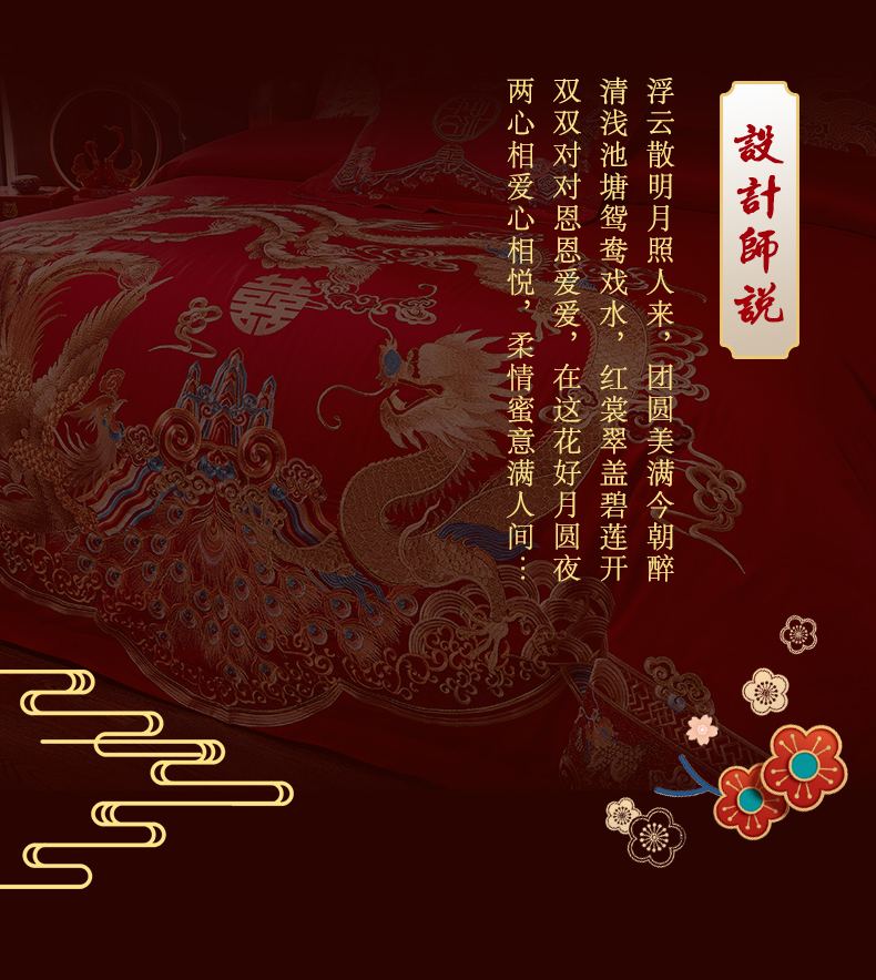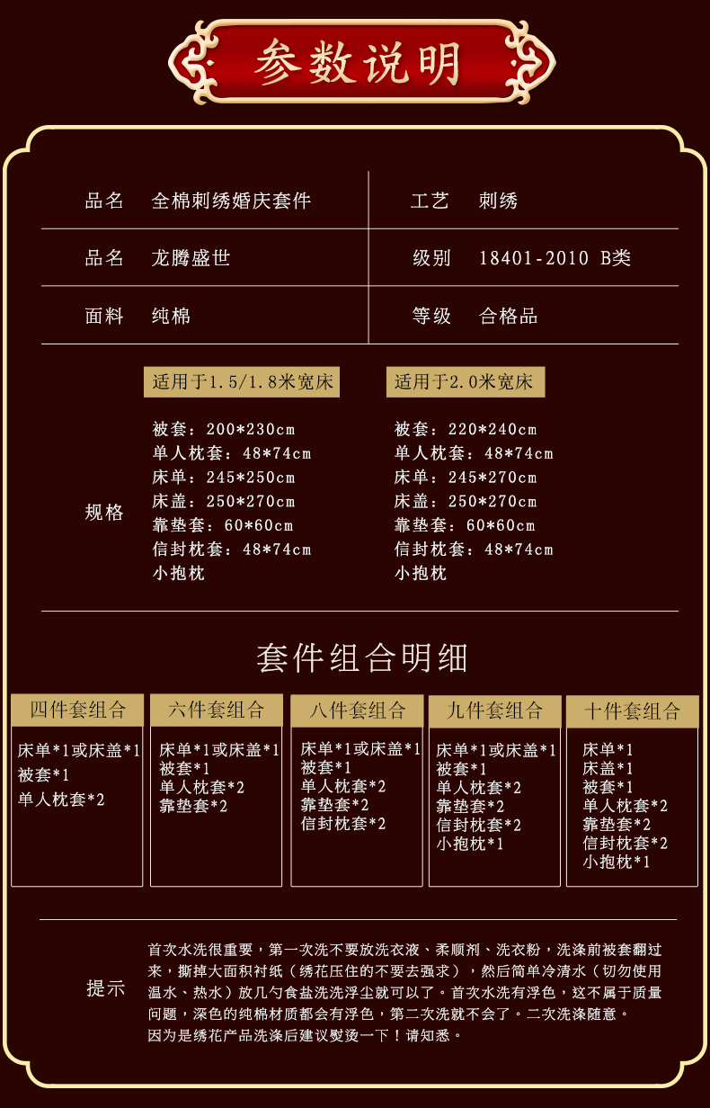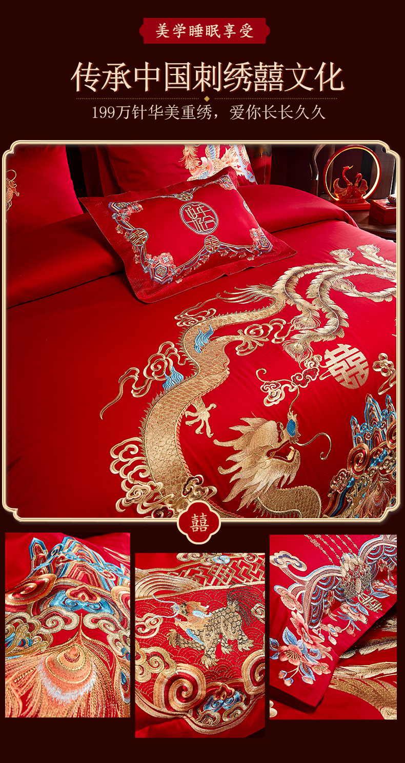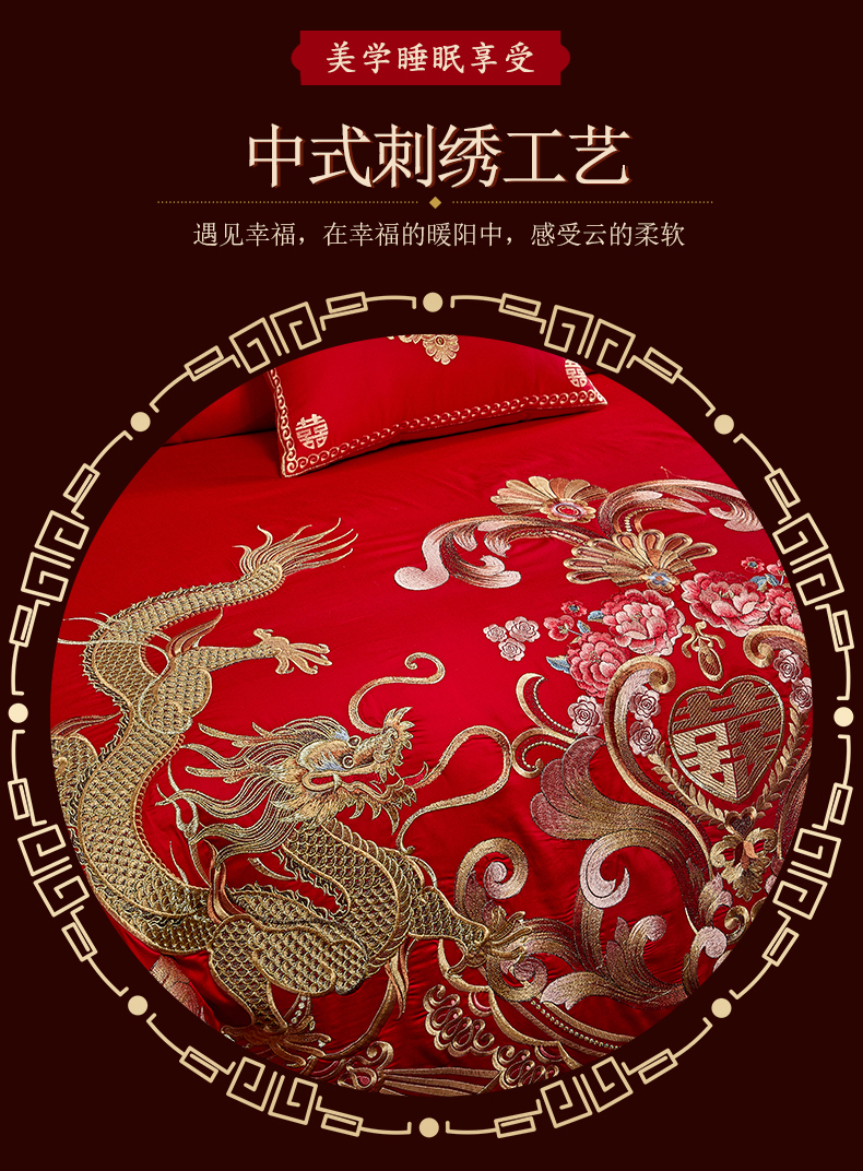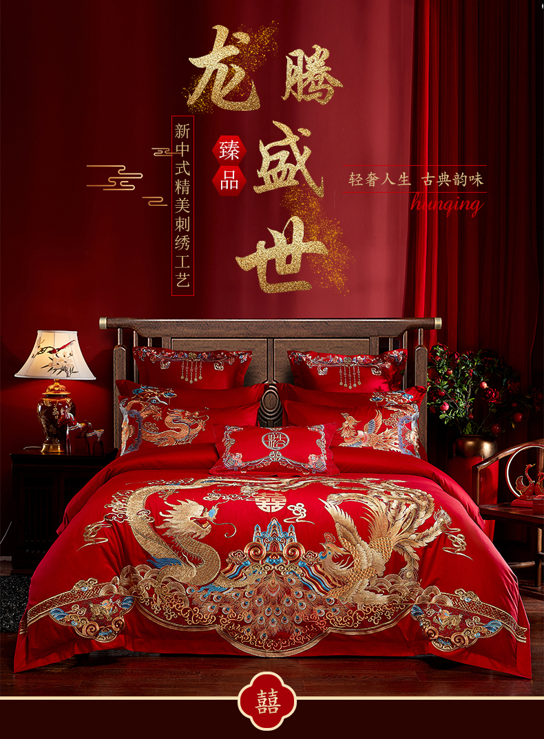 当前位置: 91家纺网 > 商品网购 > 床品套件 > 四件套 > 婚庆四件套 > 2023新款120s提花长绒棉婚庆多件套系列 龙腾盛世