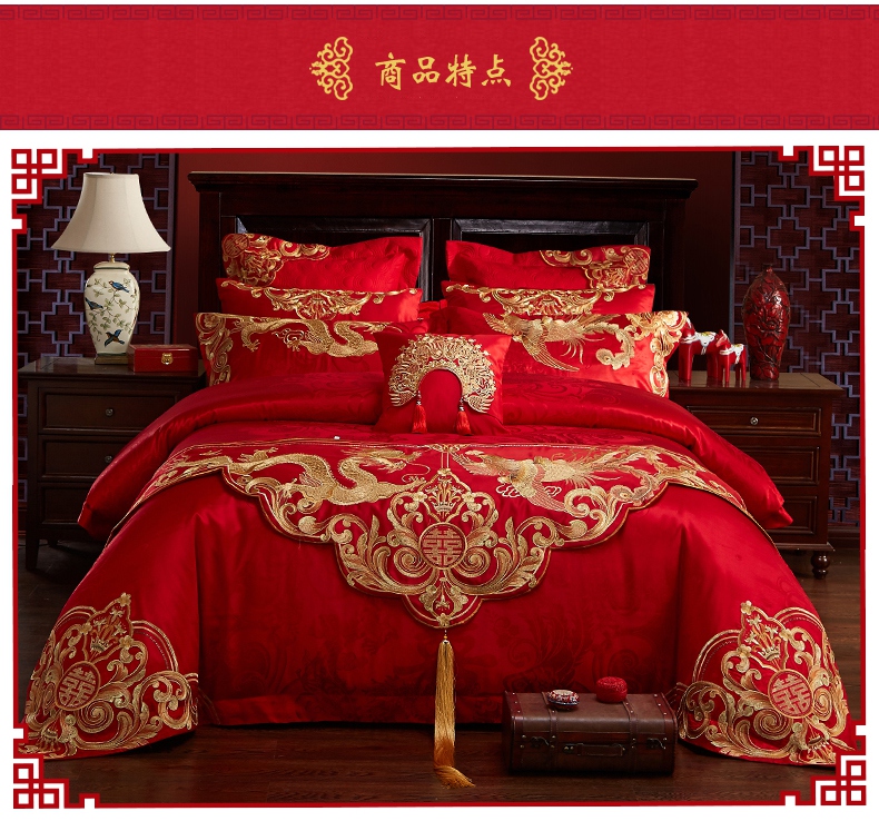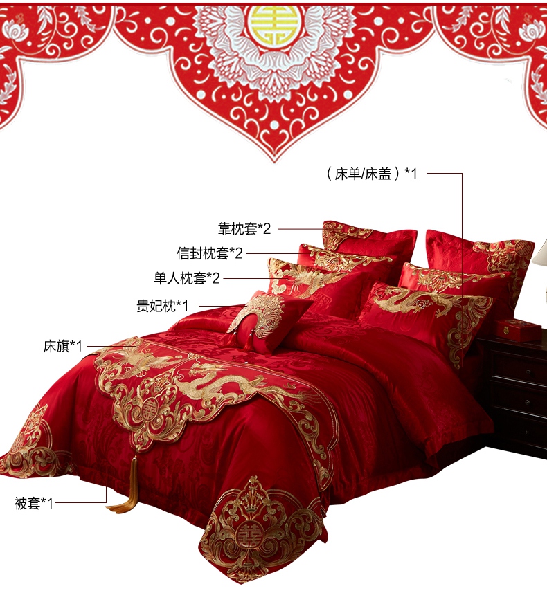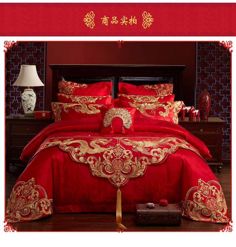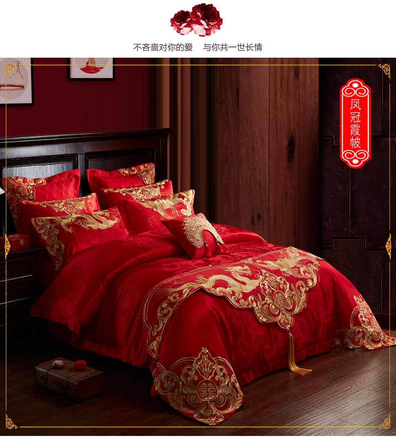 当前位置: 91家纺网 > 商品网购 > 床品套件 > 四件套 > 婚庆四件套 > 2023新款100s贡缎提花婚庆多件套系列 凤冠霞帔(新拍3)