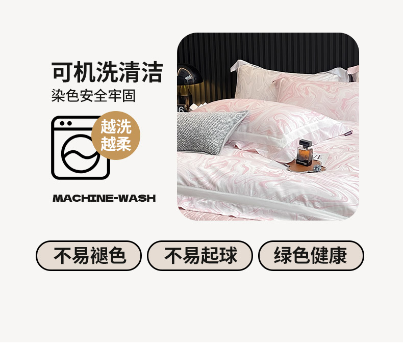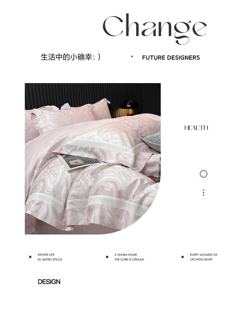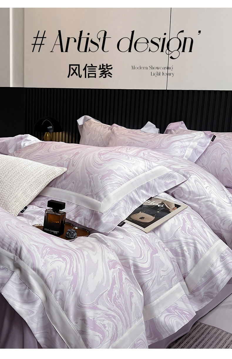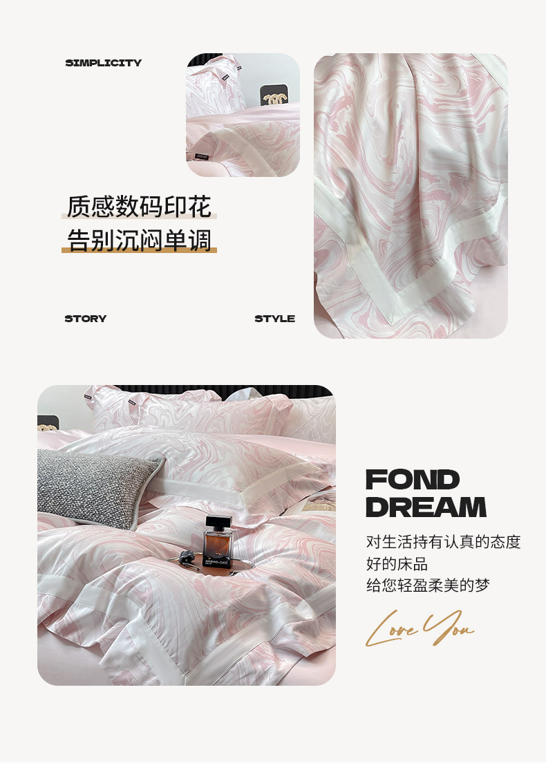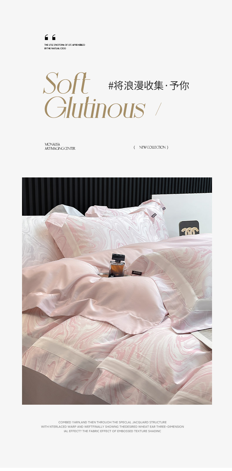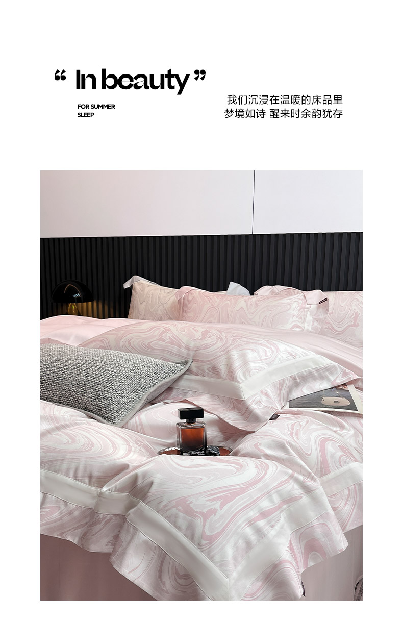 春夏爆款全棉数码印花四件套纯棉轻奢风长绒棉床单被套时尚床上用品浮影SM浮影-静谧粉