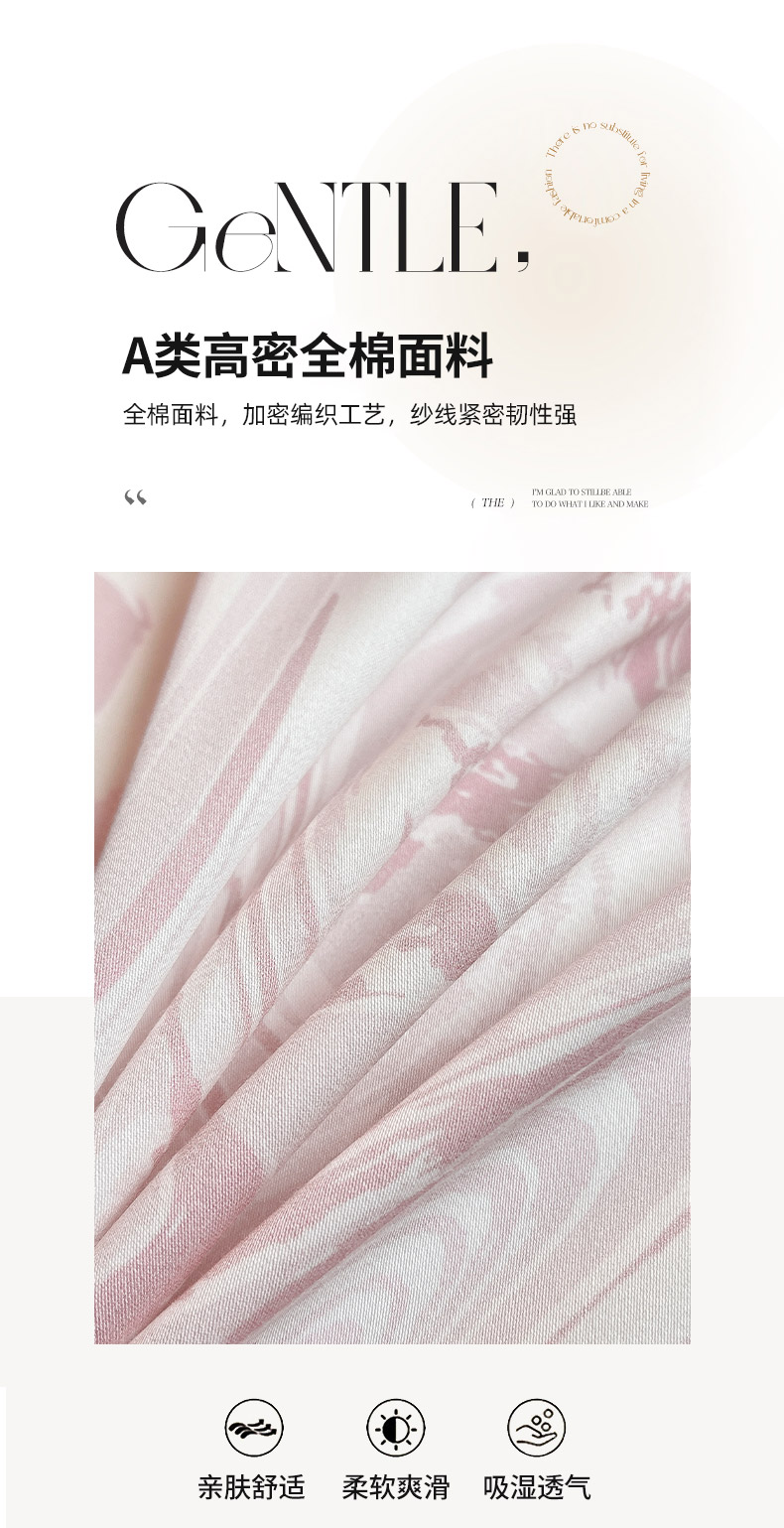 商品名称:春夏爆款全棉数码印花四件套纯棉轻奢风长绒棉床单被套时尚床上用品浮影SM浮影-静谧粉
